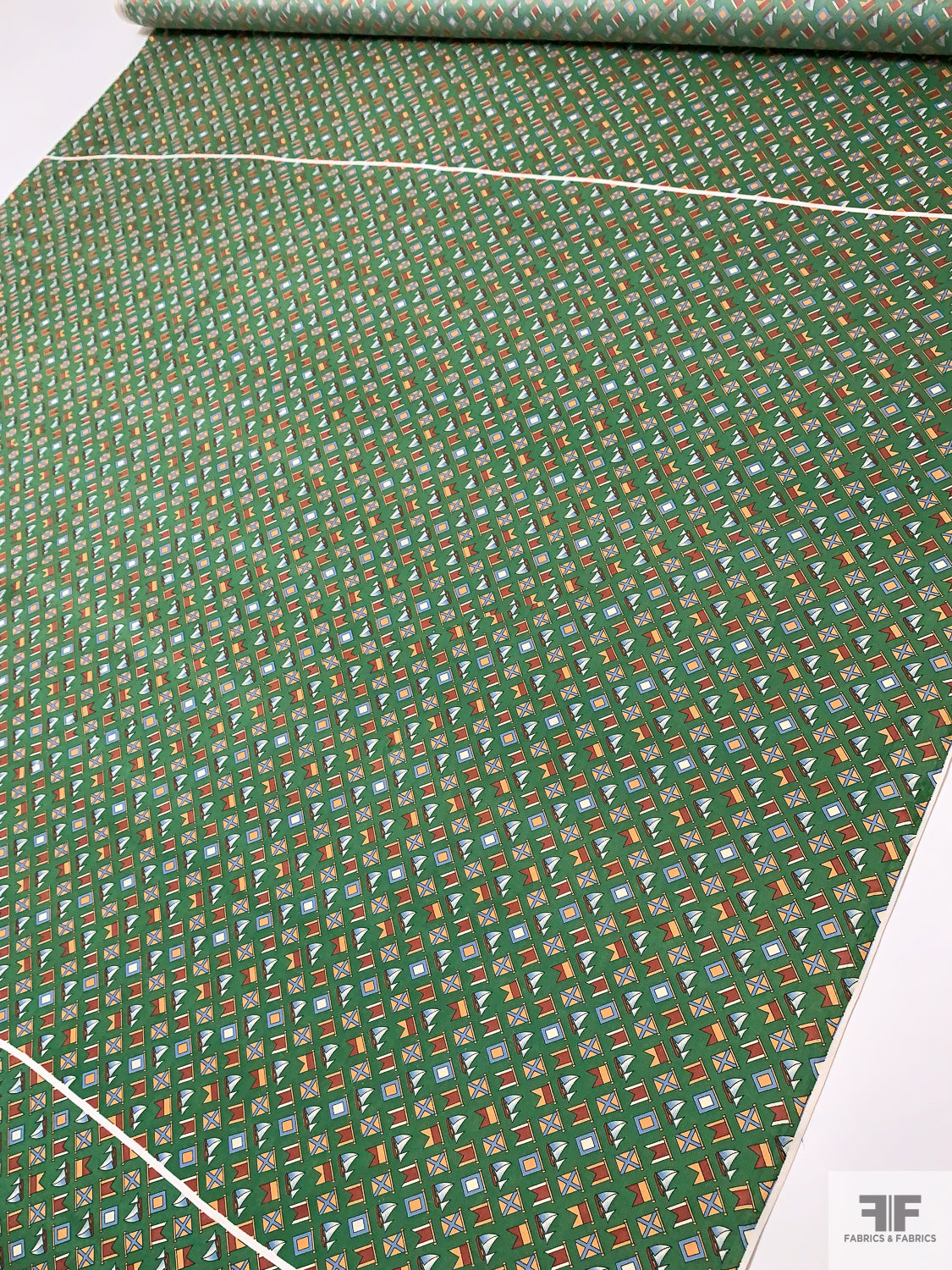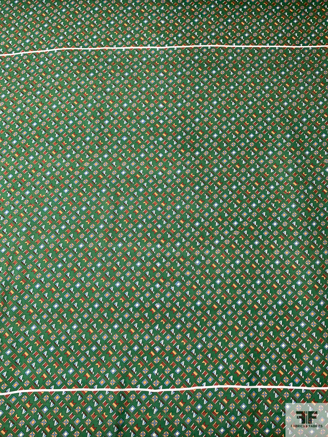 Please note: Because this silk was intended for use in the necktie industry, the printing job of this fabric has intentional off-set cut indication lines within the print, as well as panel division lines.