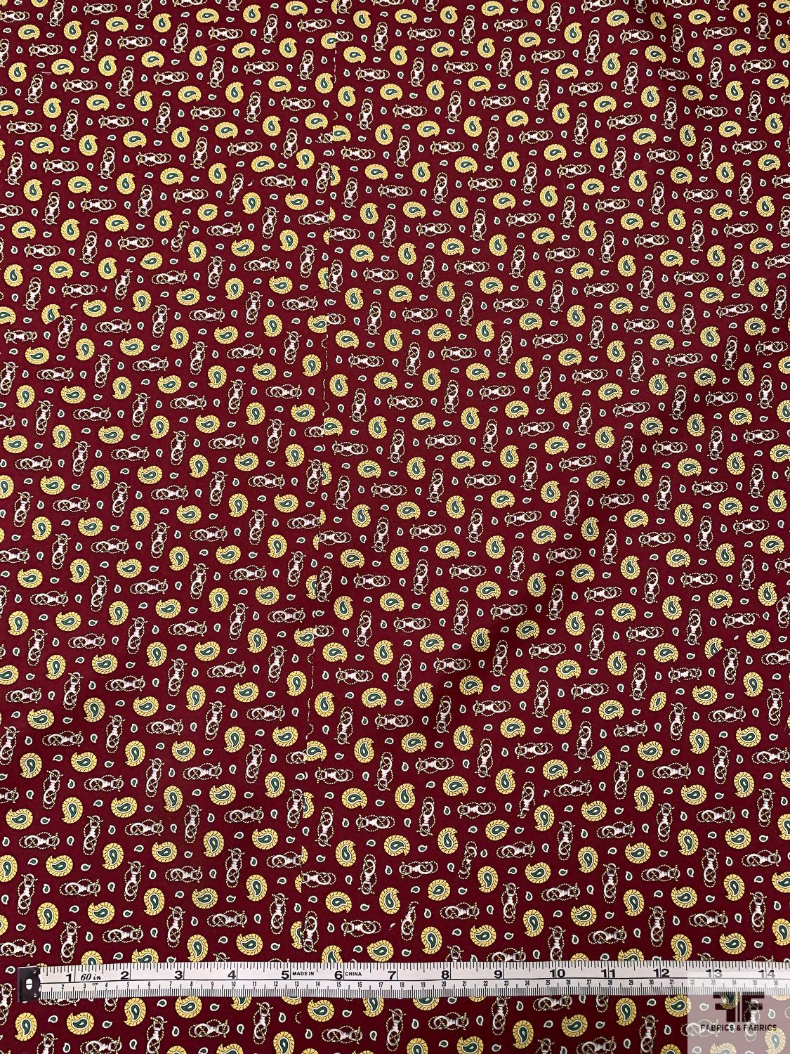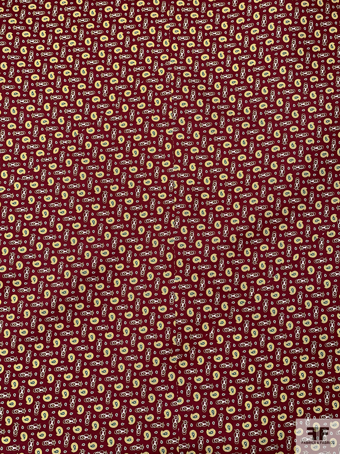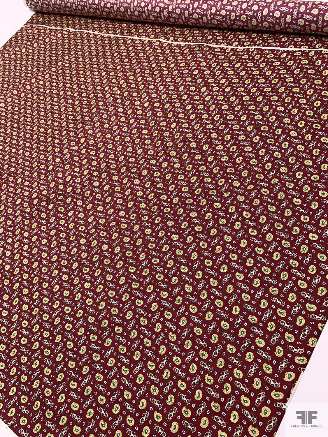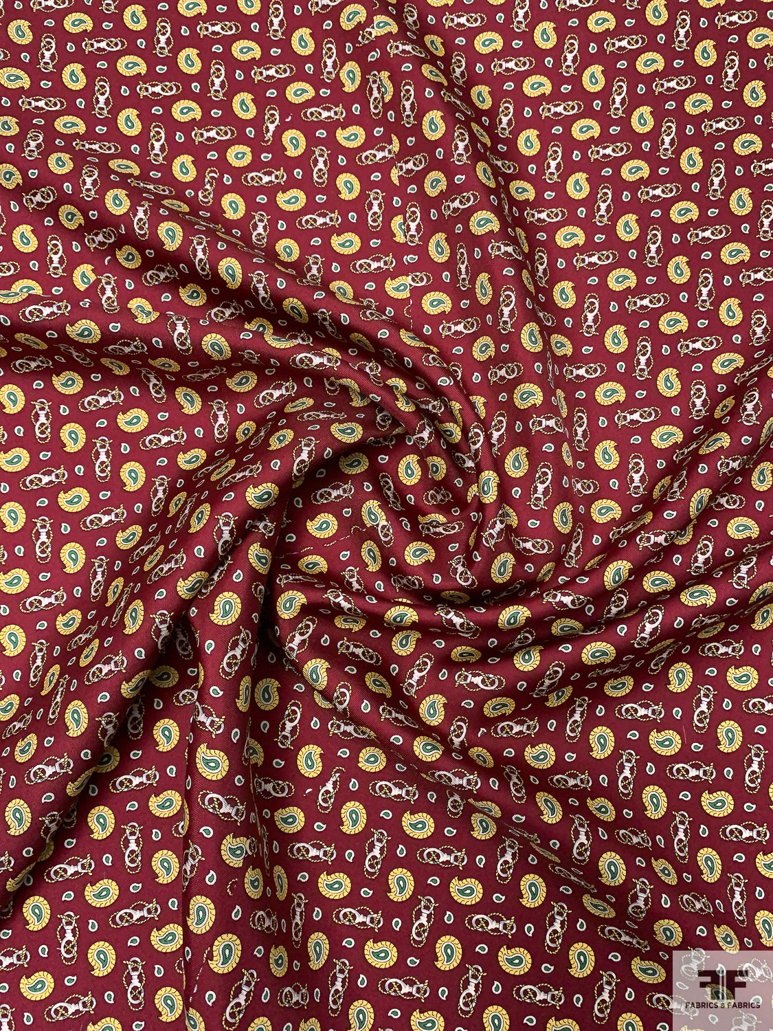 Nautical Paisley Printed Fine Silk Twill Panel - Dark Red / Pale Yellow / Sage