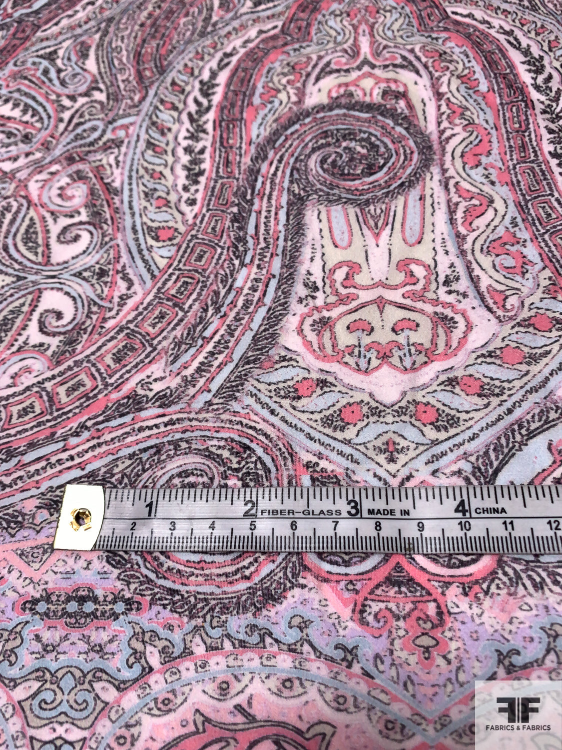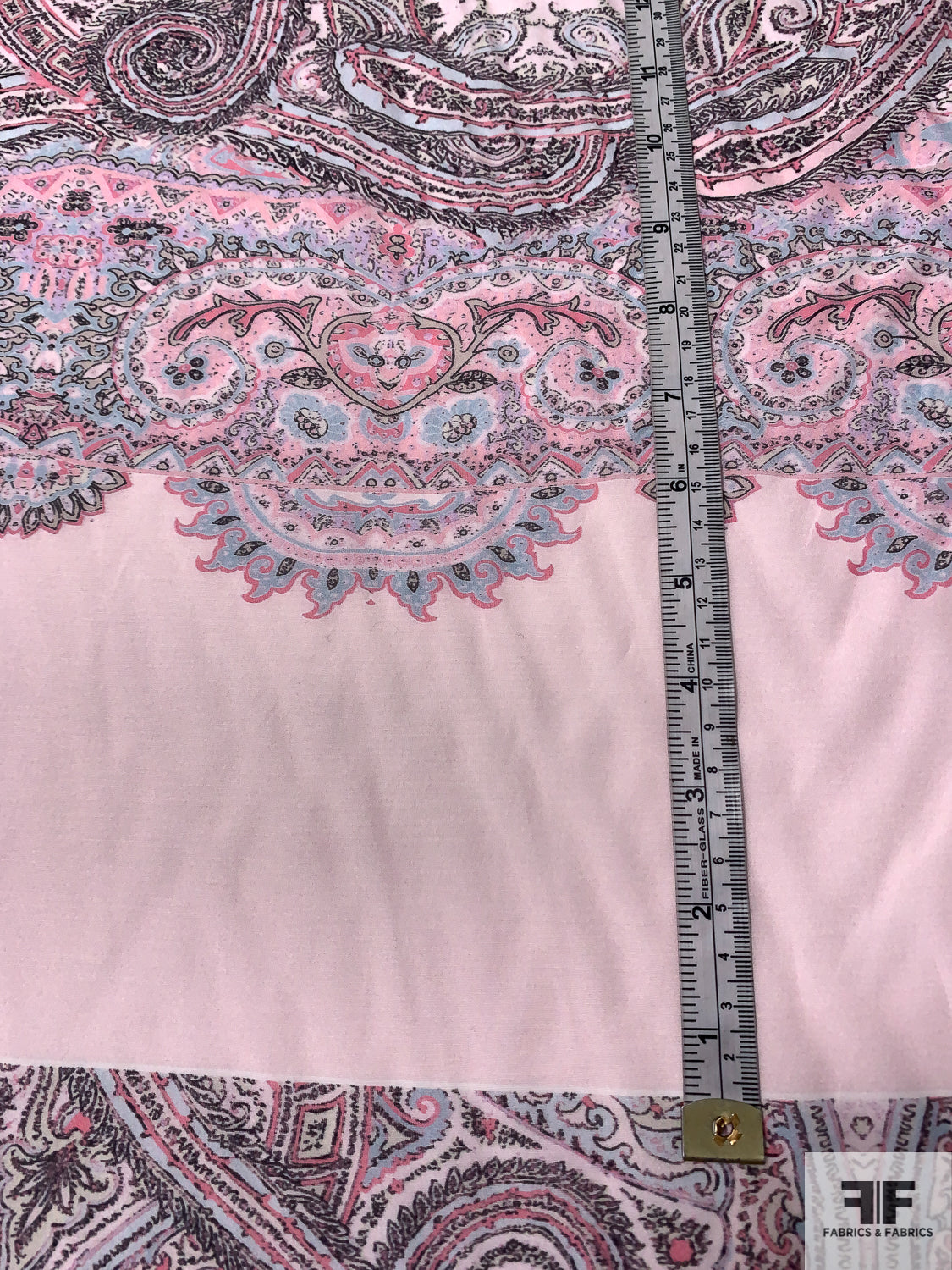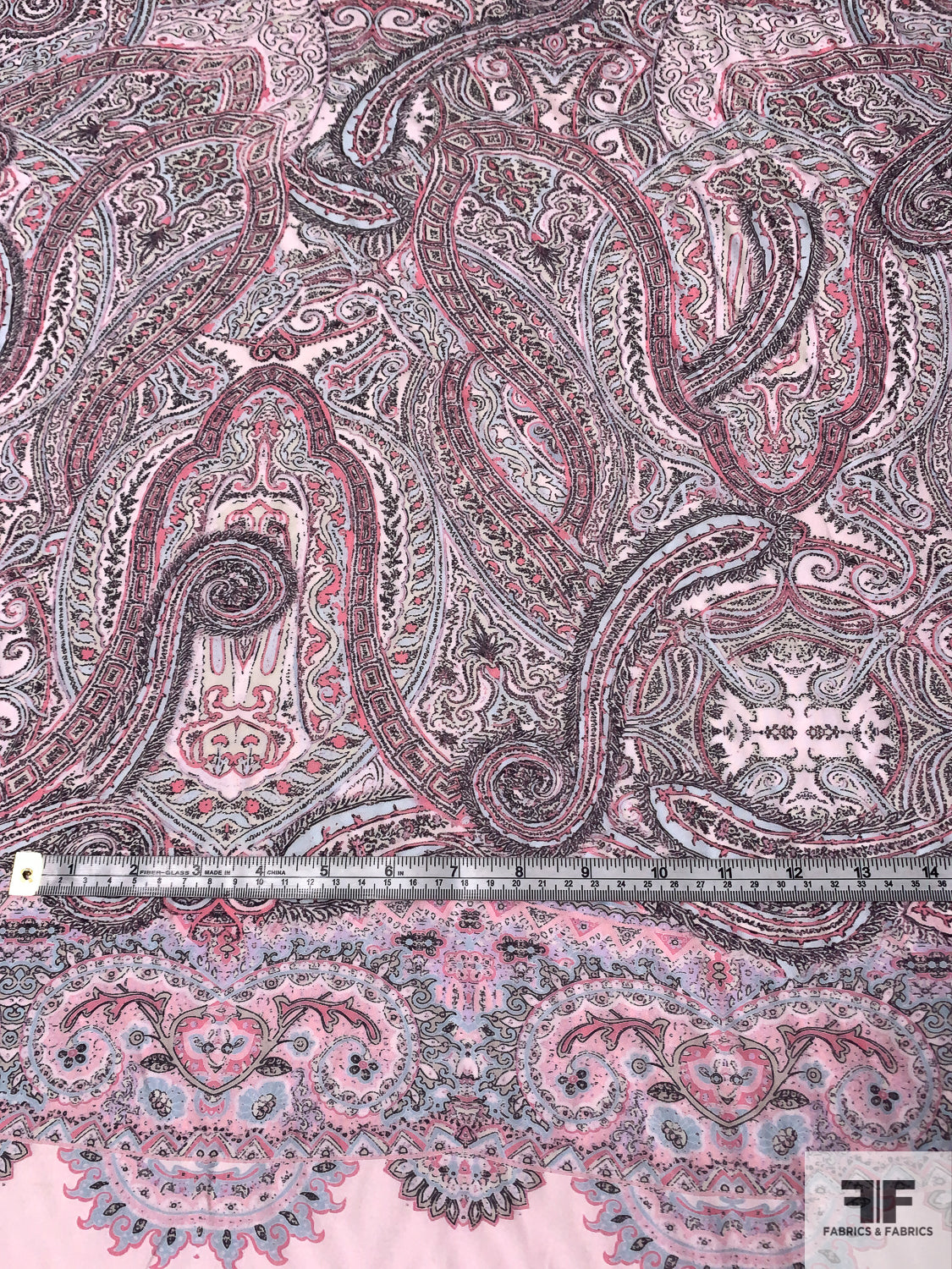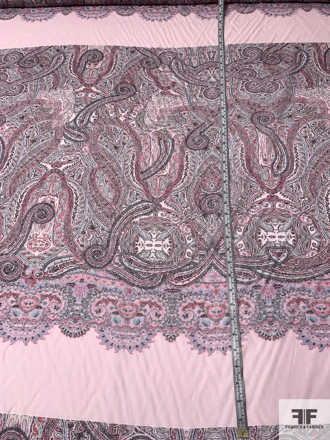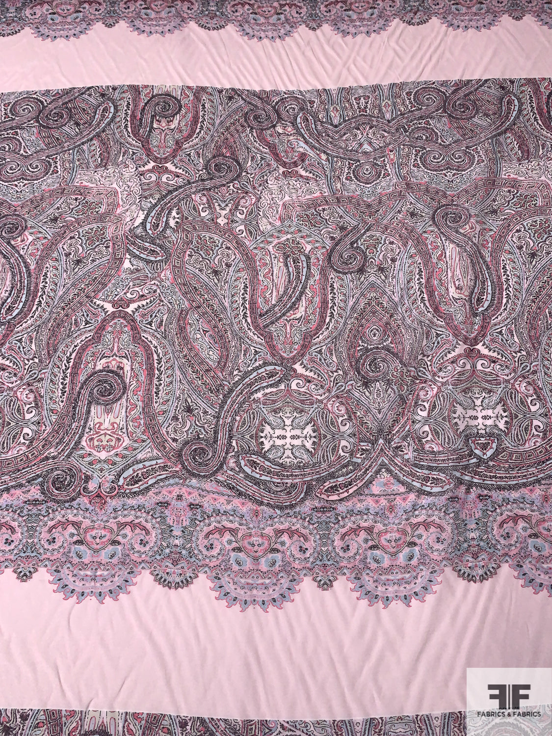 Ornate Paisley Printed Cotton-Silk Voile Panel - Pinks / Sky Blue / Black