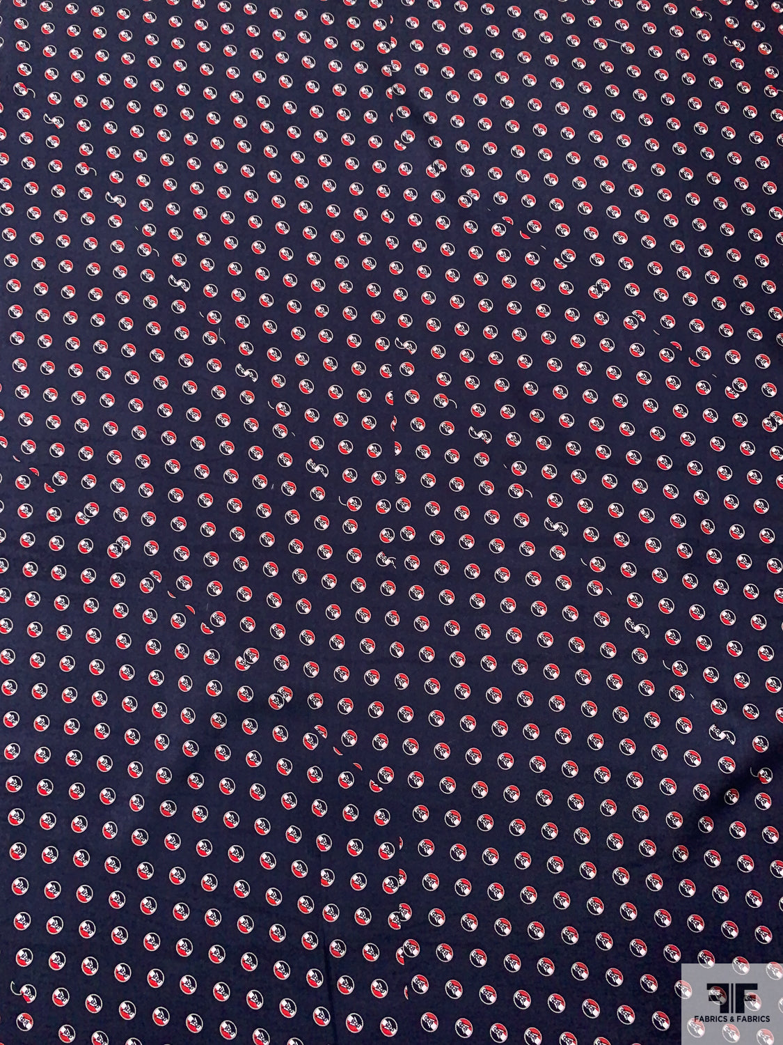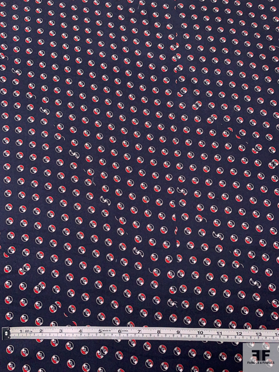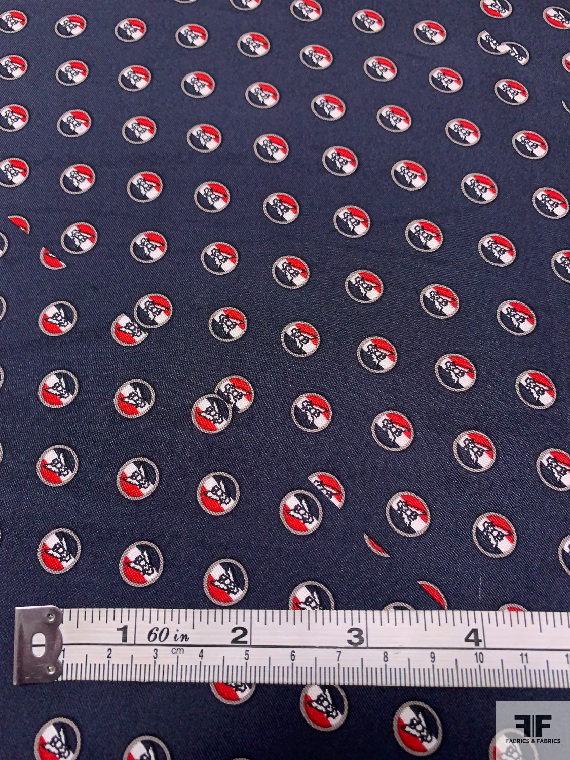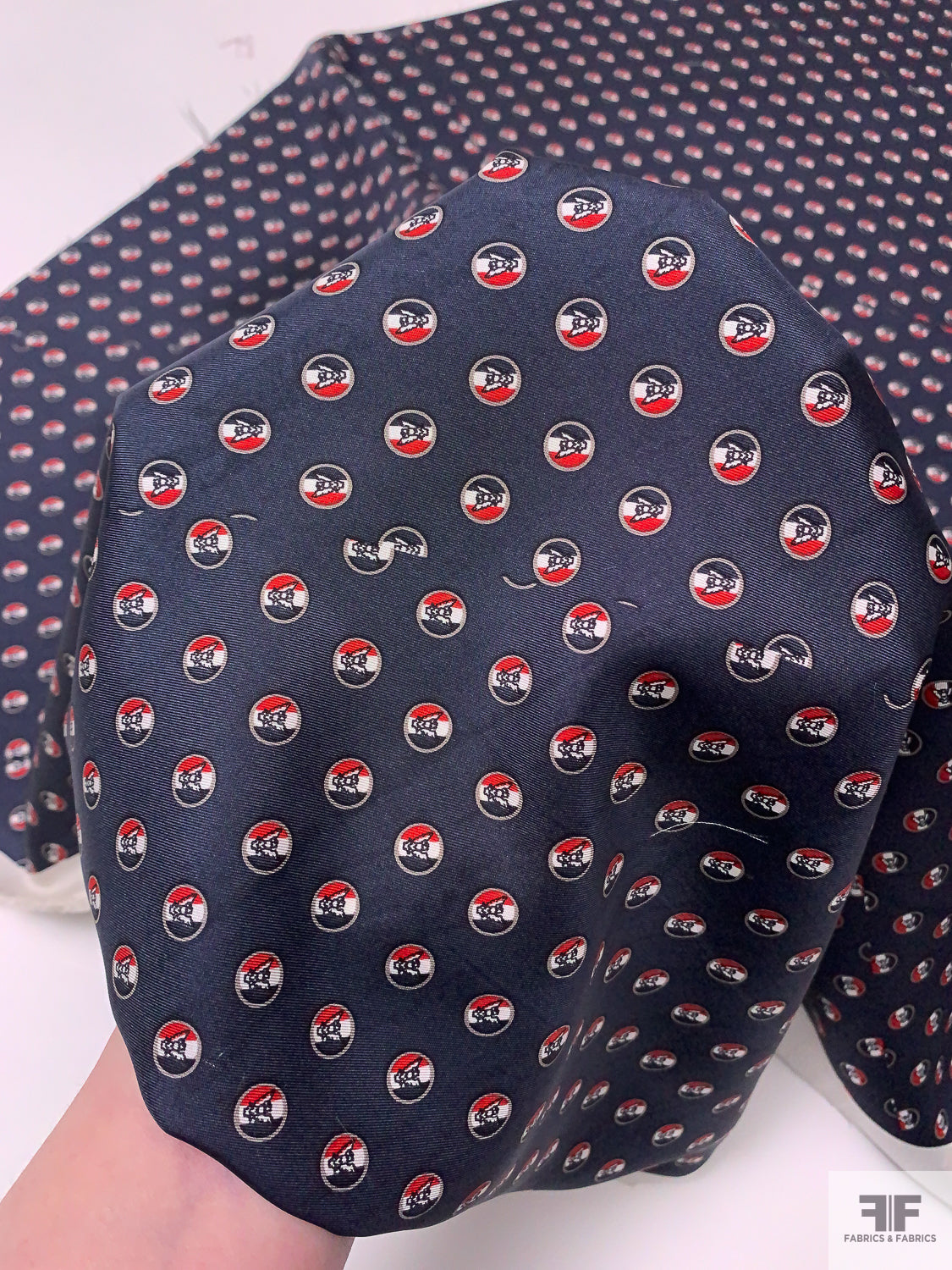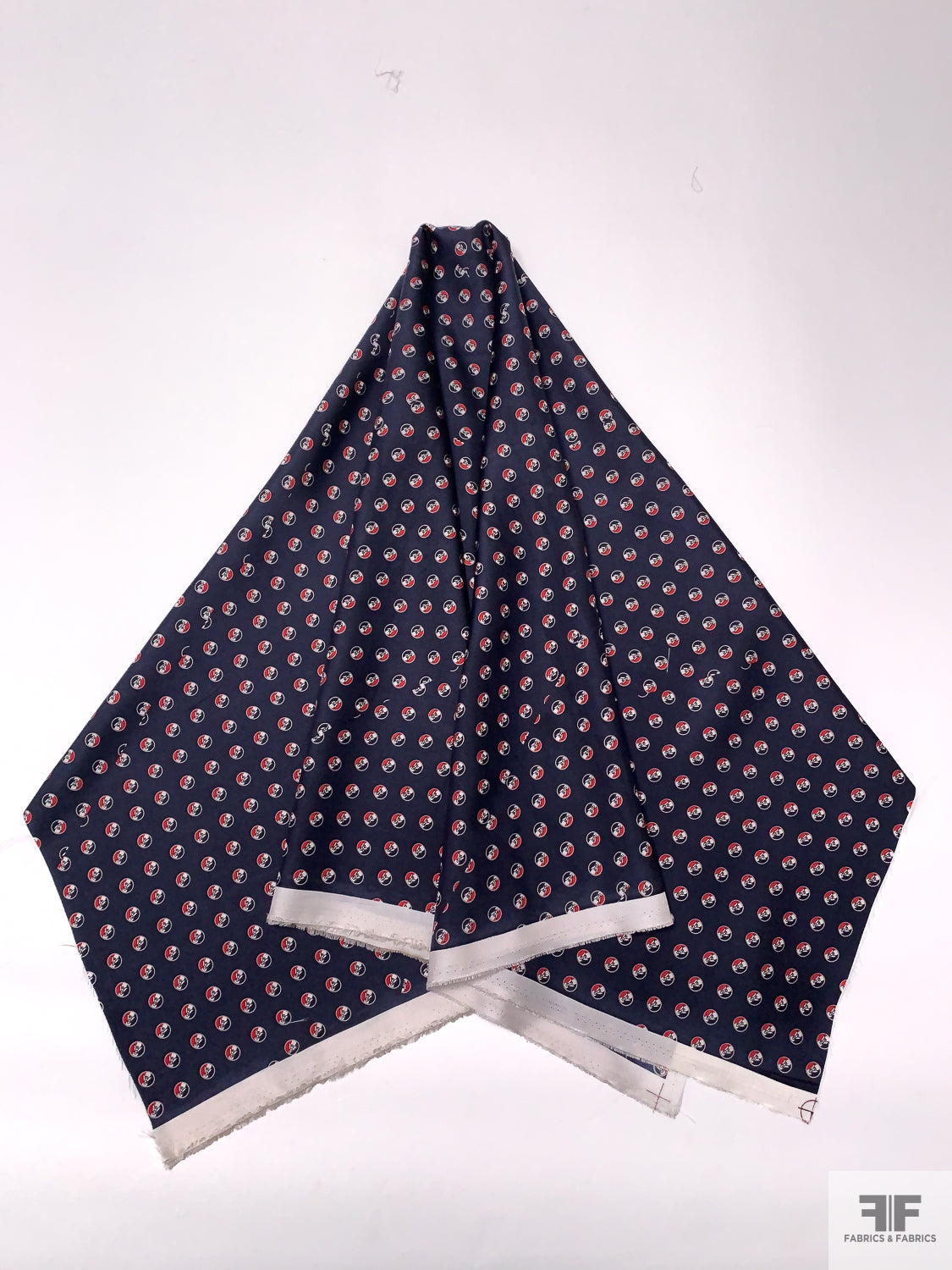 Please note: Because this silk was intended for use in the necktie industry, the printing job of this fabric has intentional off-set cut indication lines within the print, as well as panel division lines.