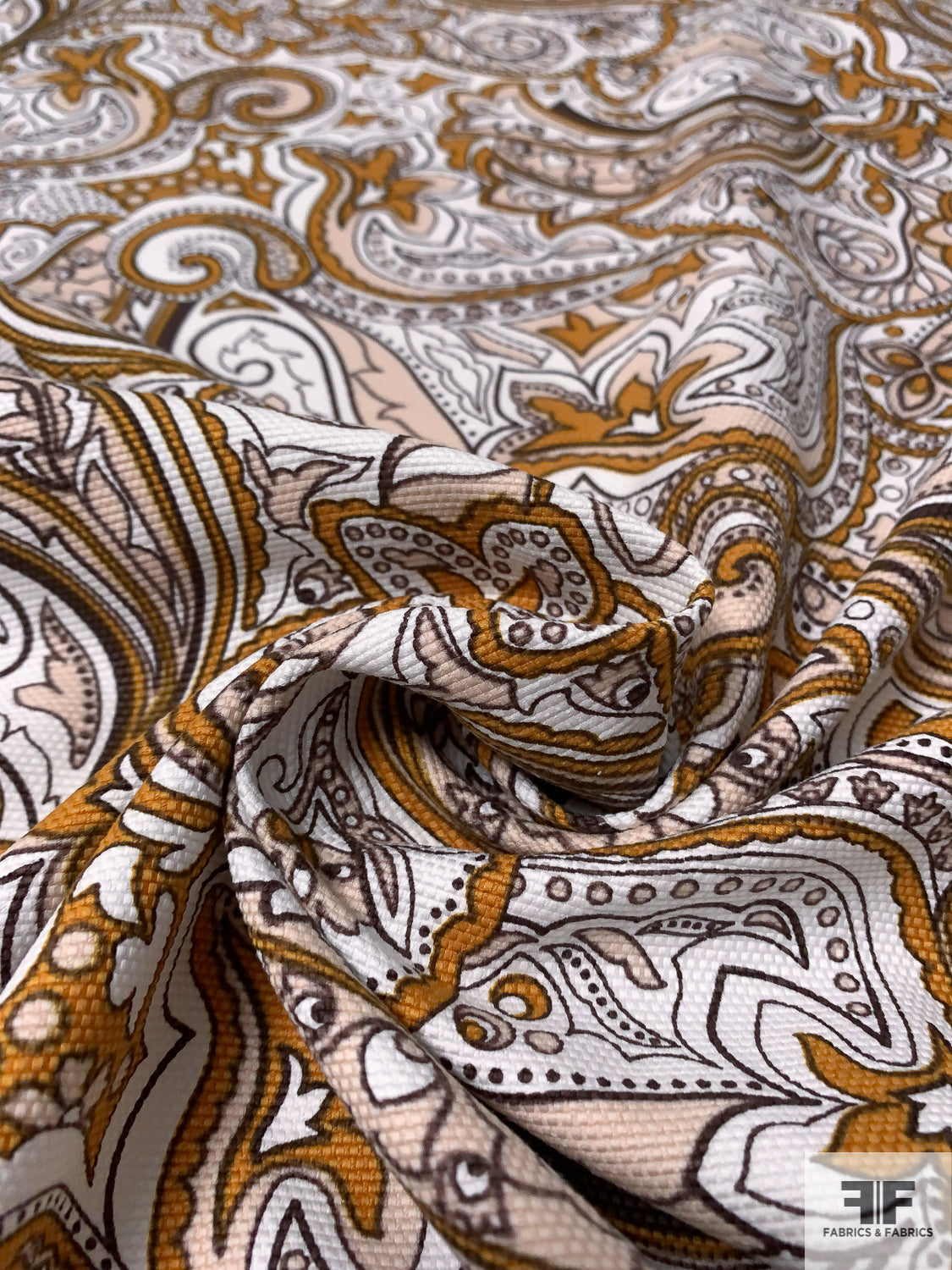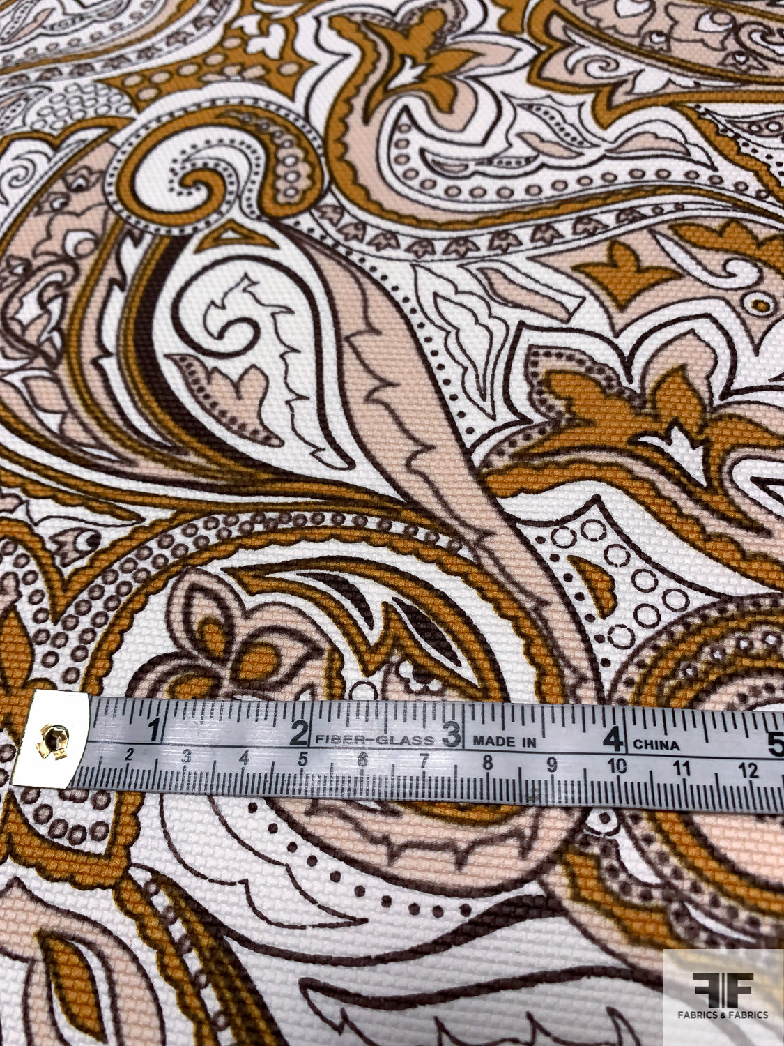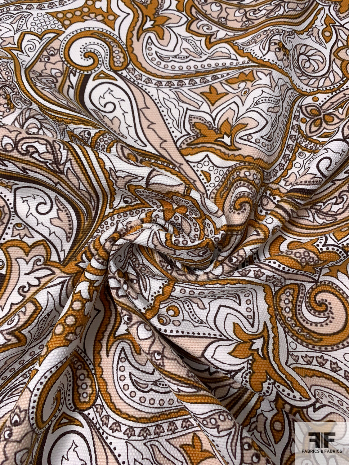 Paisley Floral Printed Cotton Canvas Pique - Turmeric / Brown / Nude / White