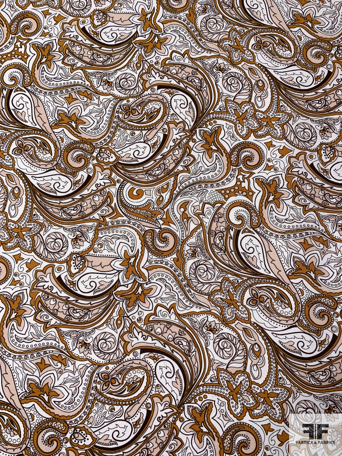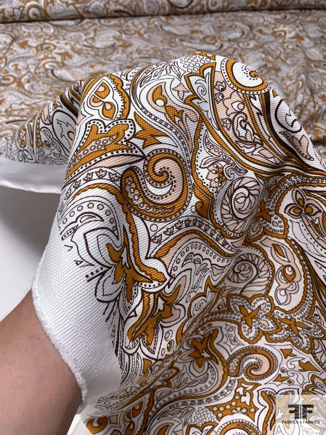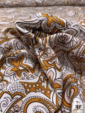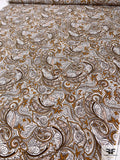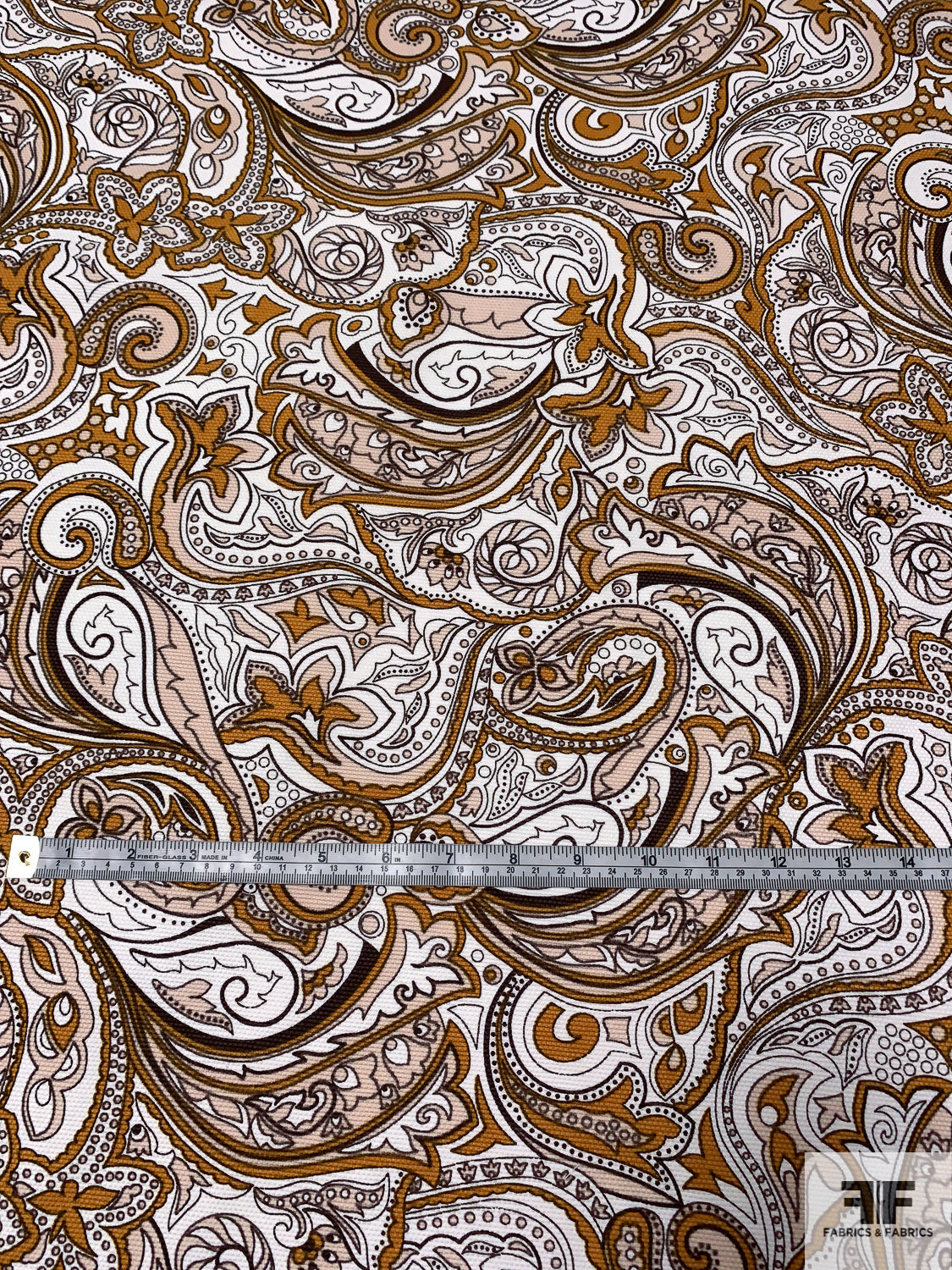 Paisley Floral Printed Cotton Canvas Pique - Turmeric / Brown / Nude / White