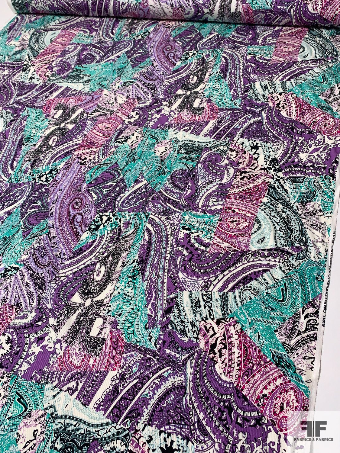 Paisley Printed Silk and Cotton Faille - Purple / Seafoam / Black / Off-White