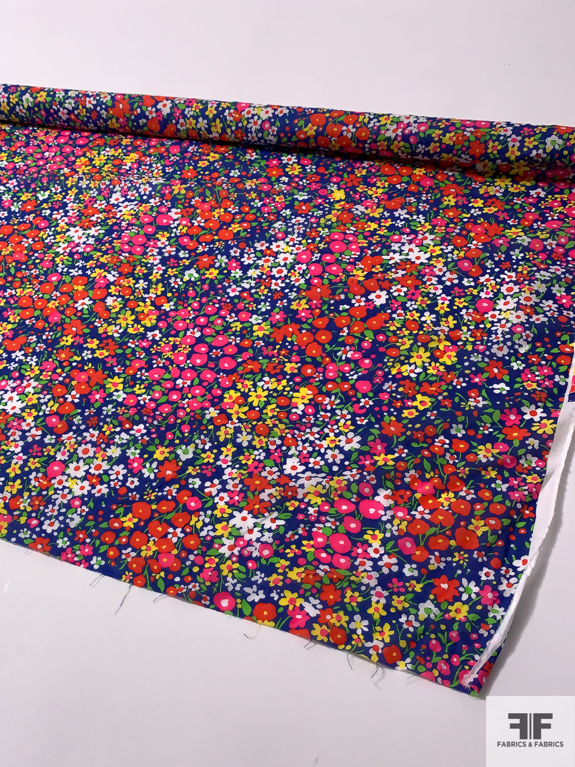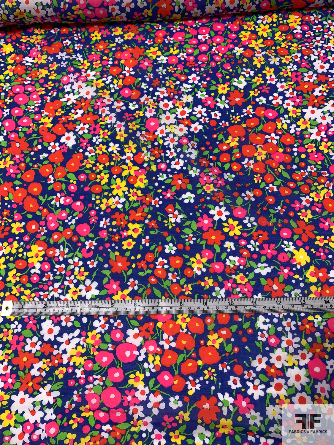 Playful Floral Printed Cotton Voile - Multicolor / Blue
