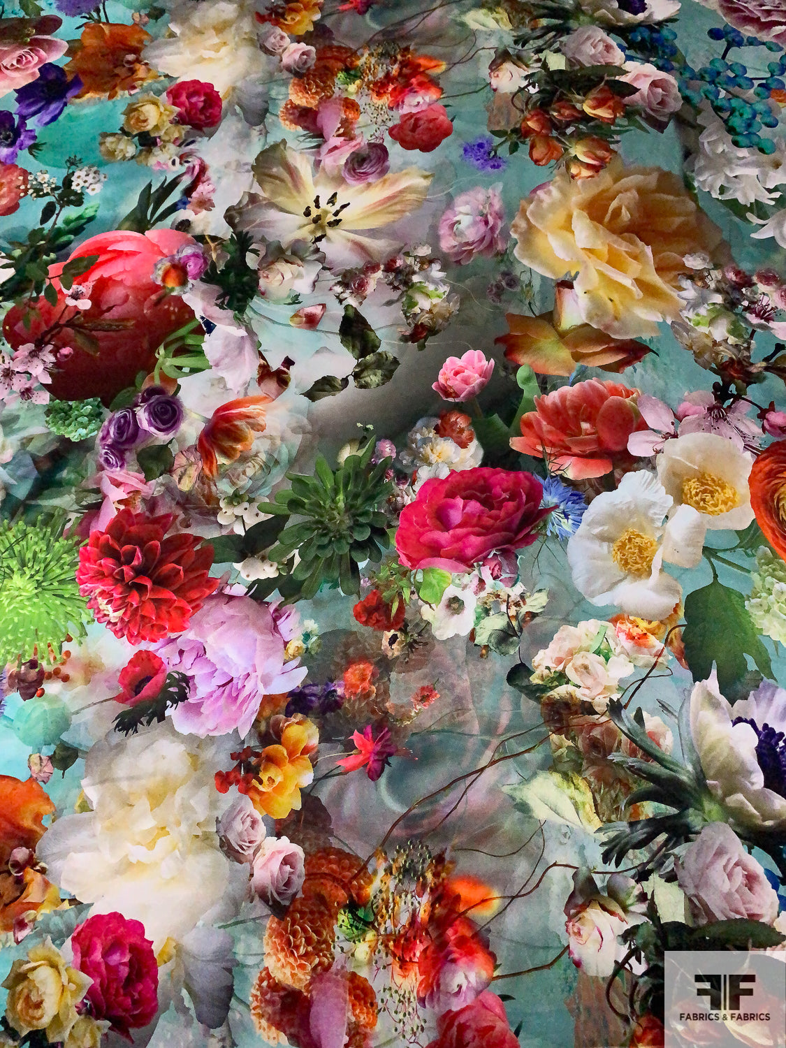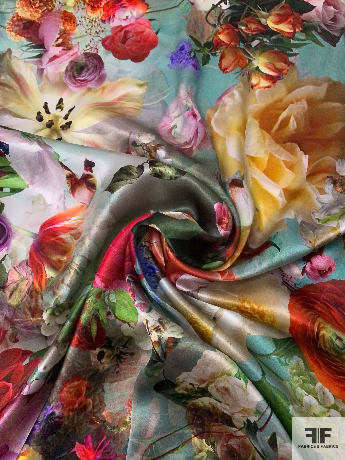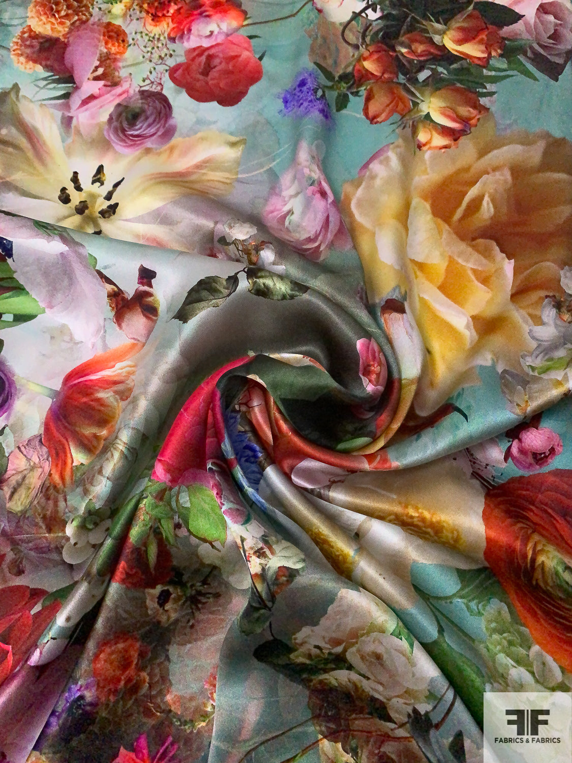 Prabal Gurung Floral Realism Printed Silk Charmeuse - Multicolor