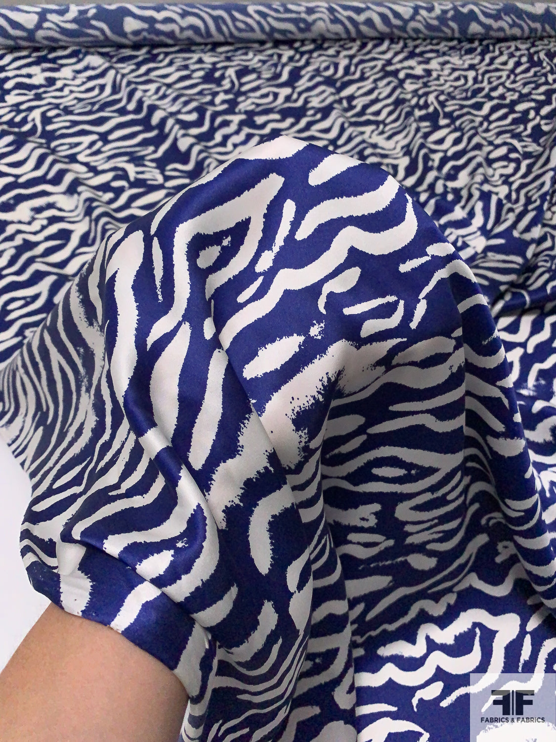 Prabal Gurung Graffiti Animal Pattern Printed Silk Charmeuse - Navy / Off-White