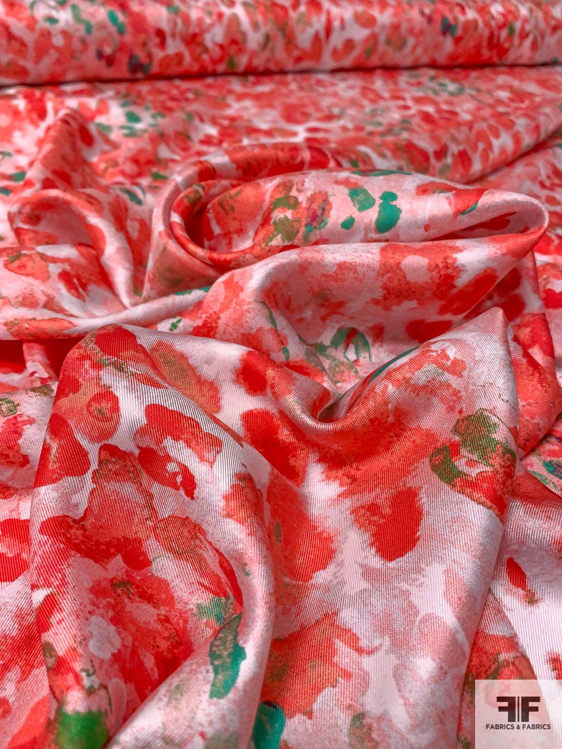 Prabal Gurung Watercolor Animal Pattern Fine Soft Silk Twill - Electric Coral / Aquamarine / Pink