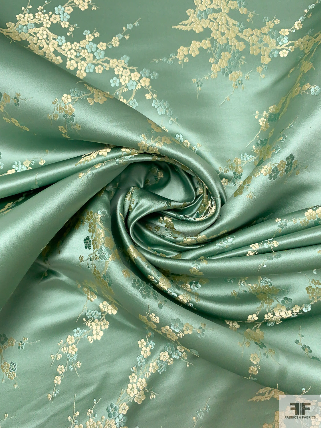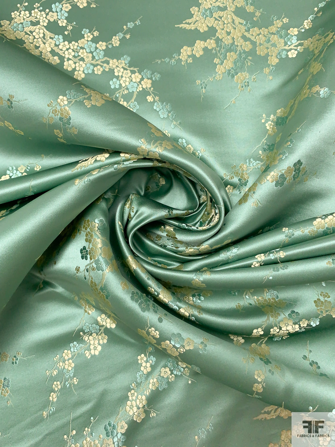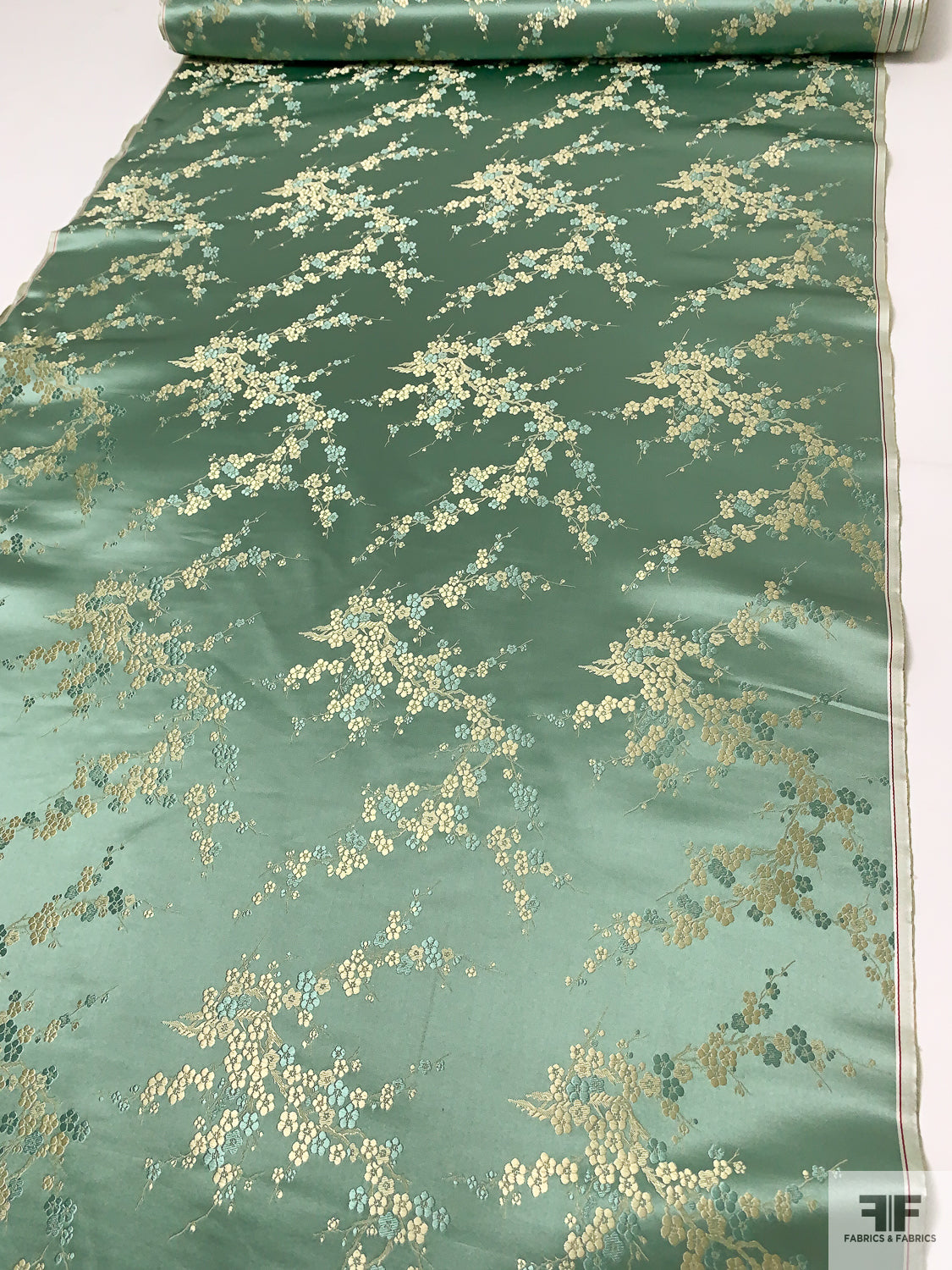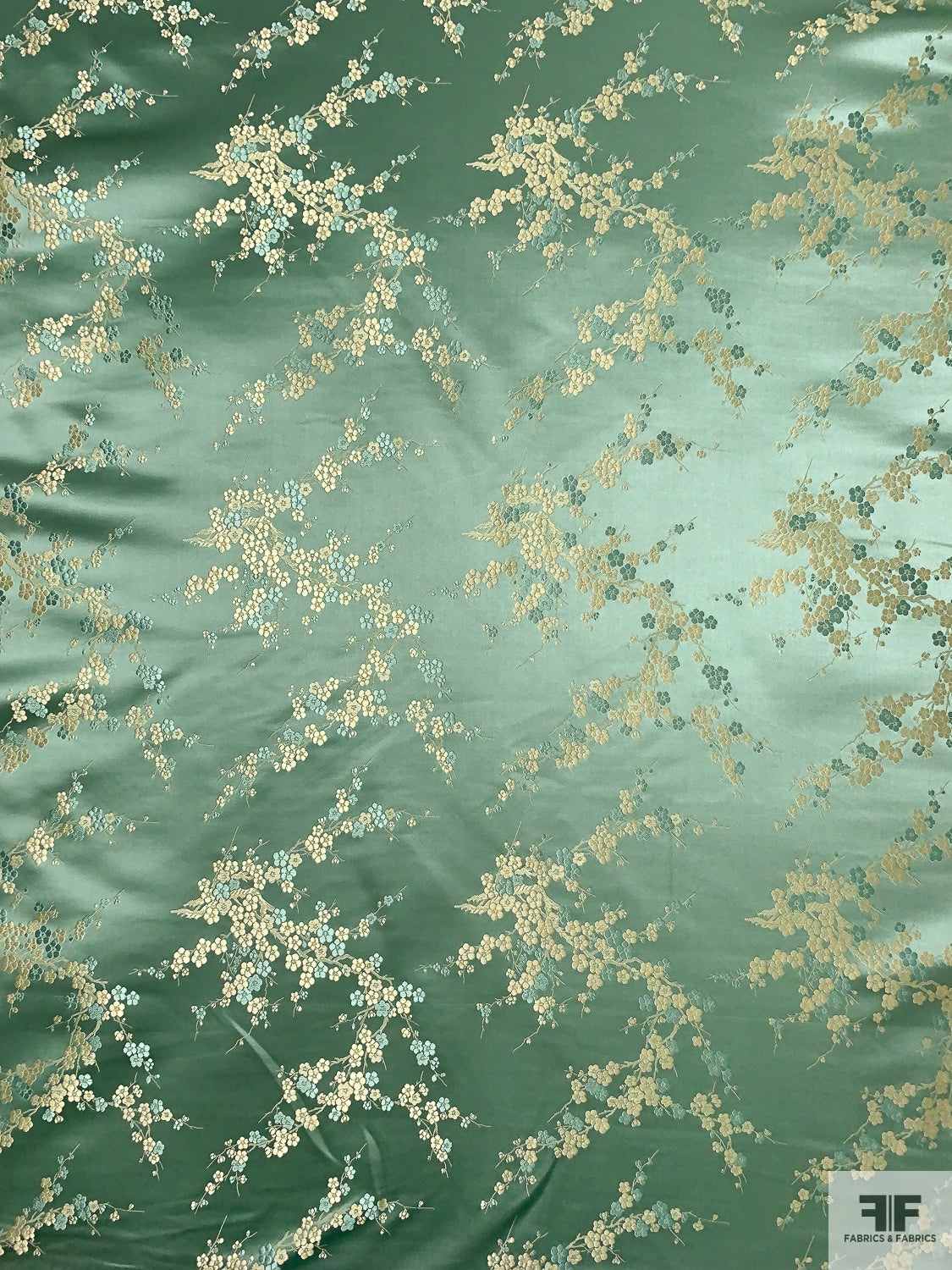 Romantic Floral Chinese Brocade - Warm Sage / Pale Gold