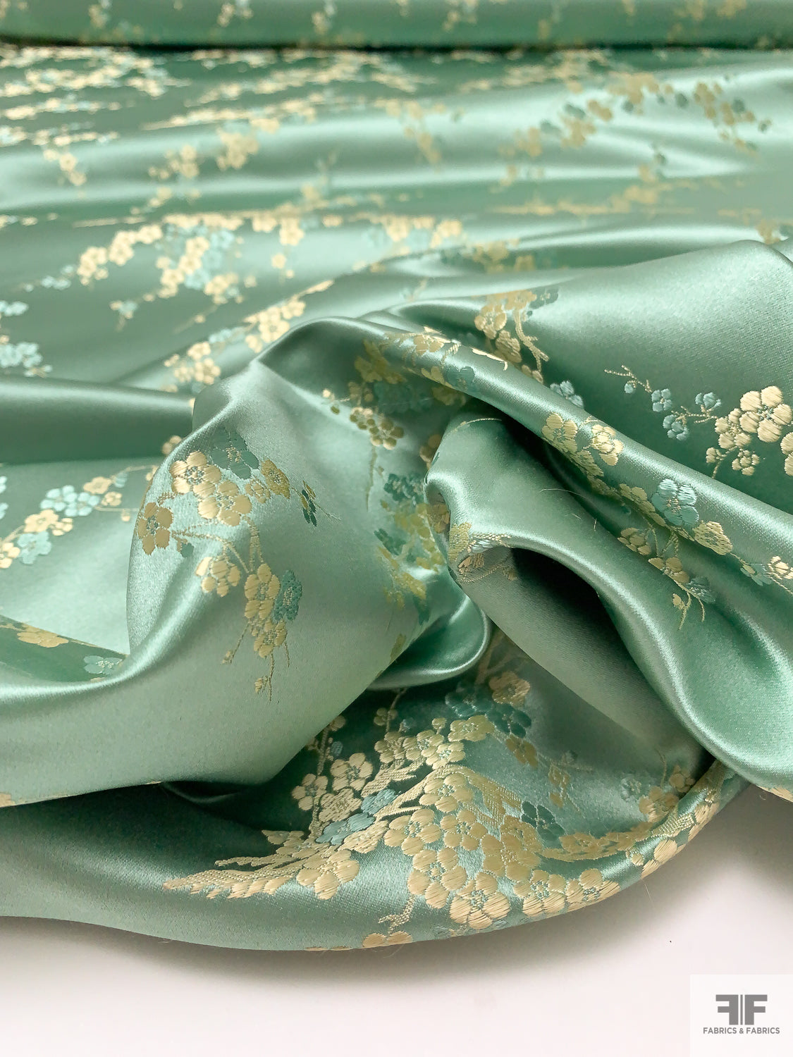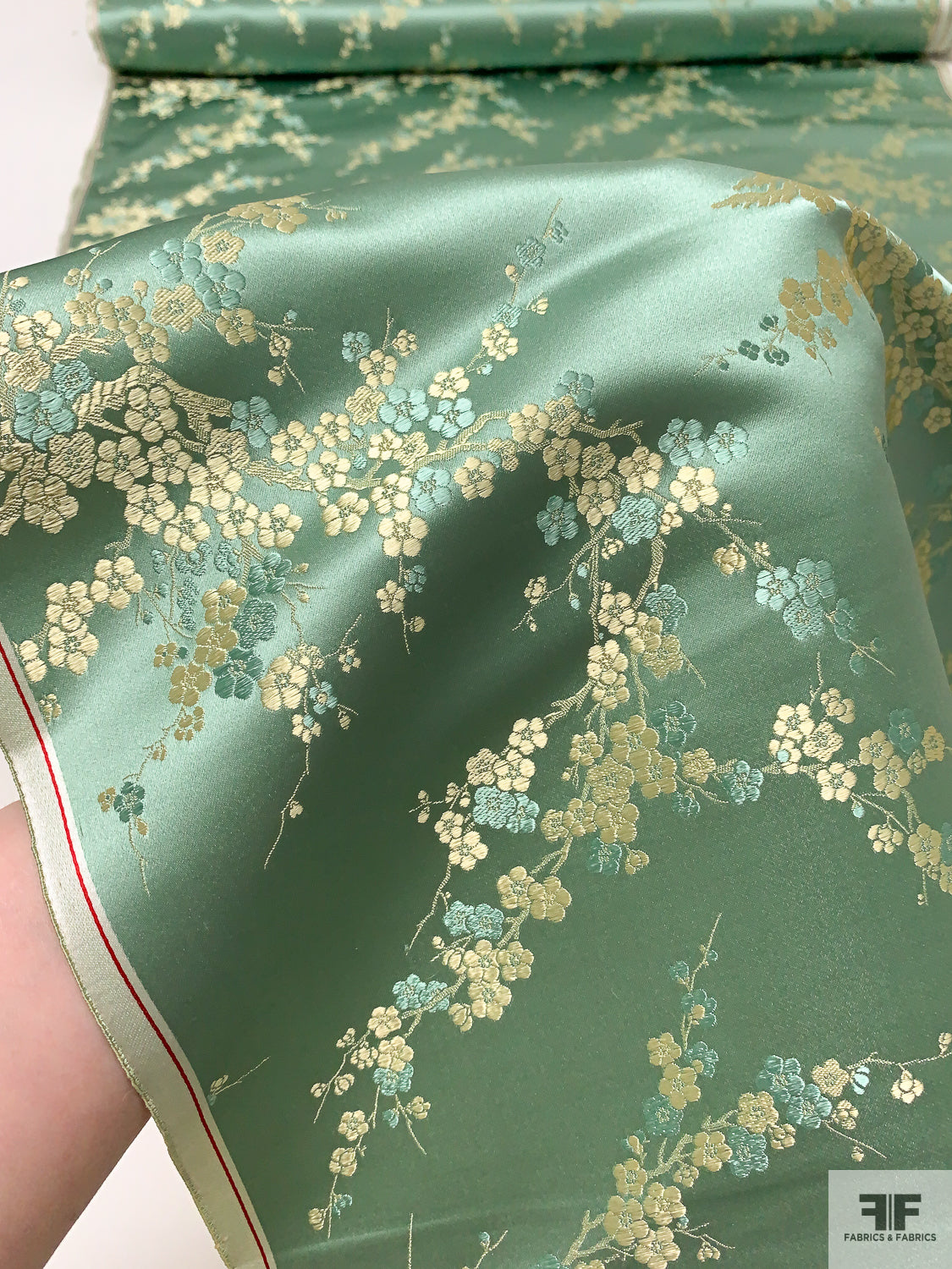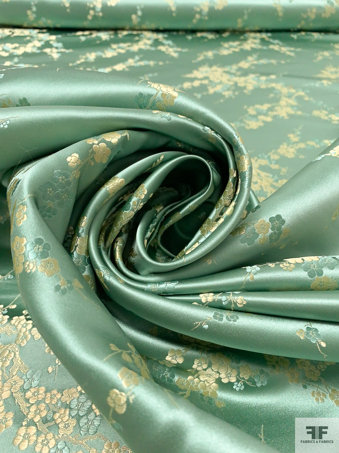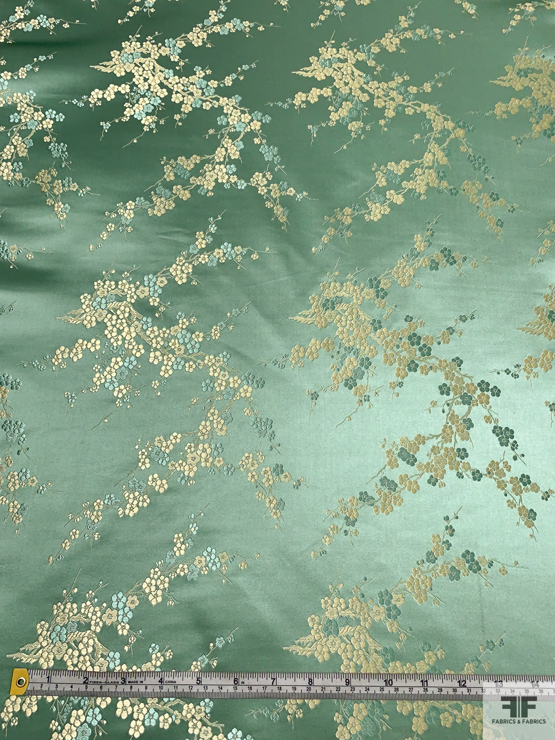Romantic Floral Chinese Brocade - Warm Sage / Pale Gold