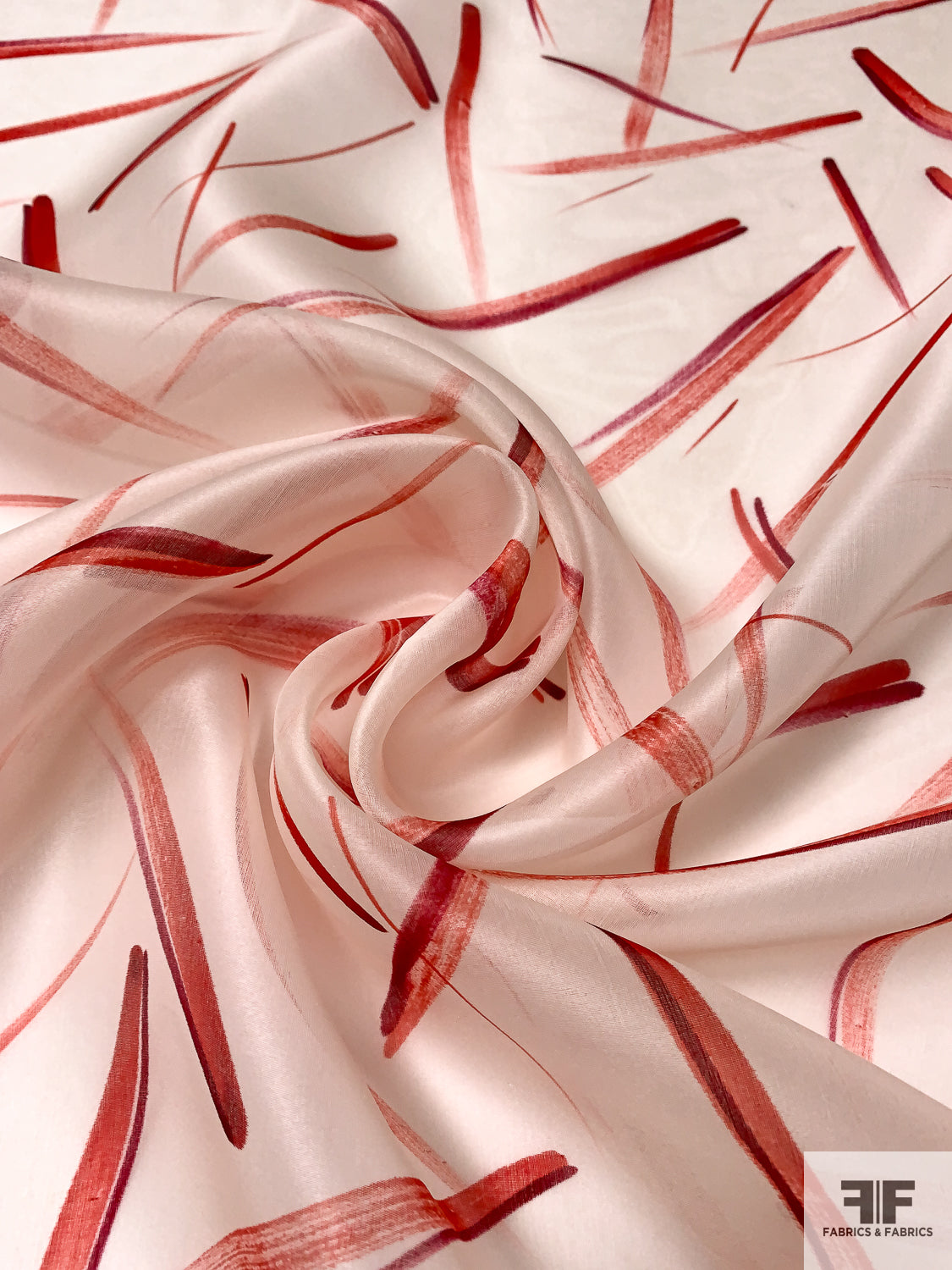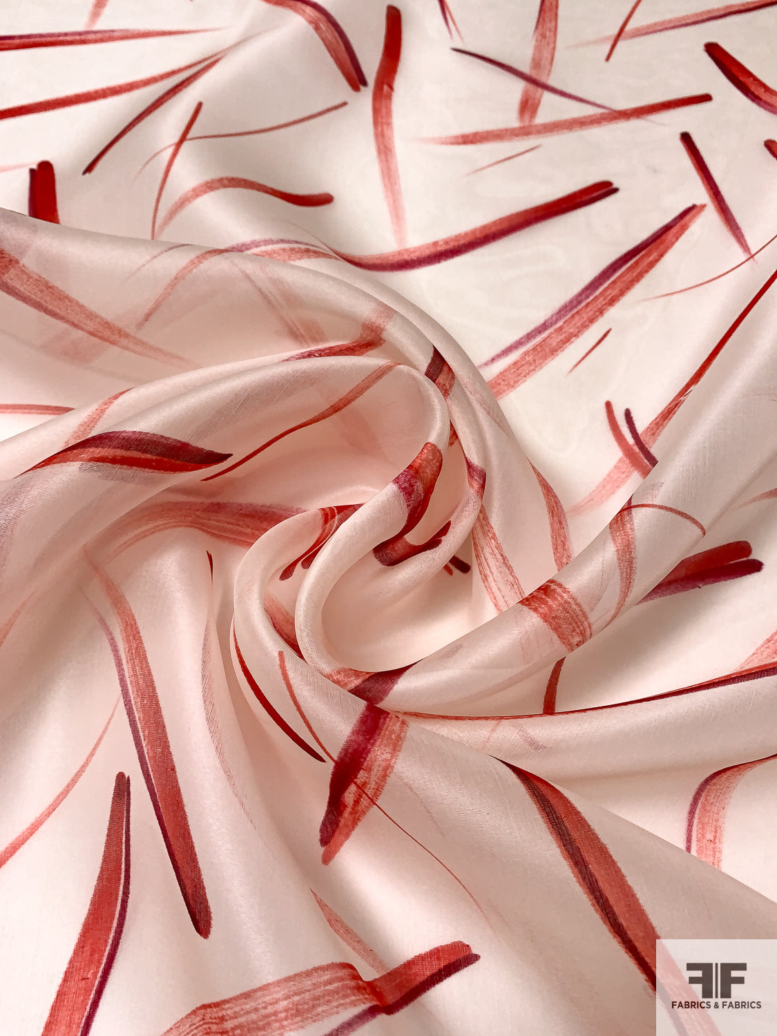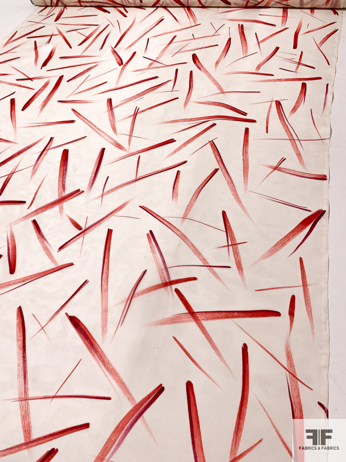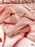 Scattered Brushstrokes Printed Silk Organza - Red / Berry Blood / Ivory