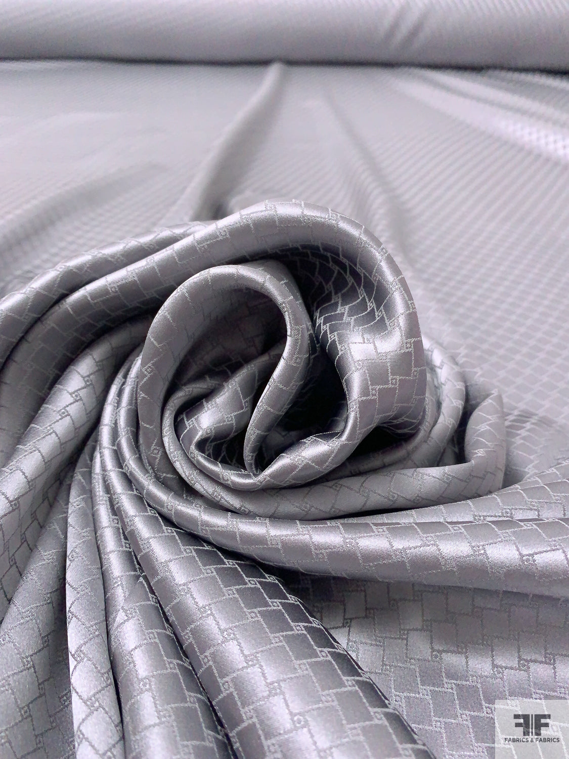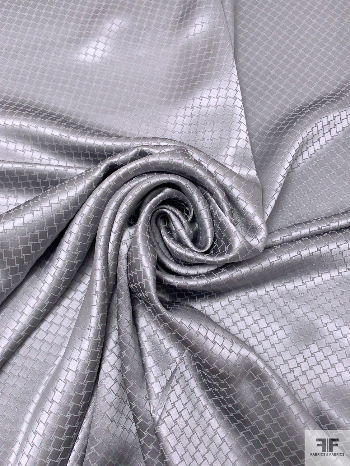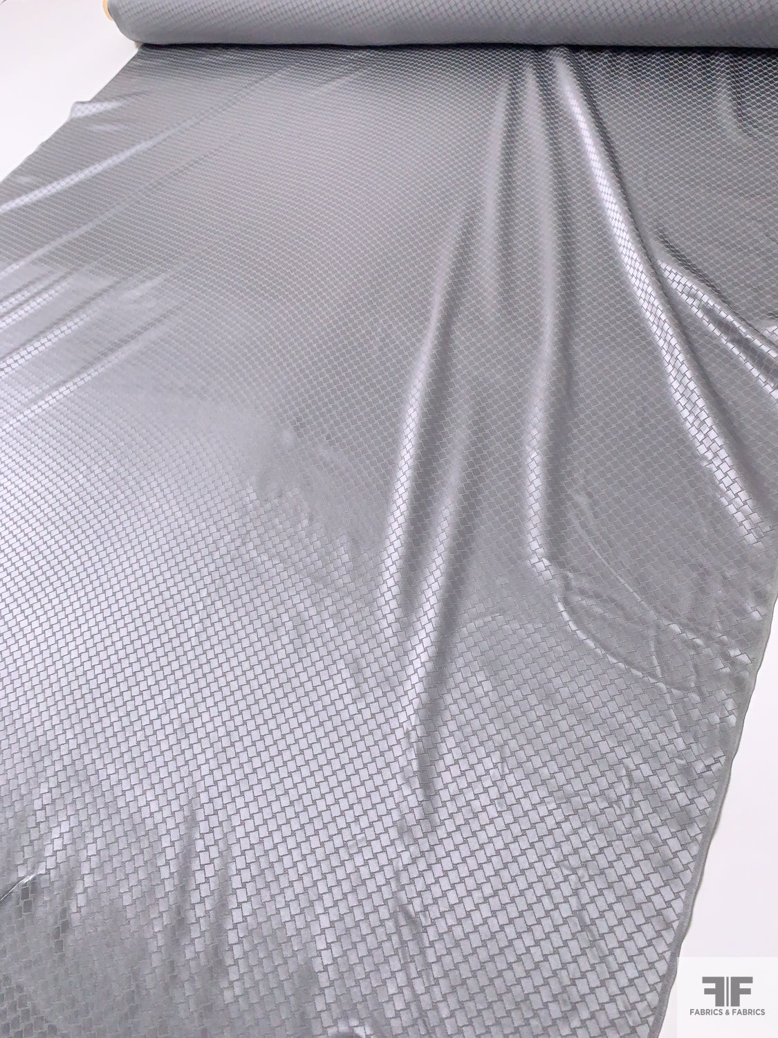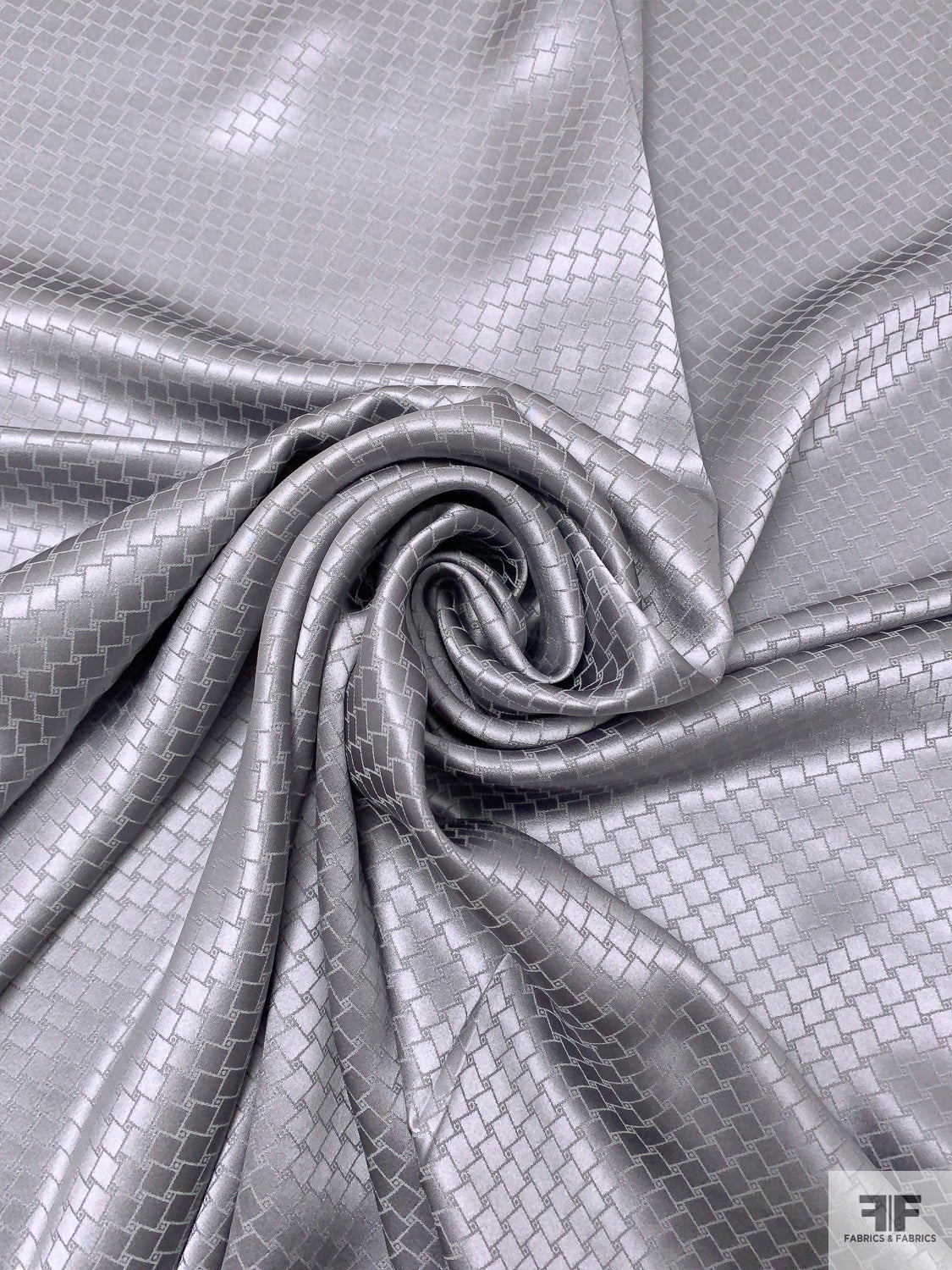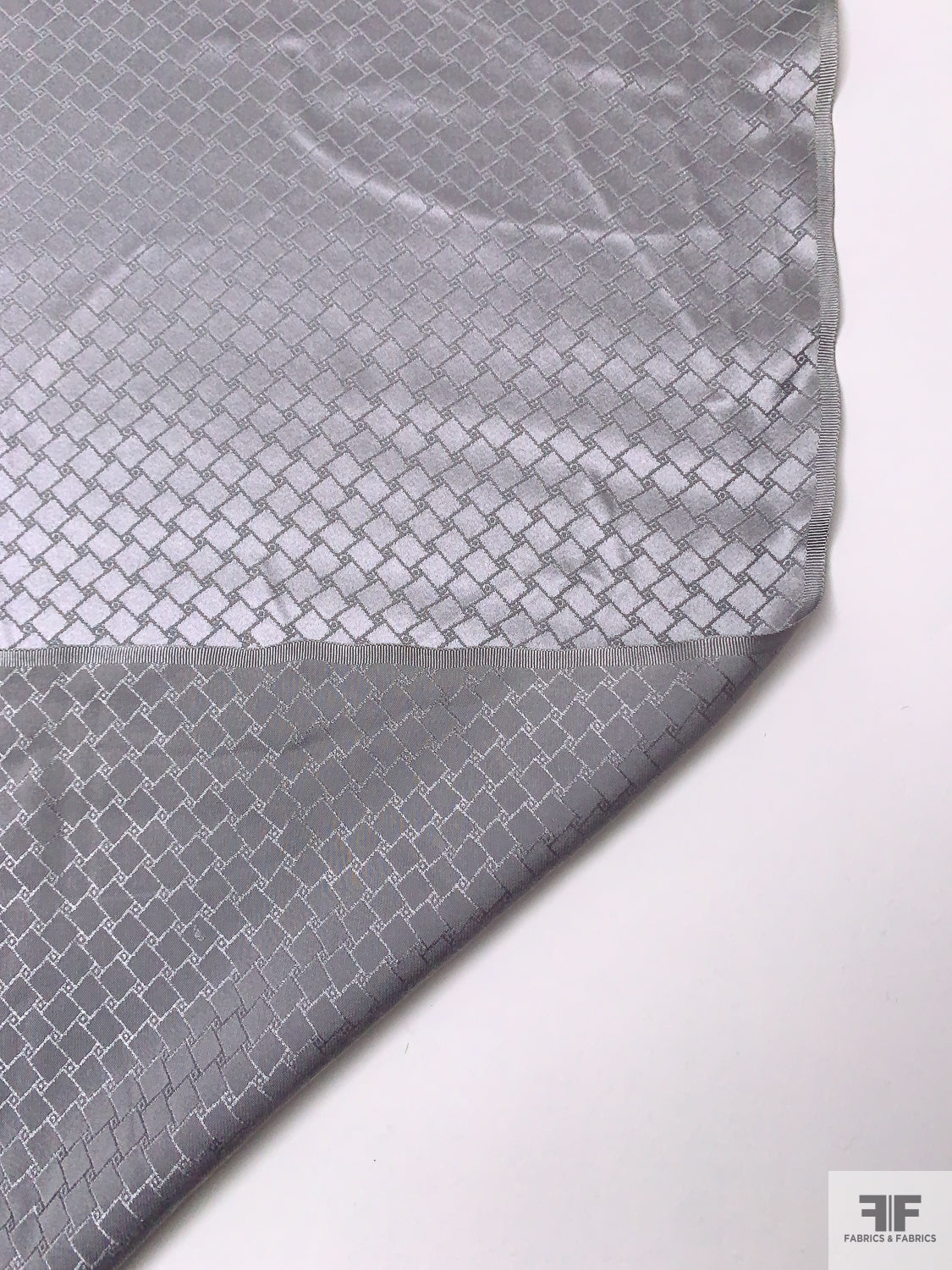 Slanted Squares Jacquard Silk Charmeuse - Grey