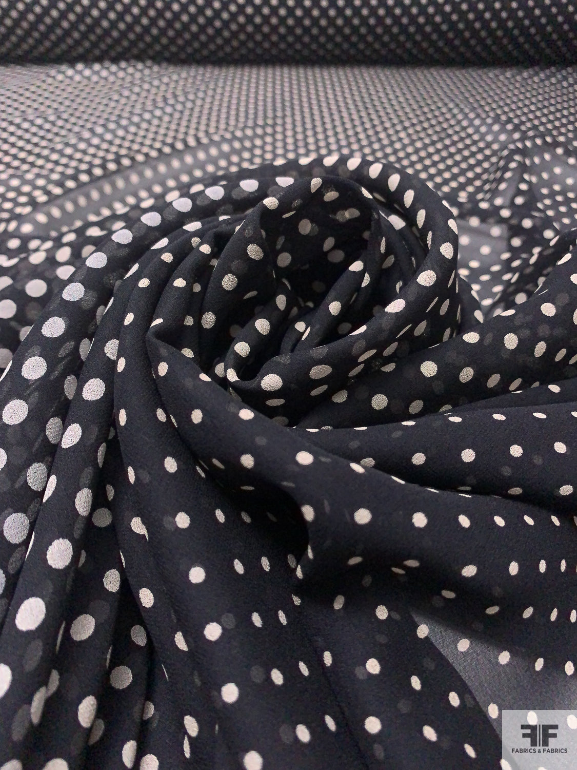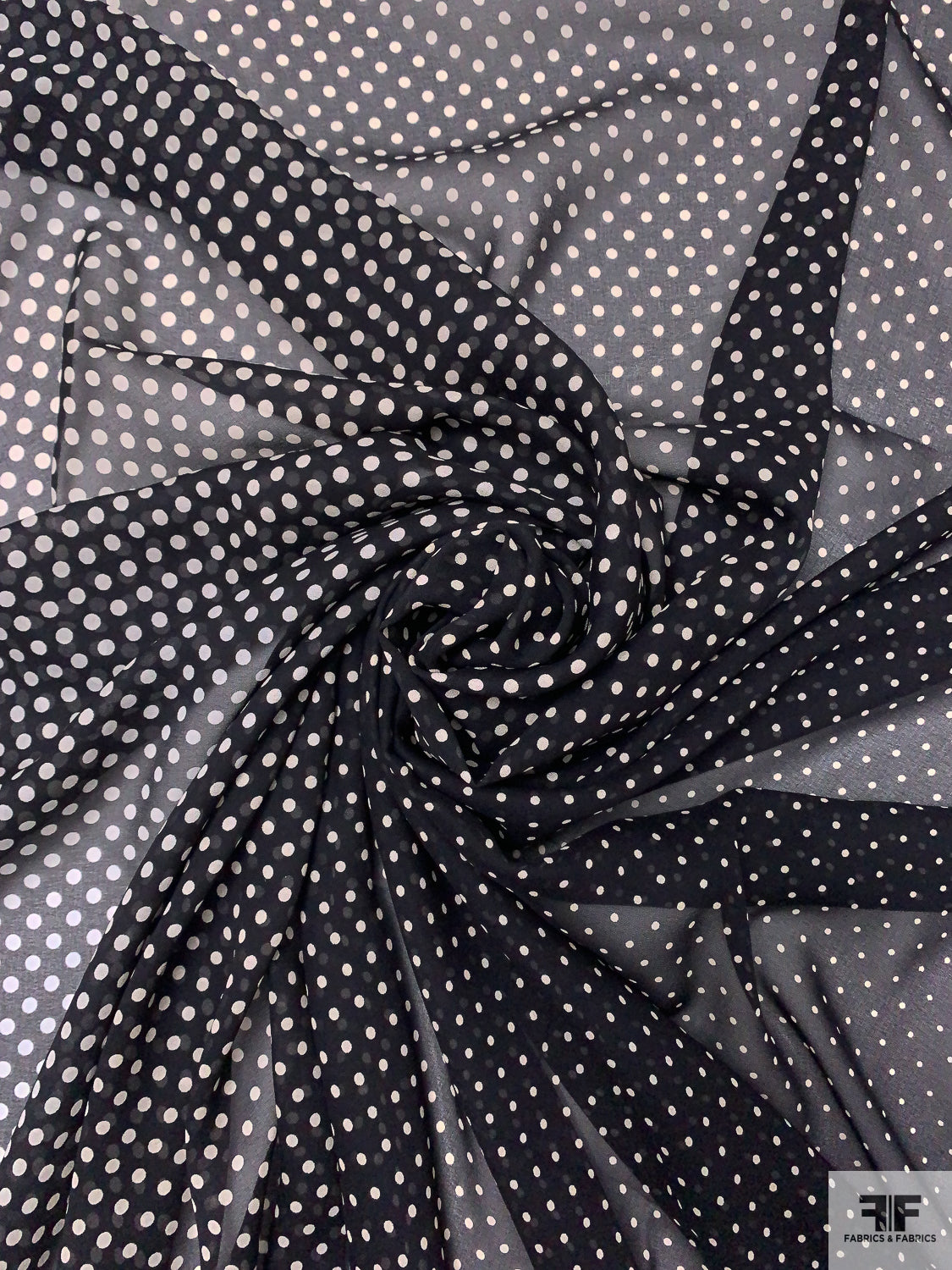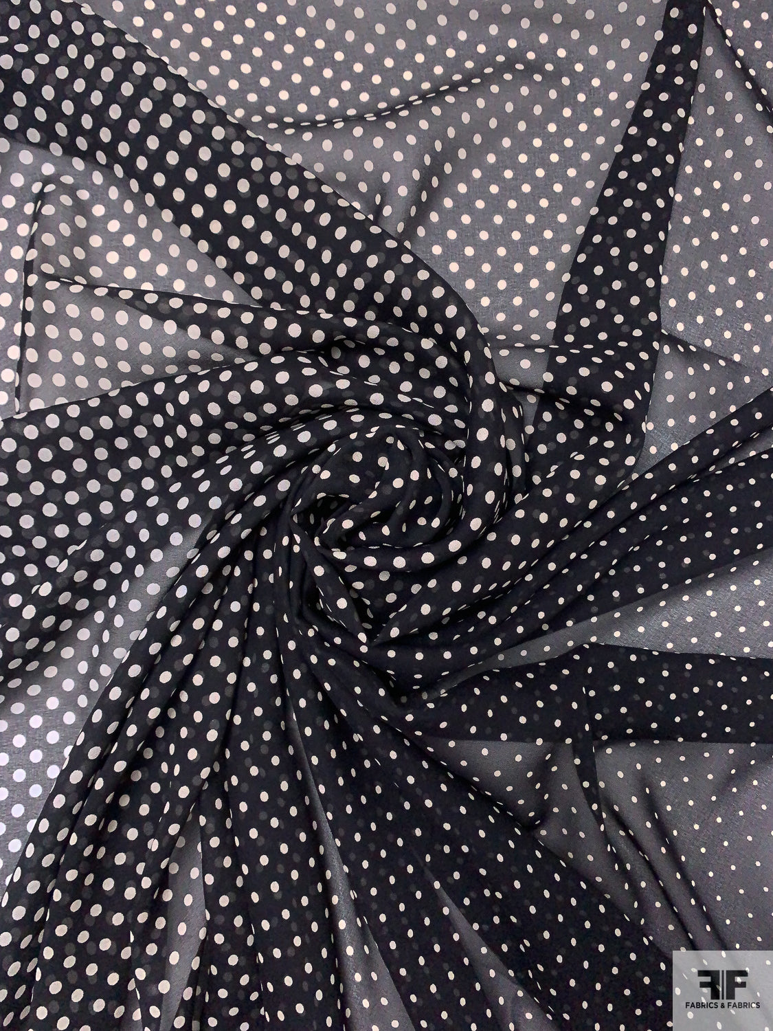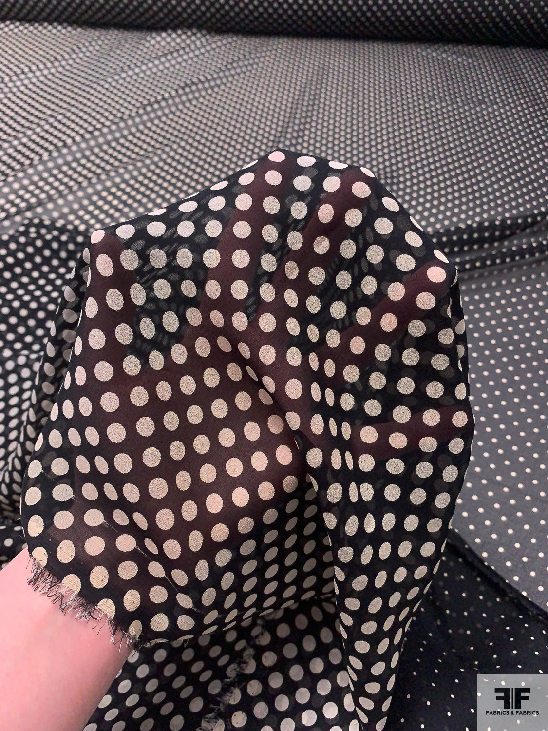 Gradient Polka Dot Printed Silk Chiffon - Black / Beige