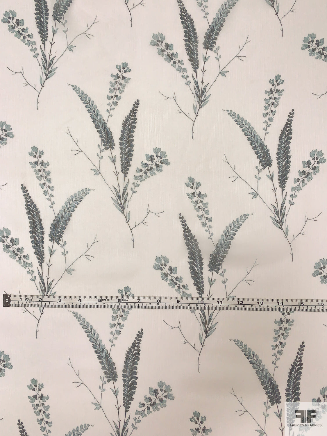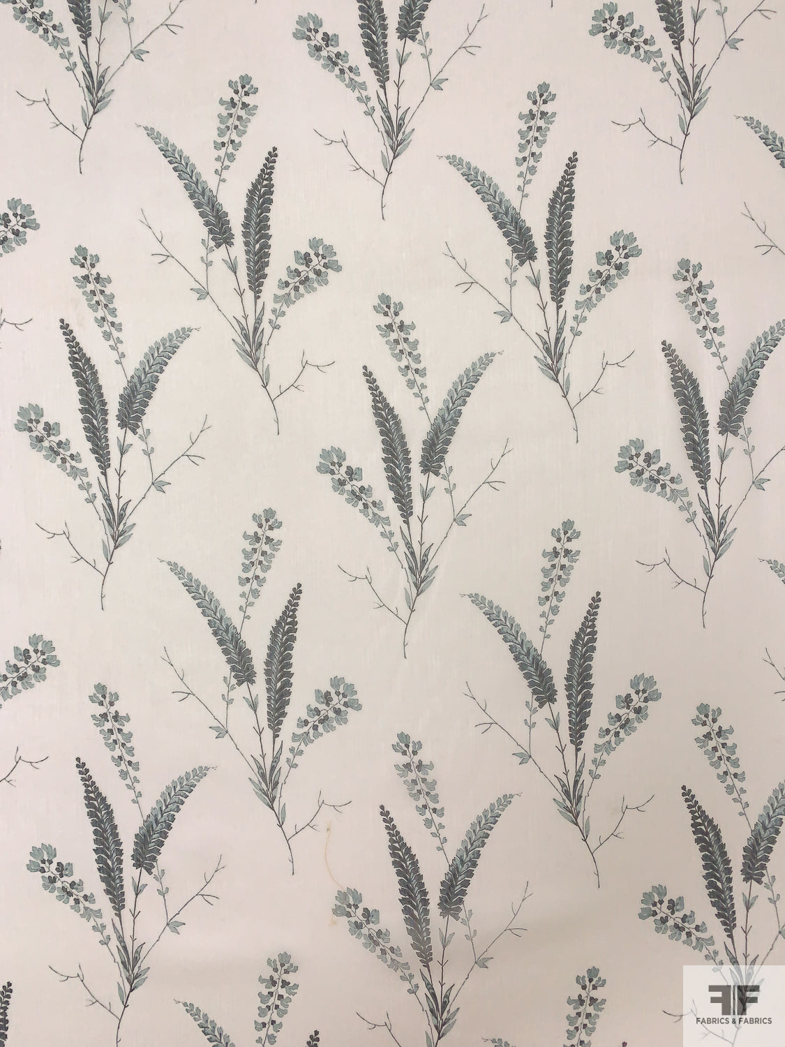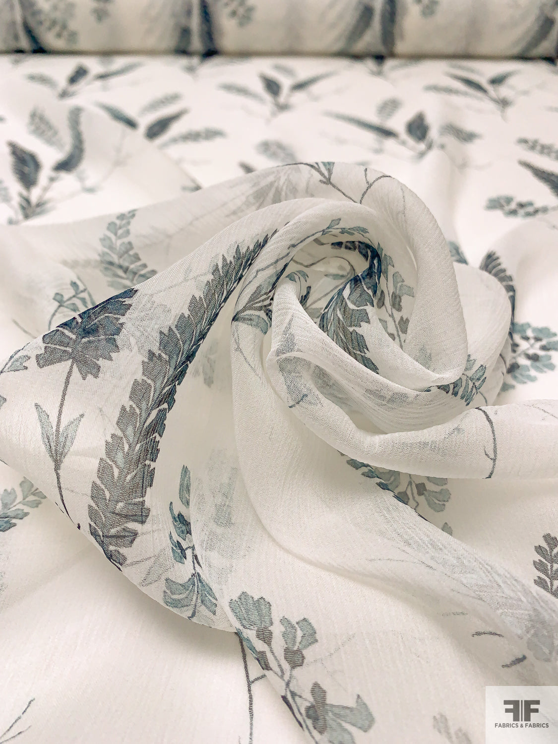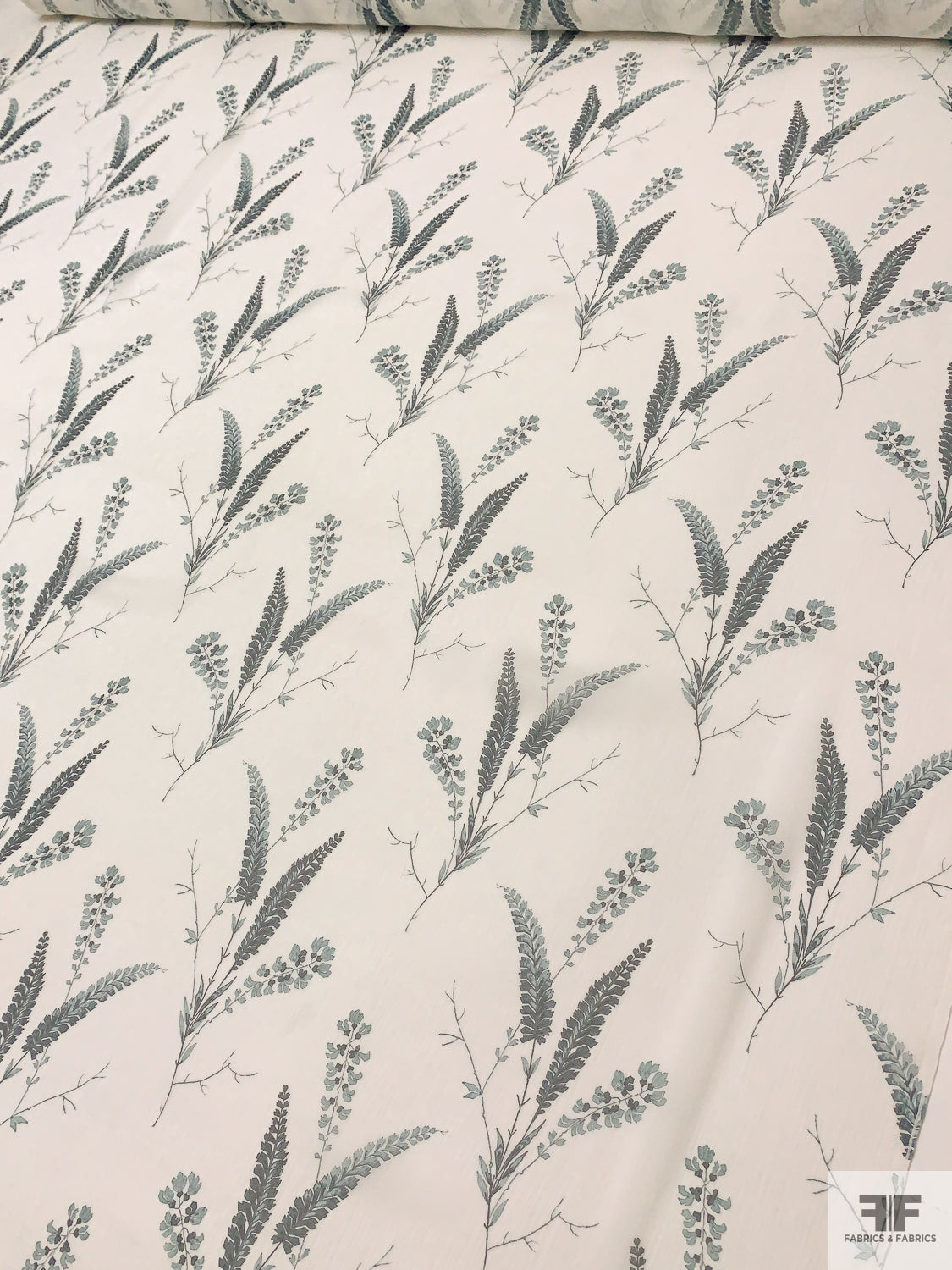Stalk Floral Printed Crinkled Silk Chiffon - Off-White / Dusty Teal