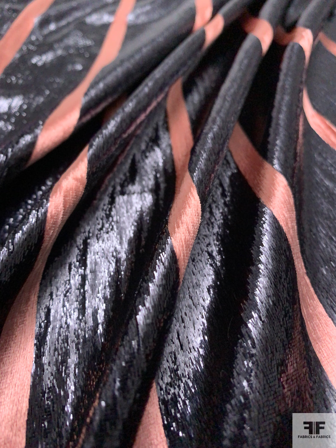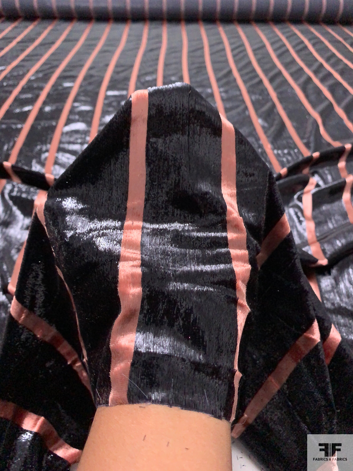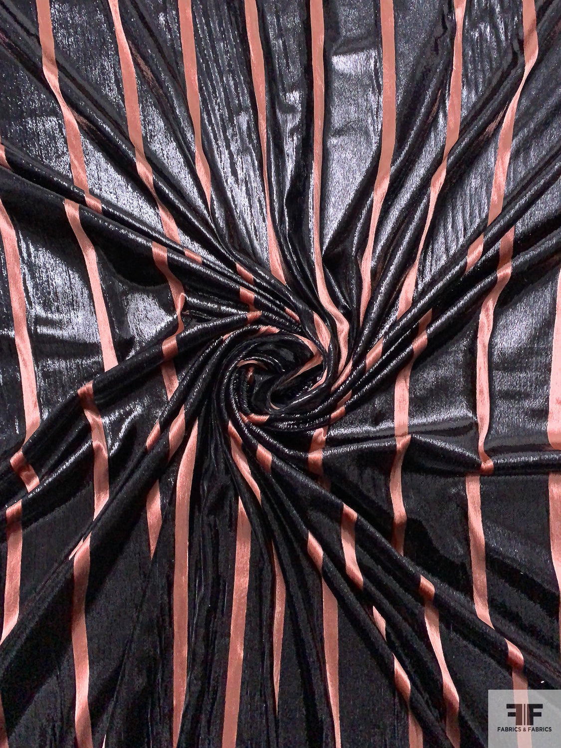 Striped Metallic Panné Velvet - Black / Dusty Rose
