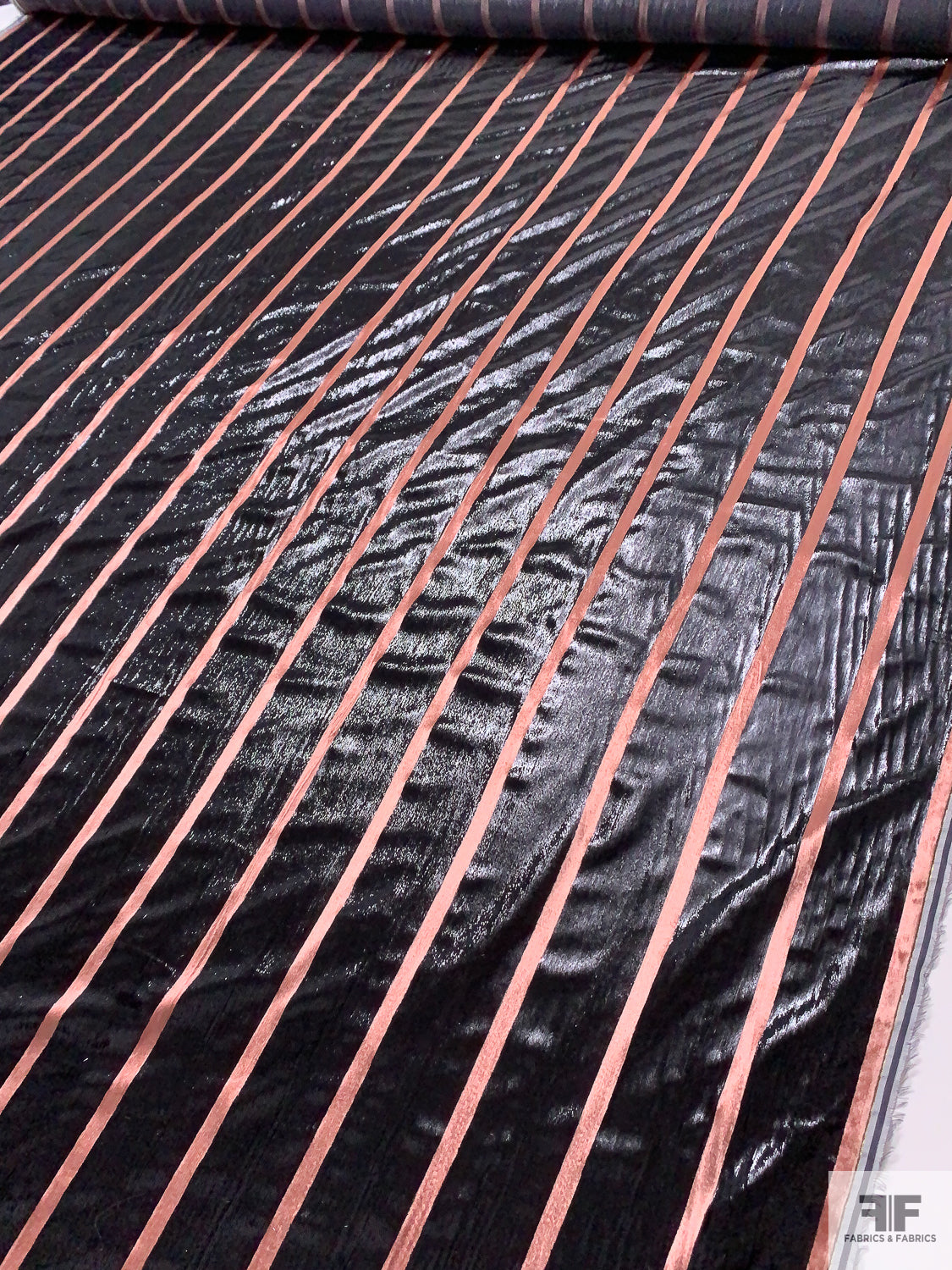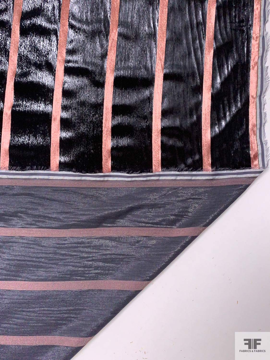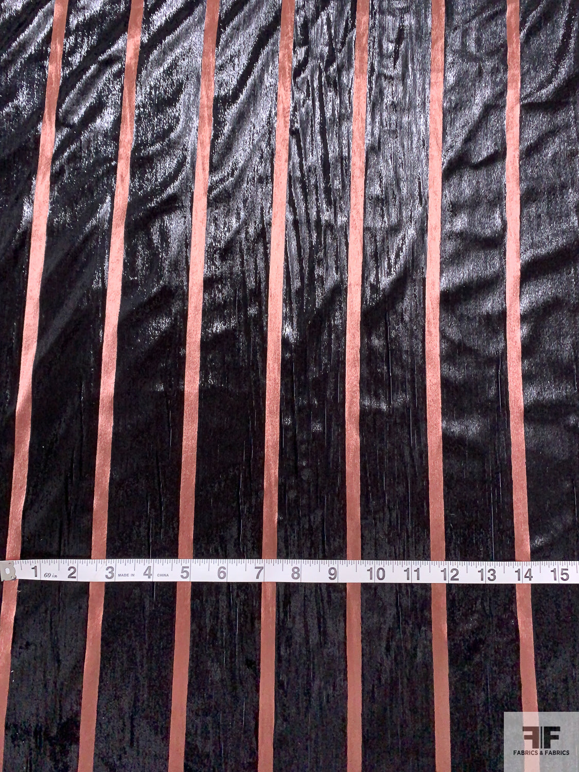 Striped Metallic Panné Velvet - Black / Dusty Rose