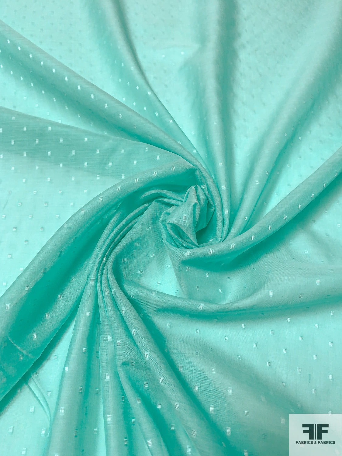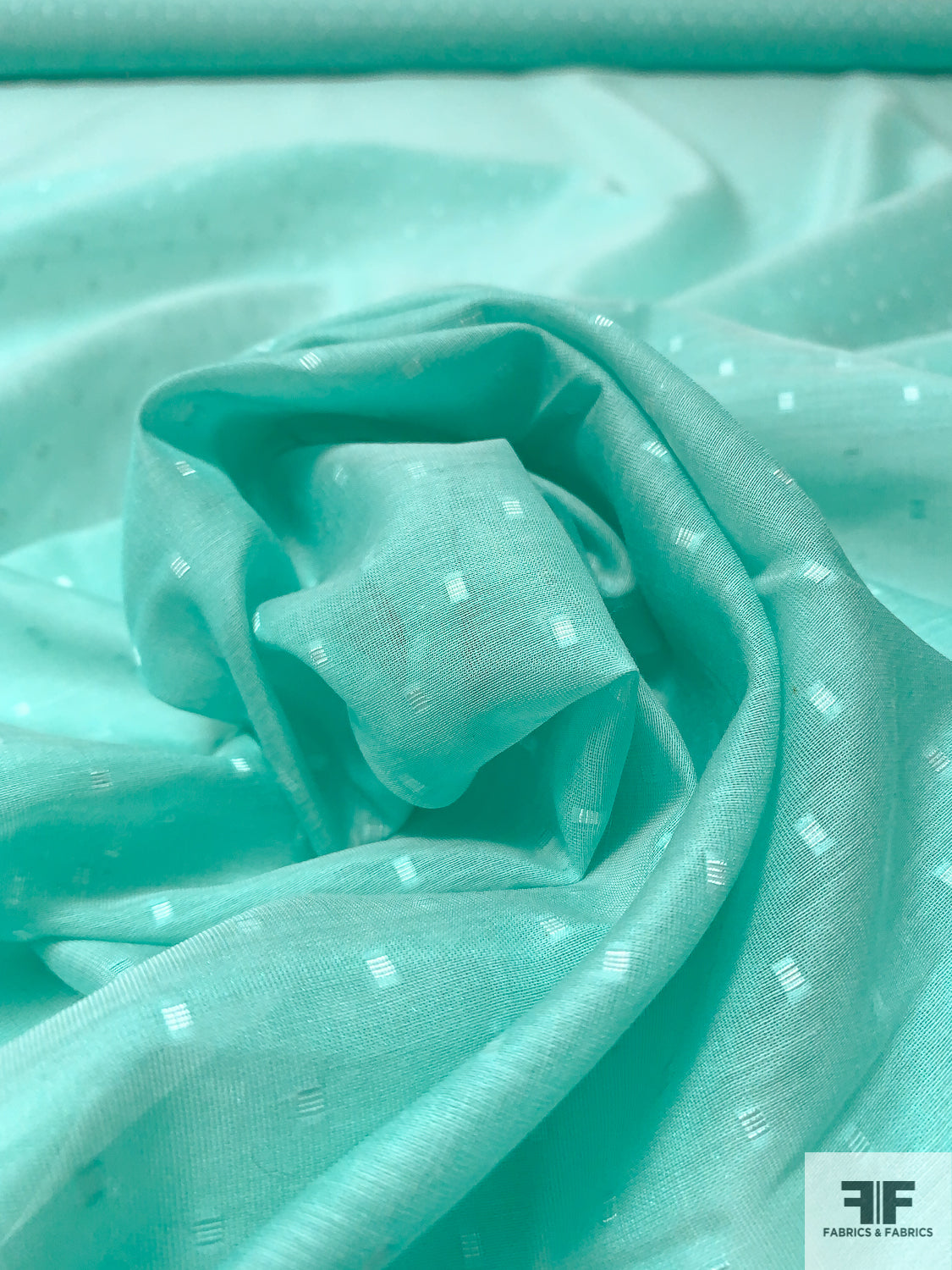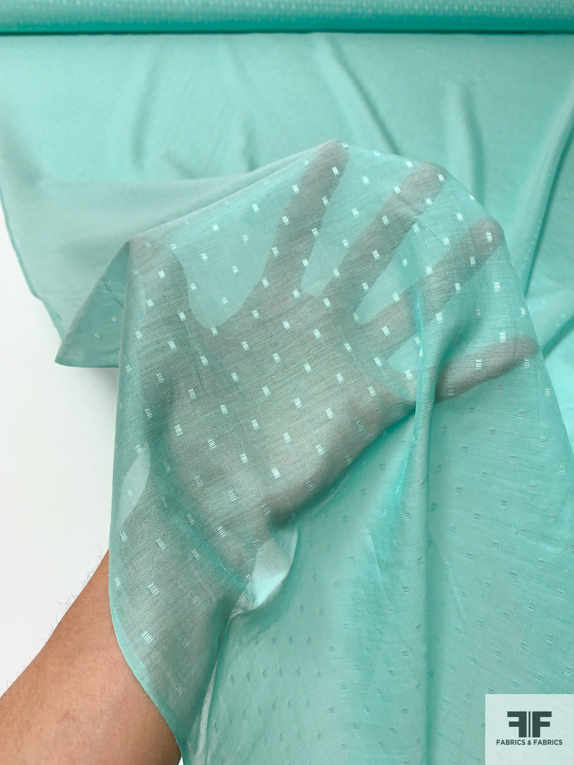 Swiss Dot Cotton-Silk Voile - Aqua / Off-White