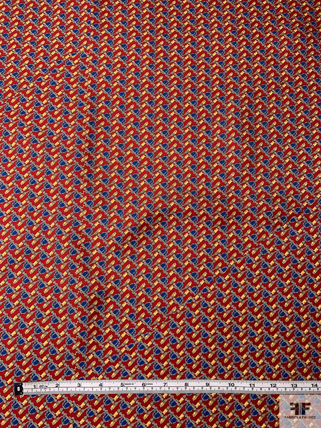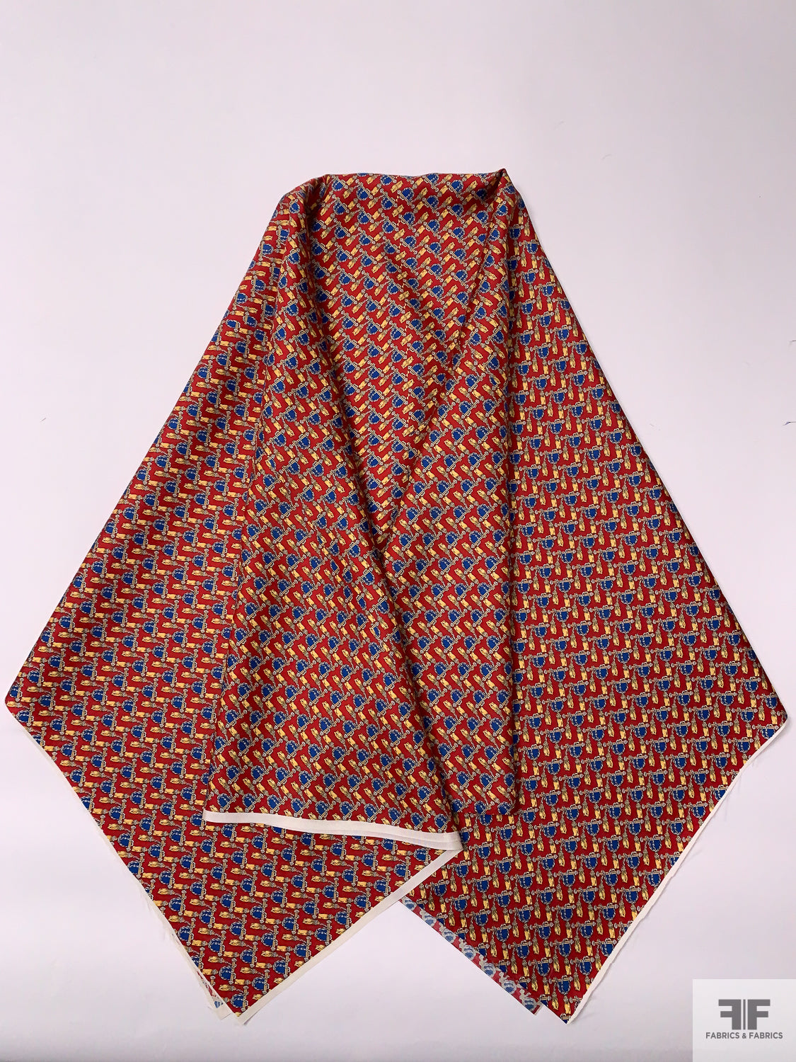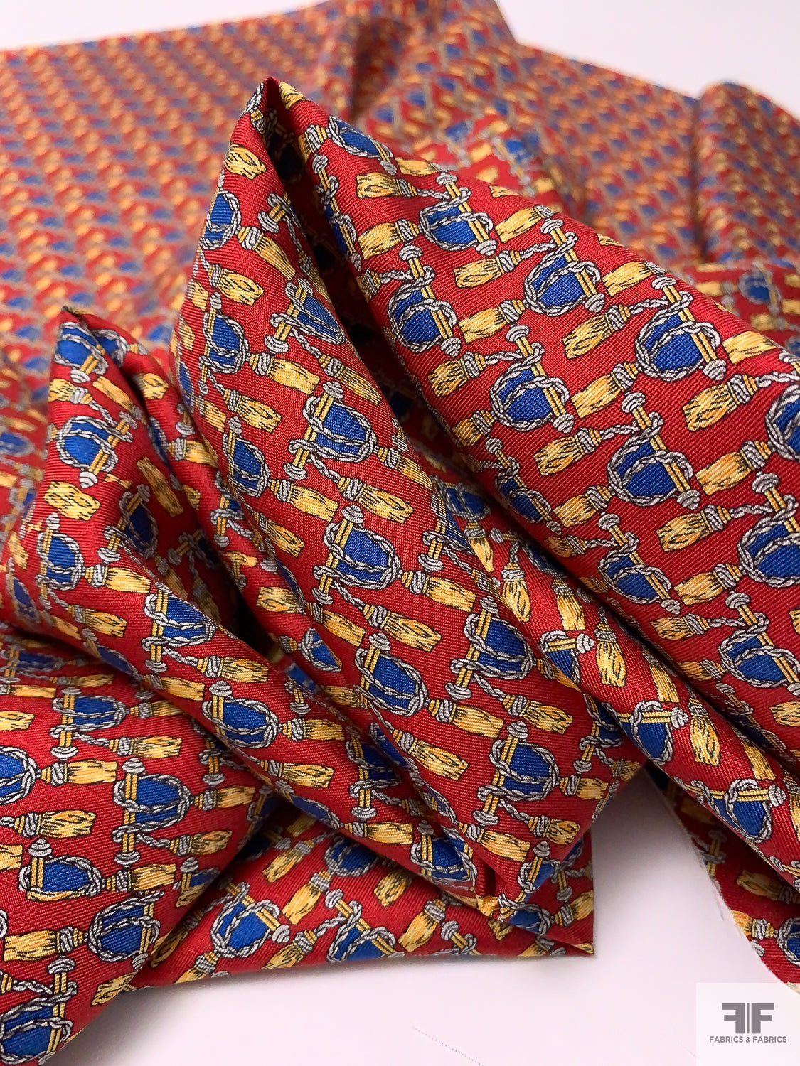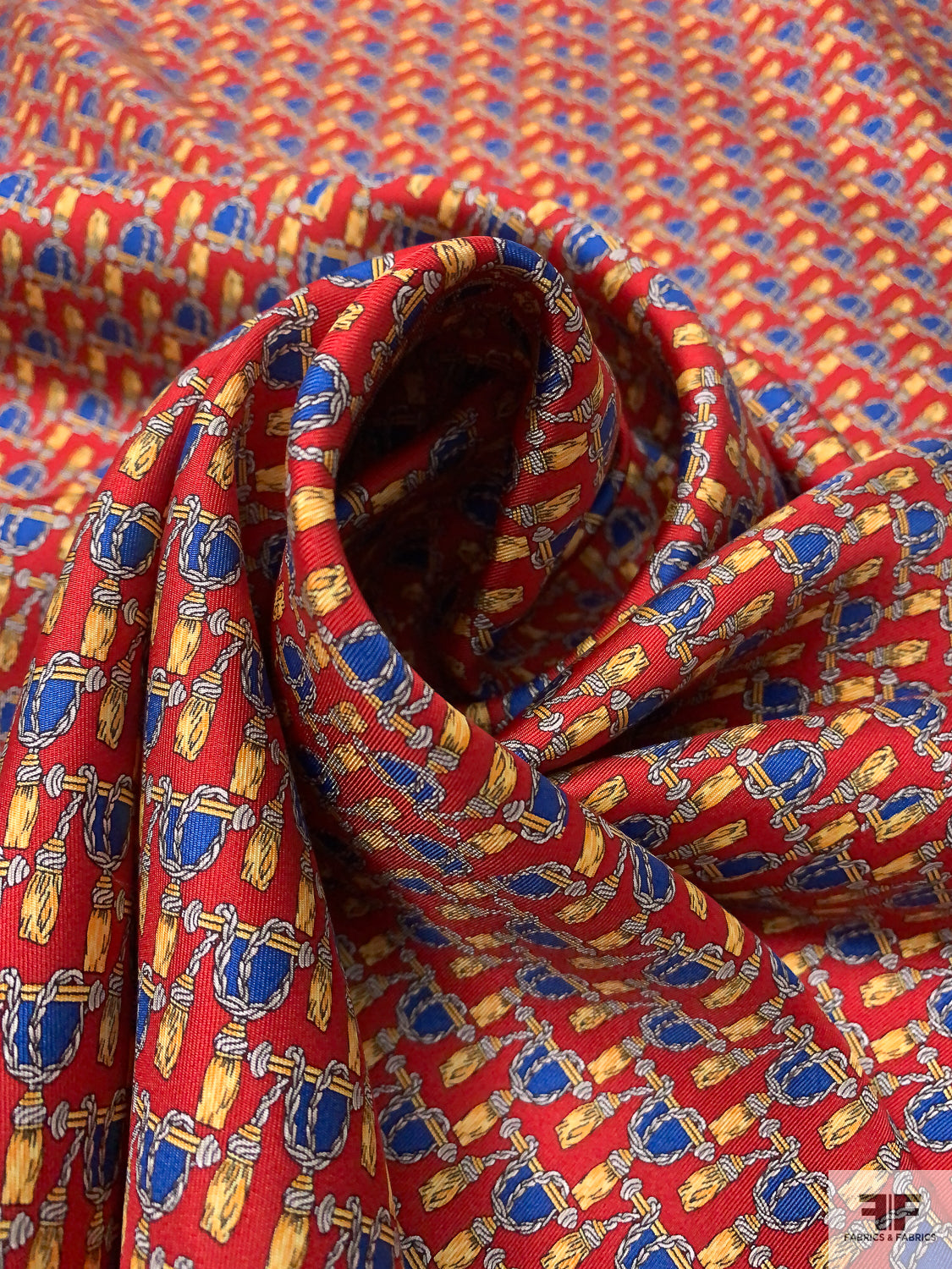 Tassel Printed Fine Silk Twill Pre-Cut Panel - Red / Blue / Yellow-Gold