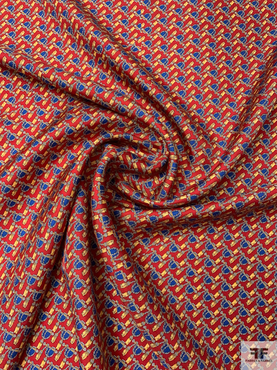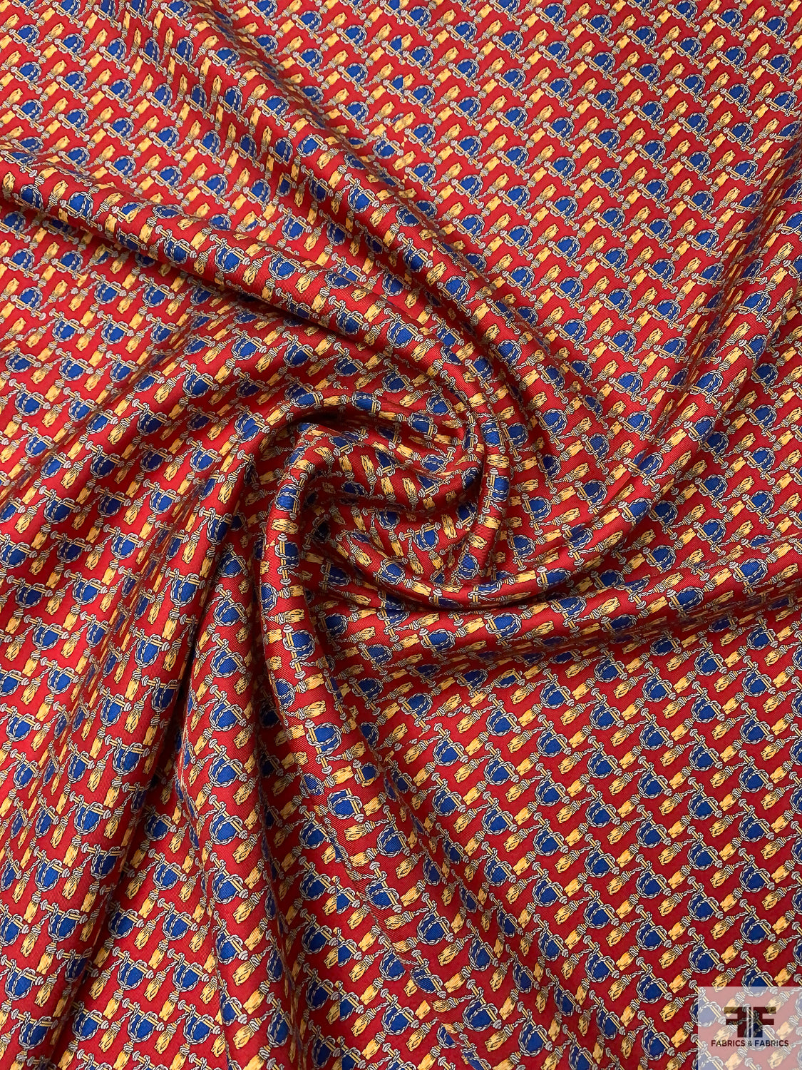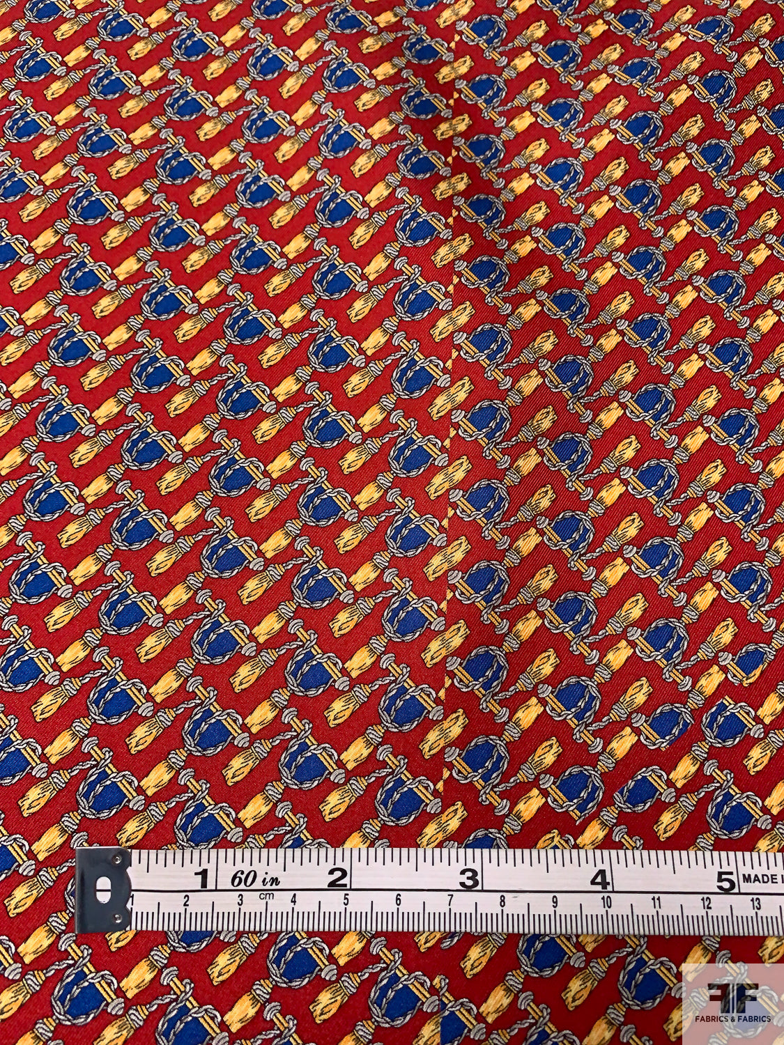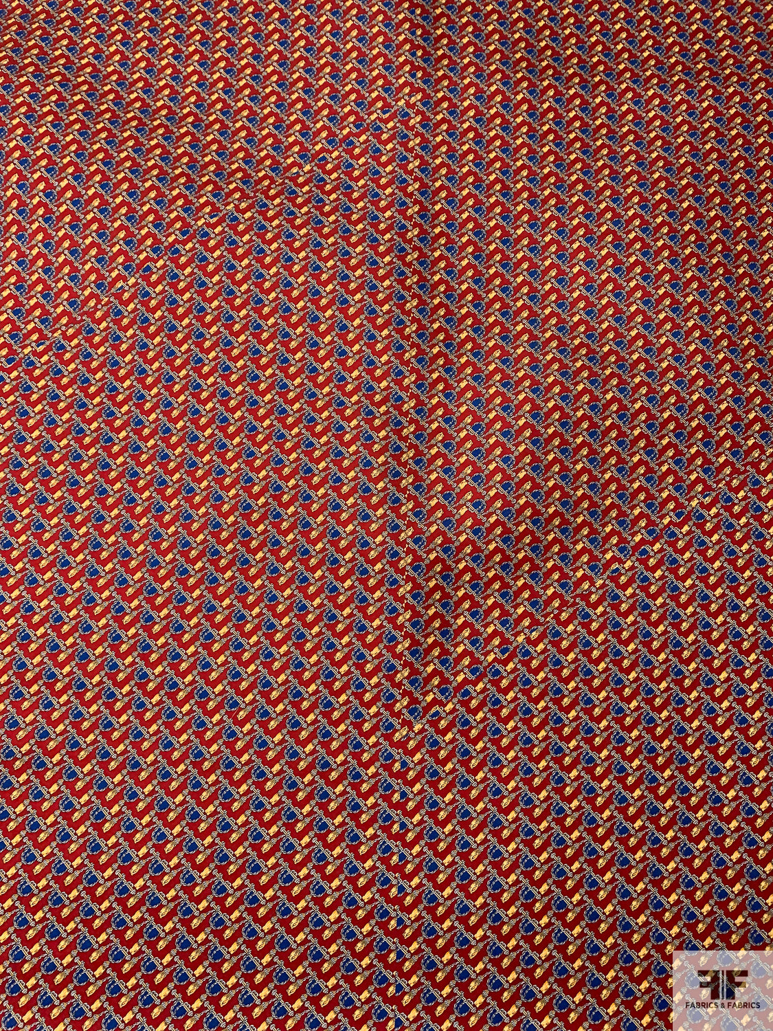 Tassel Printed Fine Silk Twill Pre-Cut Panel - Red / Blue / Yellow-Gold
