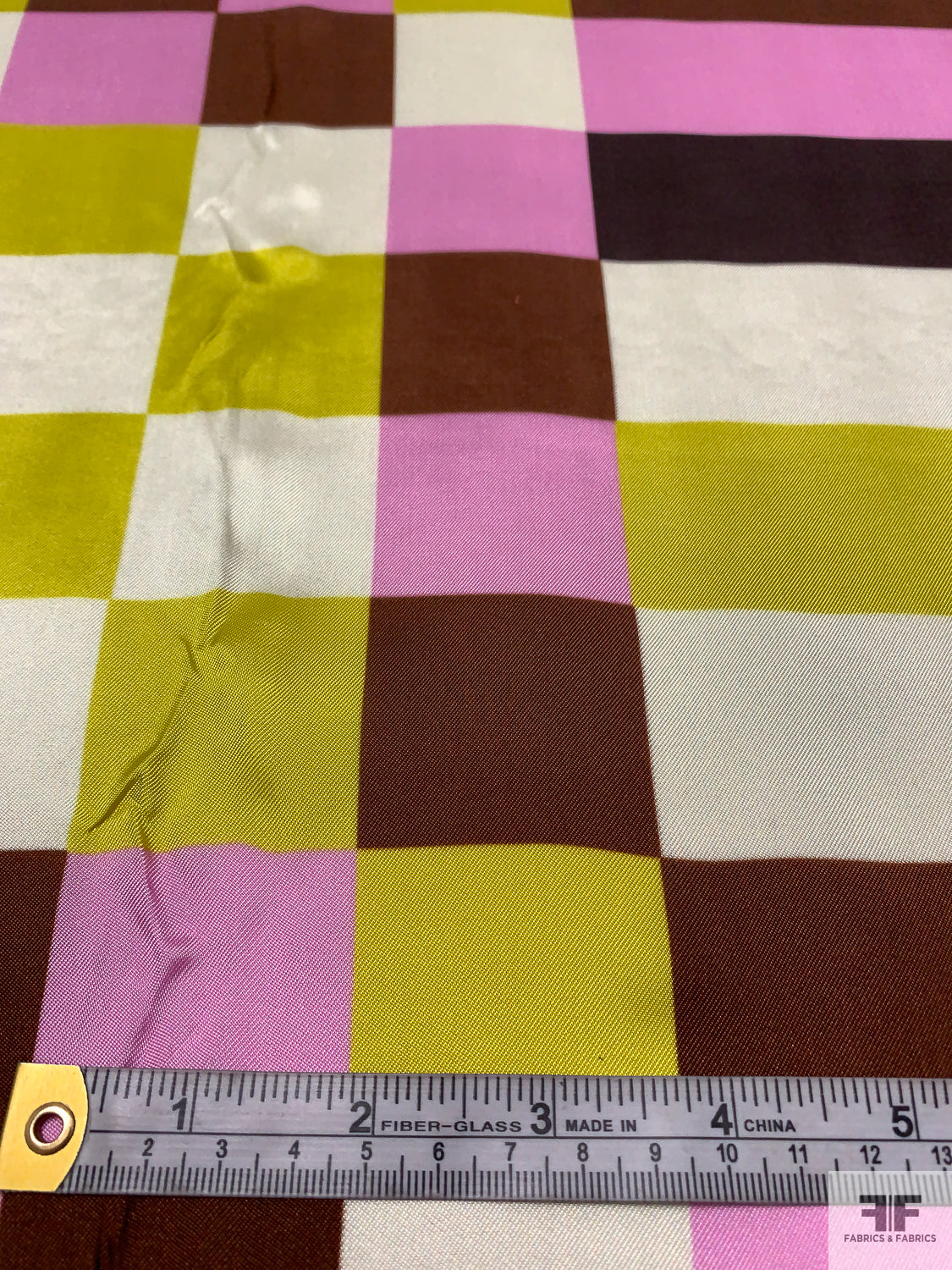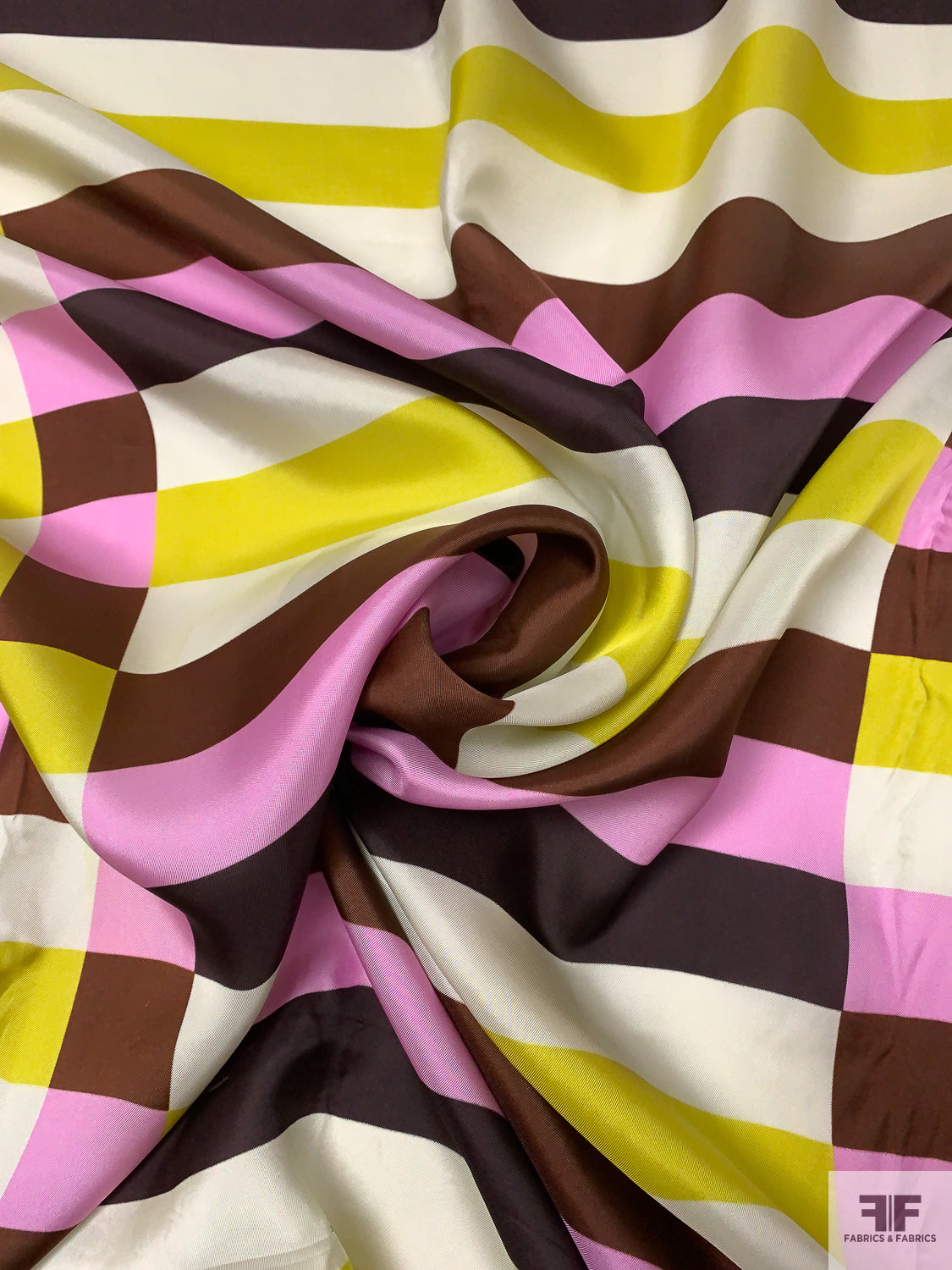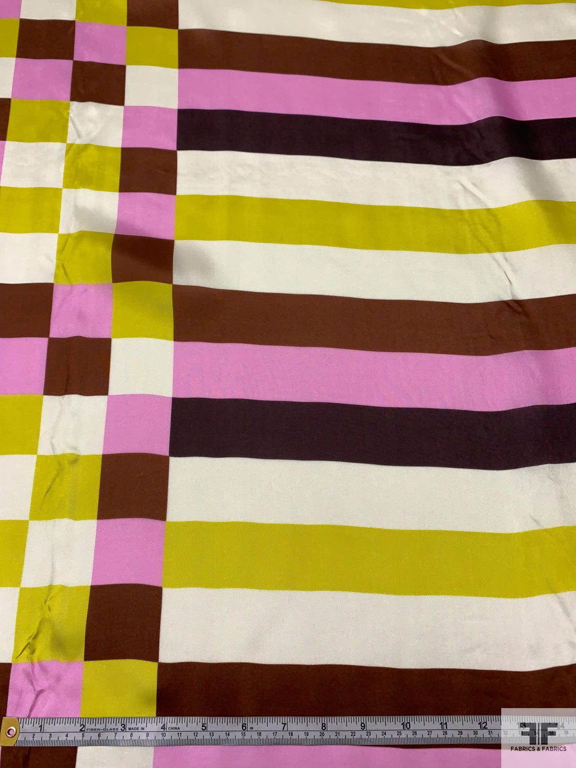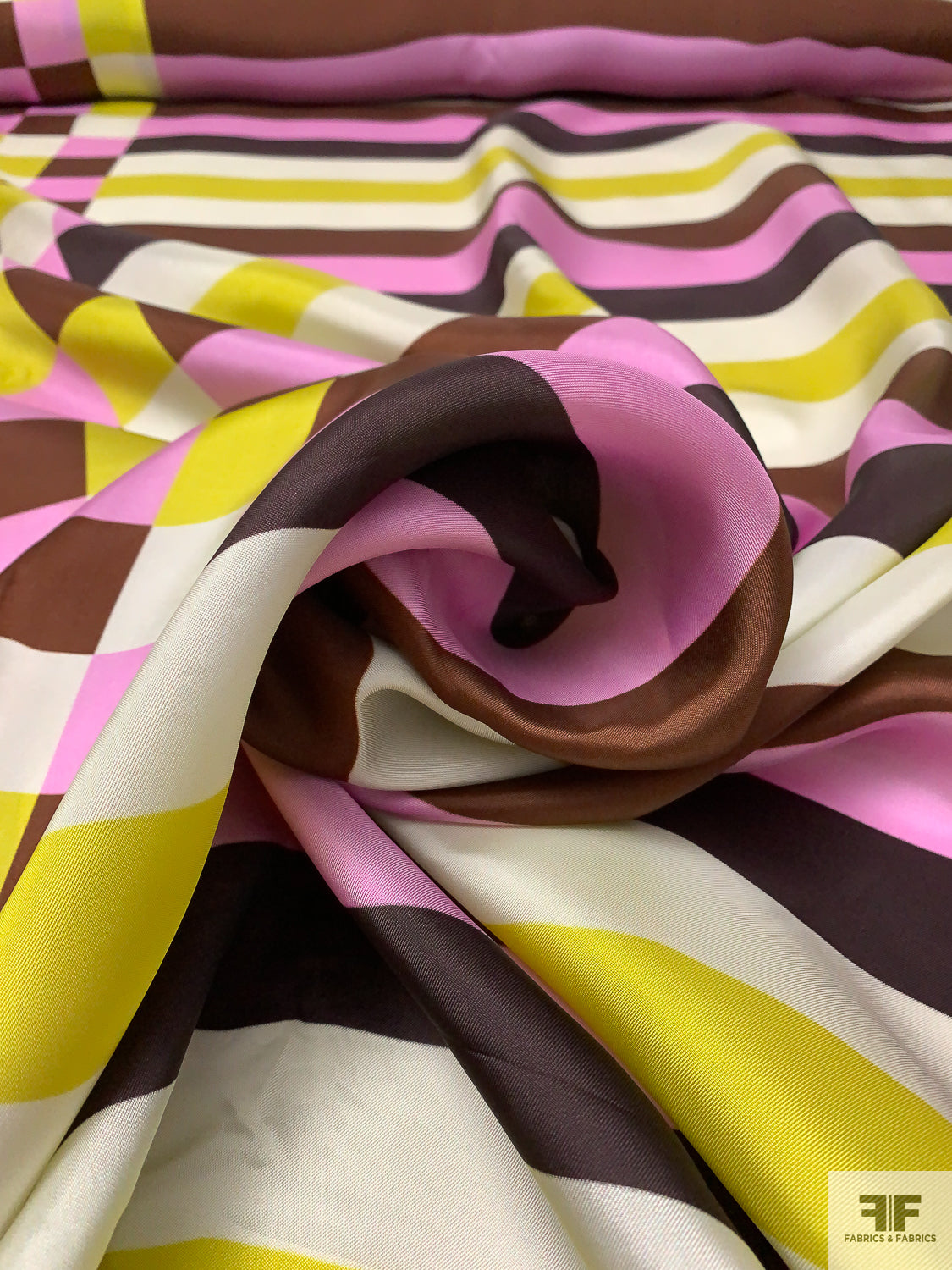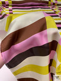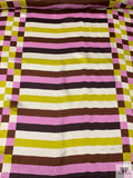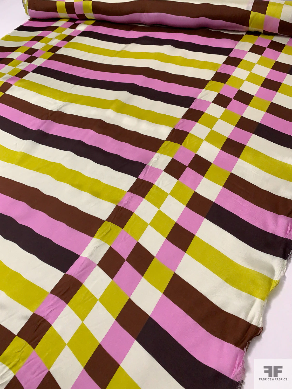 Tile Striped Printed Rayon Twill - Chartreuse / Orchid Pink / Eggplant / Maroon