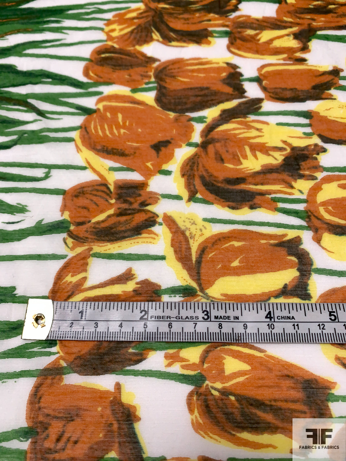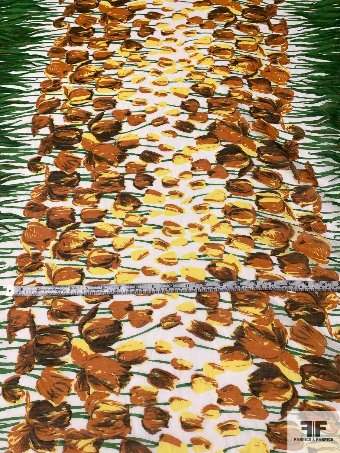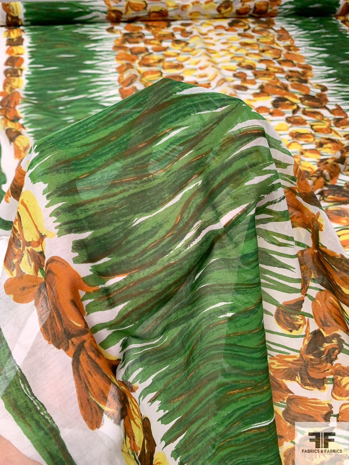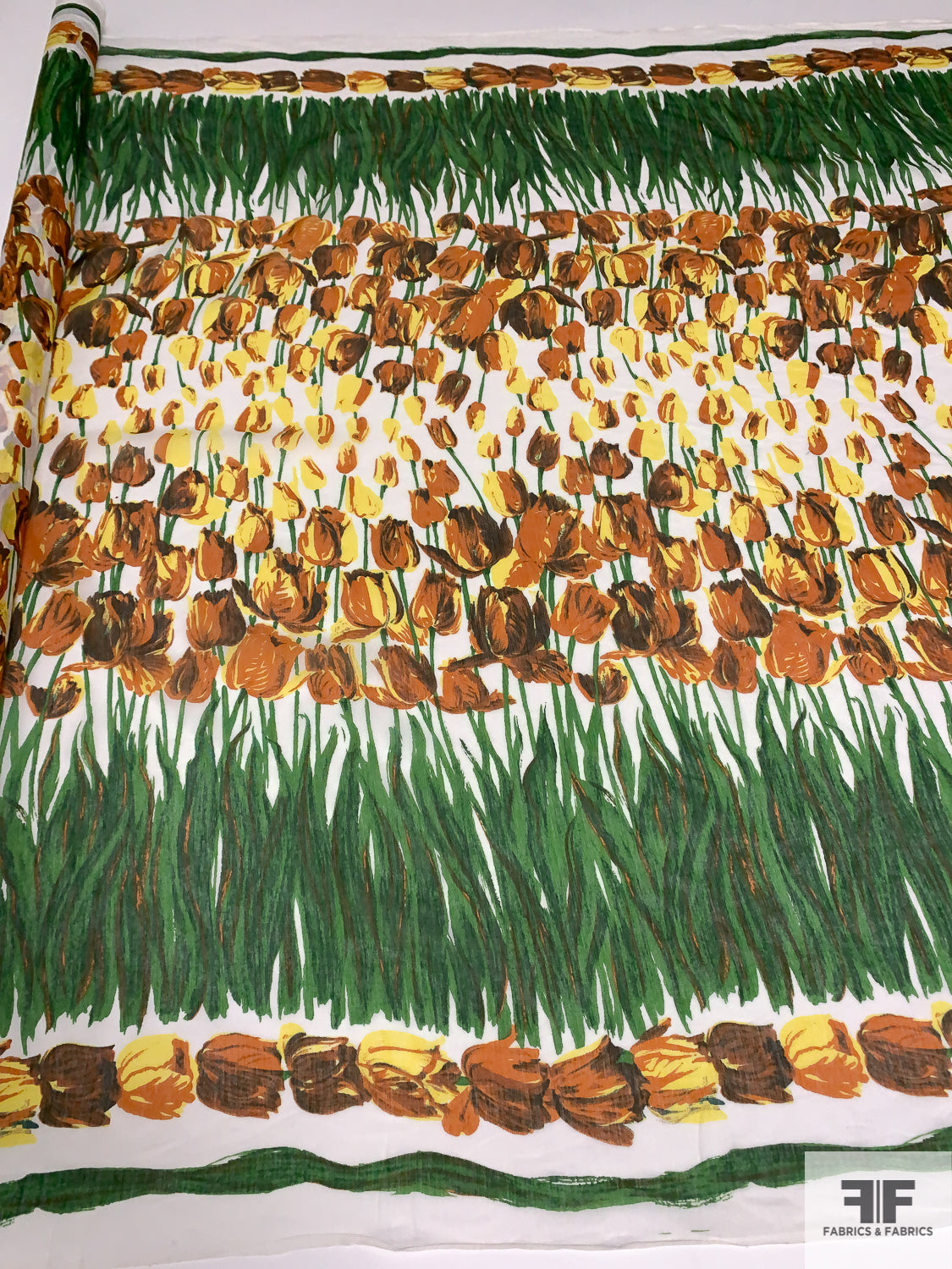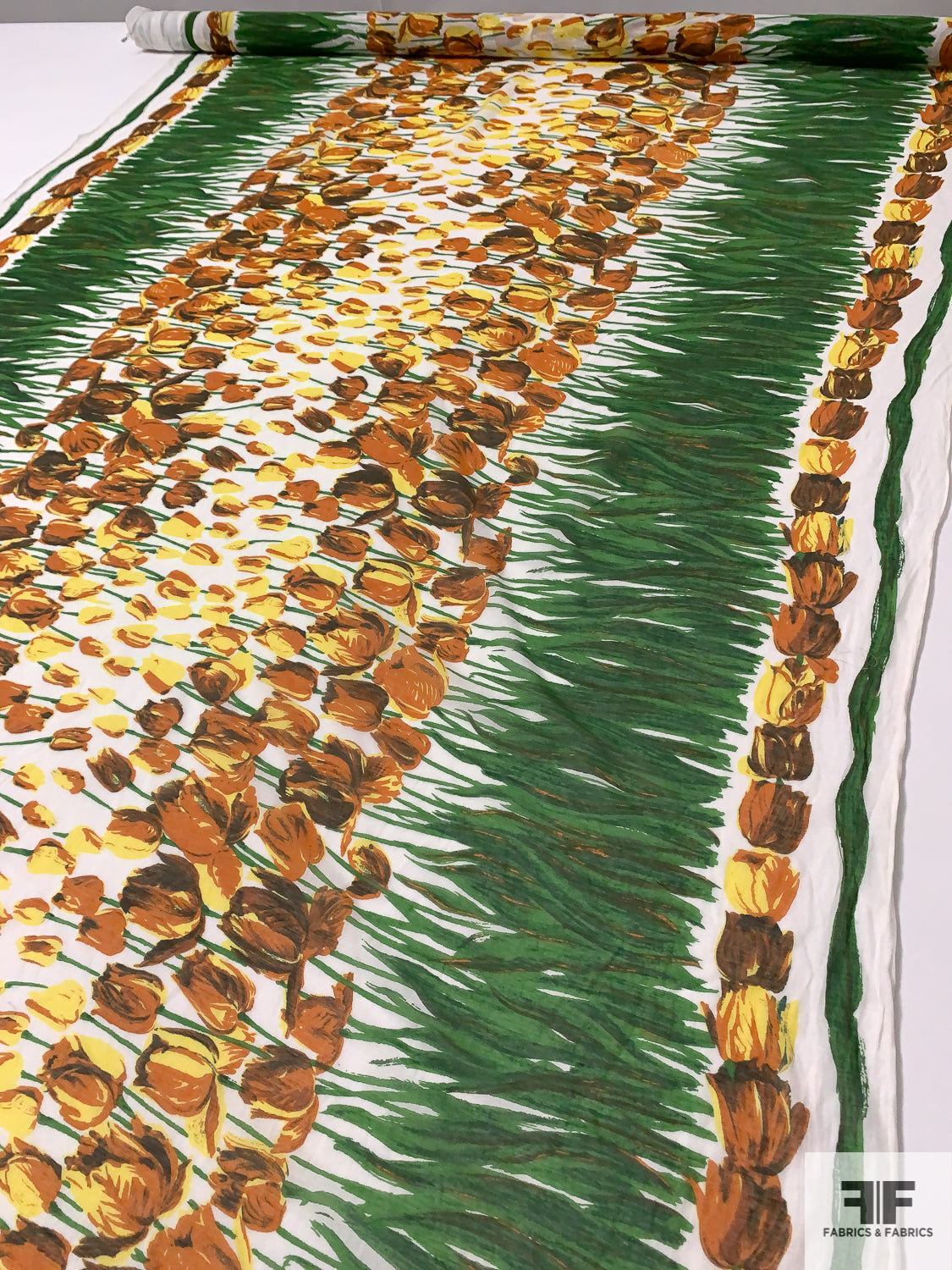 Tulip Garden Printed Cotton-Silk Voile - Green / Yellow / Browns / White