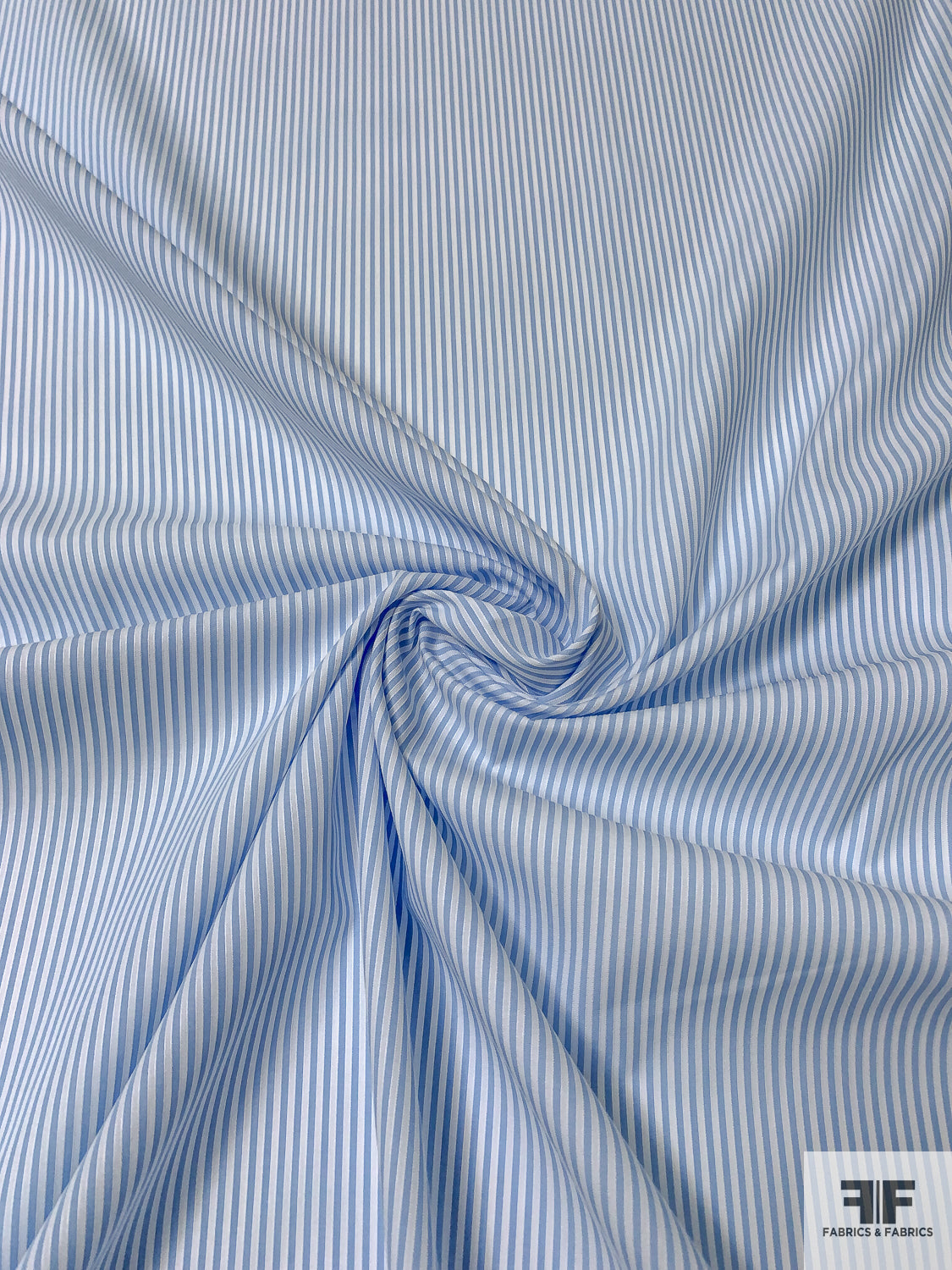 Vertical Railroad Striped Finely Textured Yarn-Dyed Cotton Shirting - Maya Blue / White