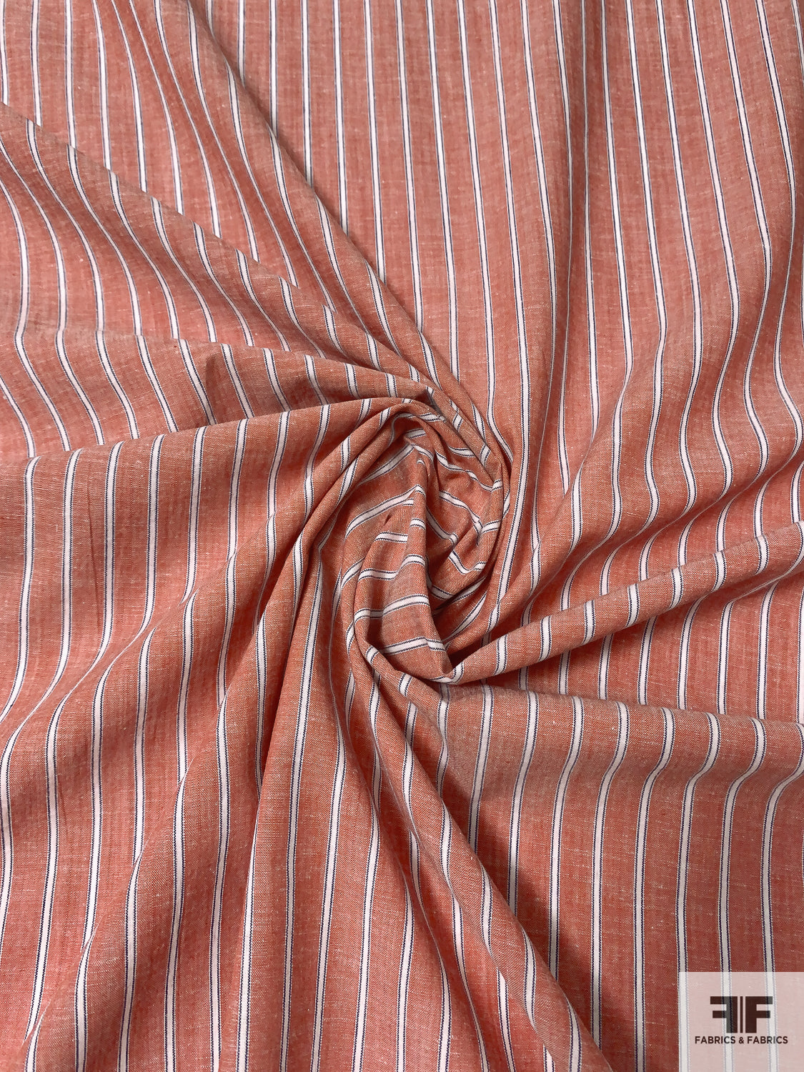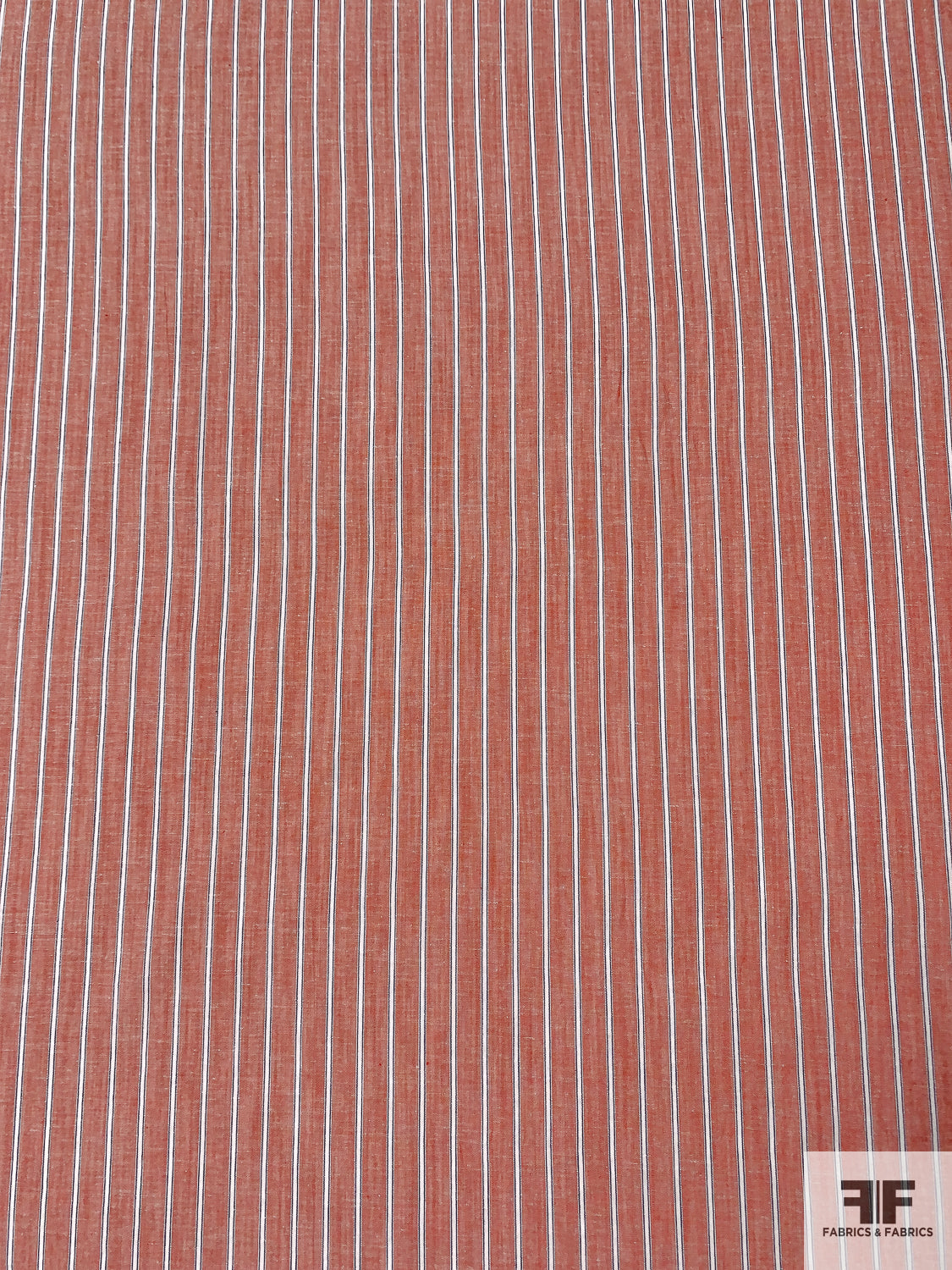 Vertical Striped Yarn-Dyed Cotton Shirting - Rust / Blue / White