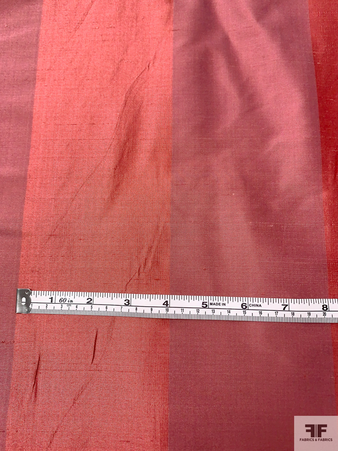 Vertical Striped Yarn-Dyed Silk Shantung - Peachy Raspberry / Muted Rose