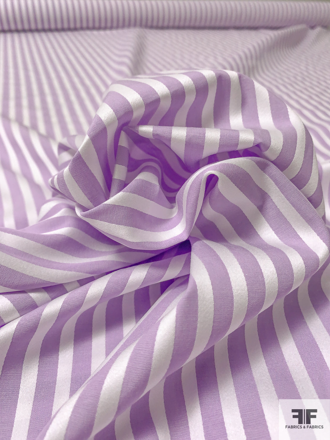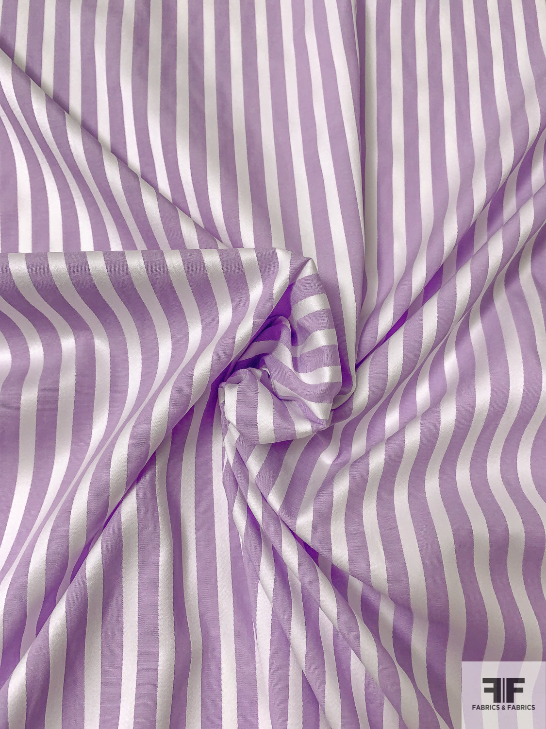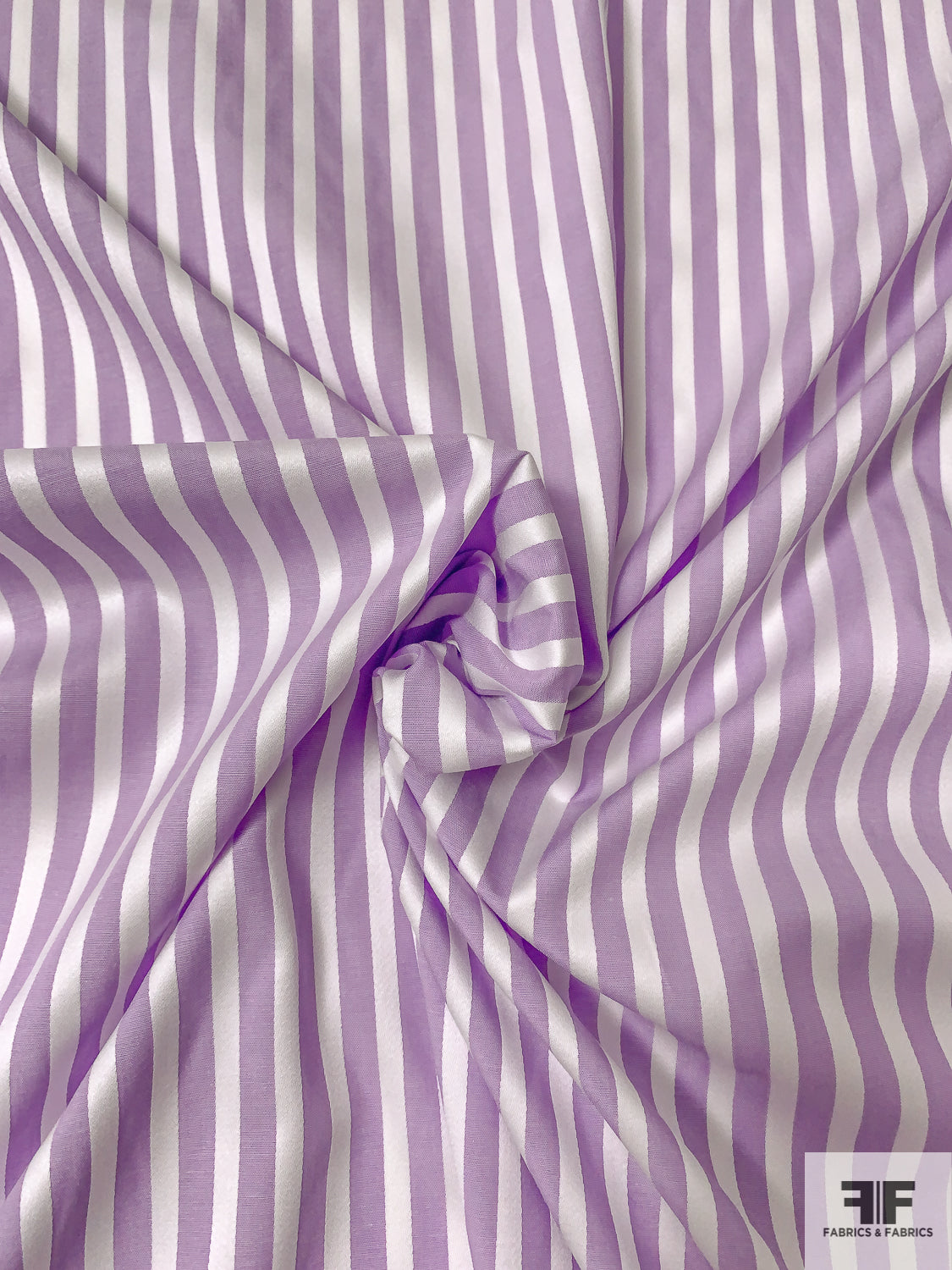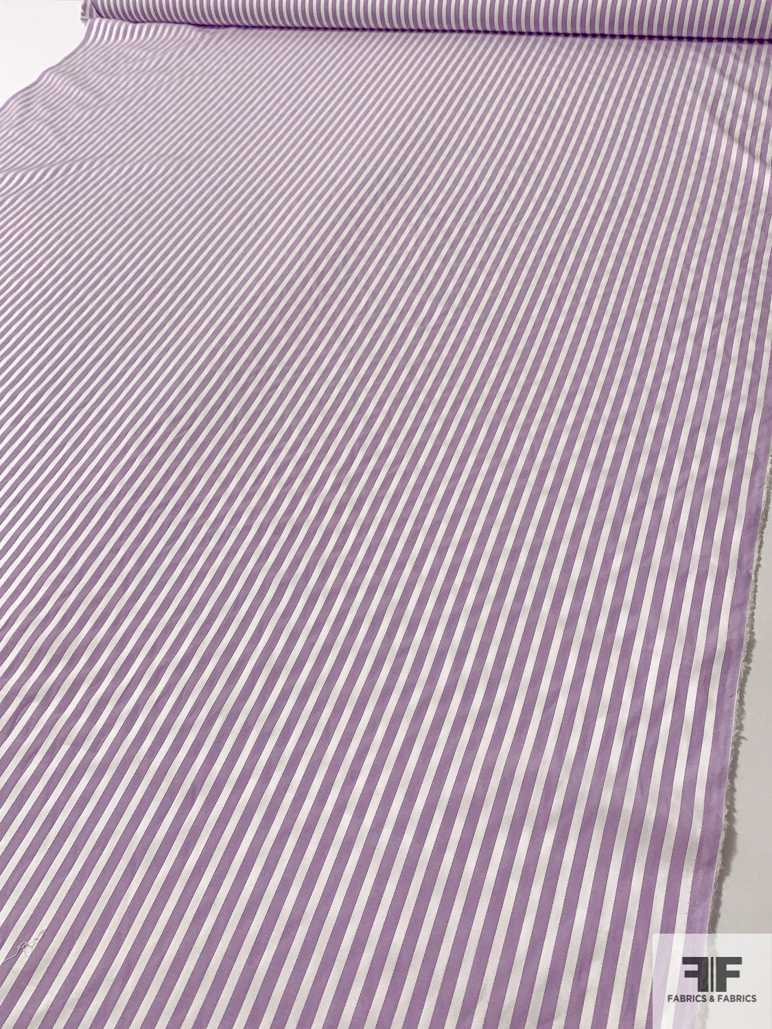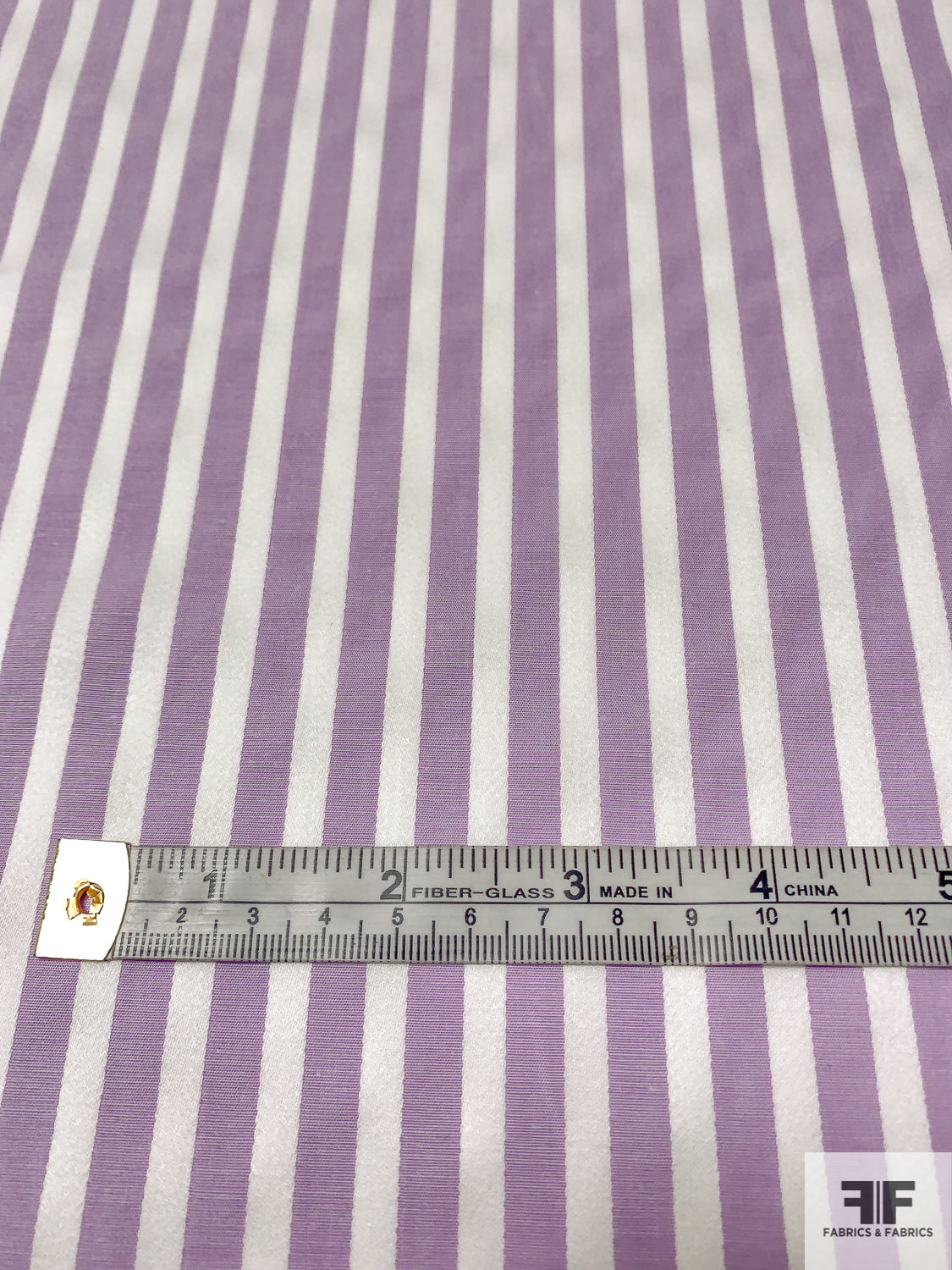 Vertical Striped Yarn-Dyed Slightly Textured Cotton Shirting - Lavender / White