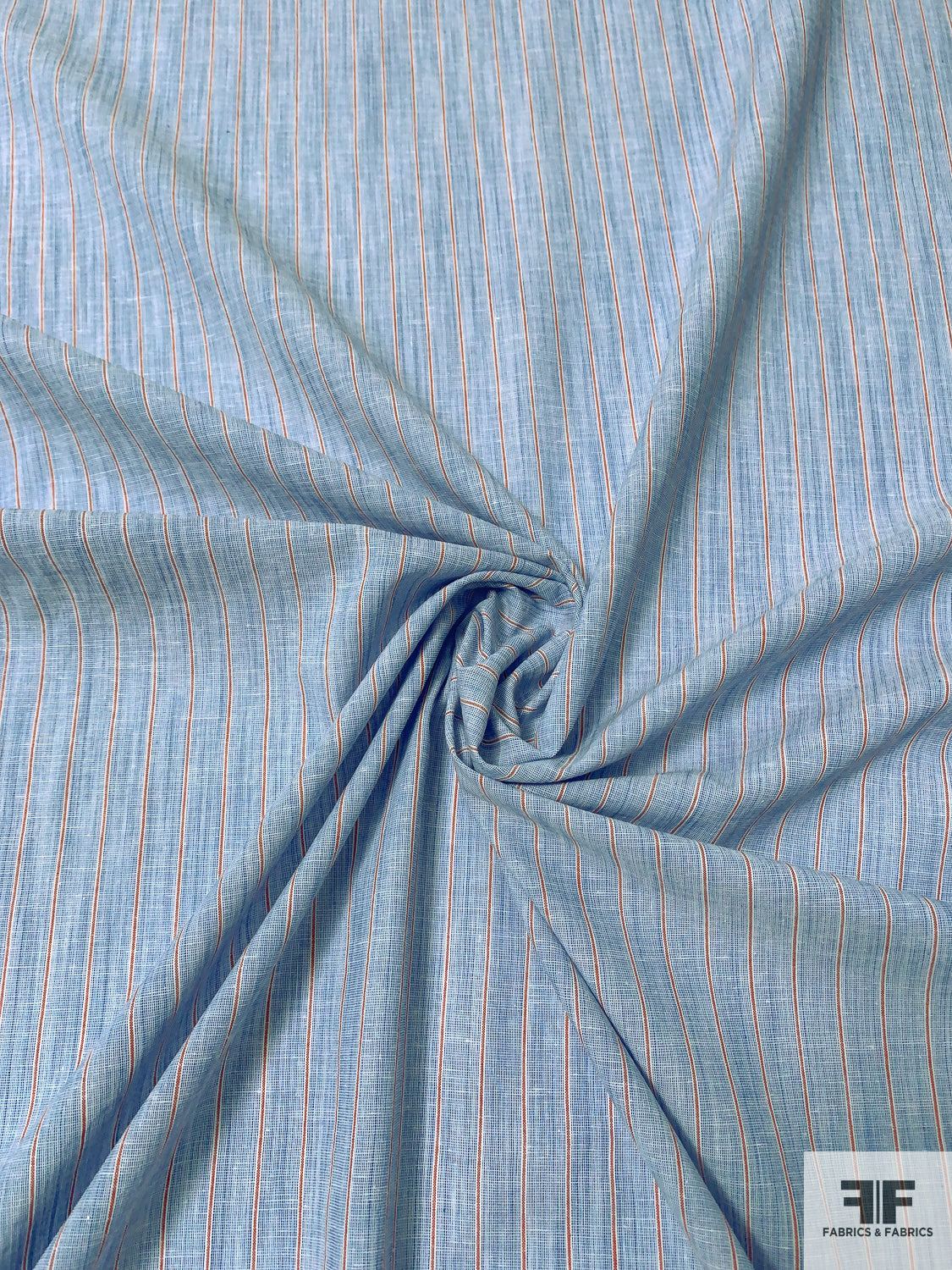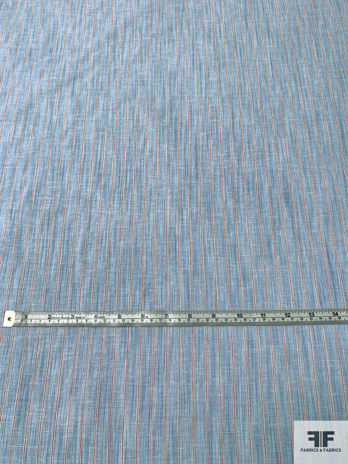 Vertical Striped Yarn-Dyed Soft Cotton Shirting - Blue / Rust / White