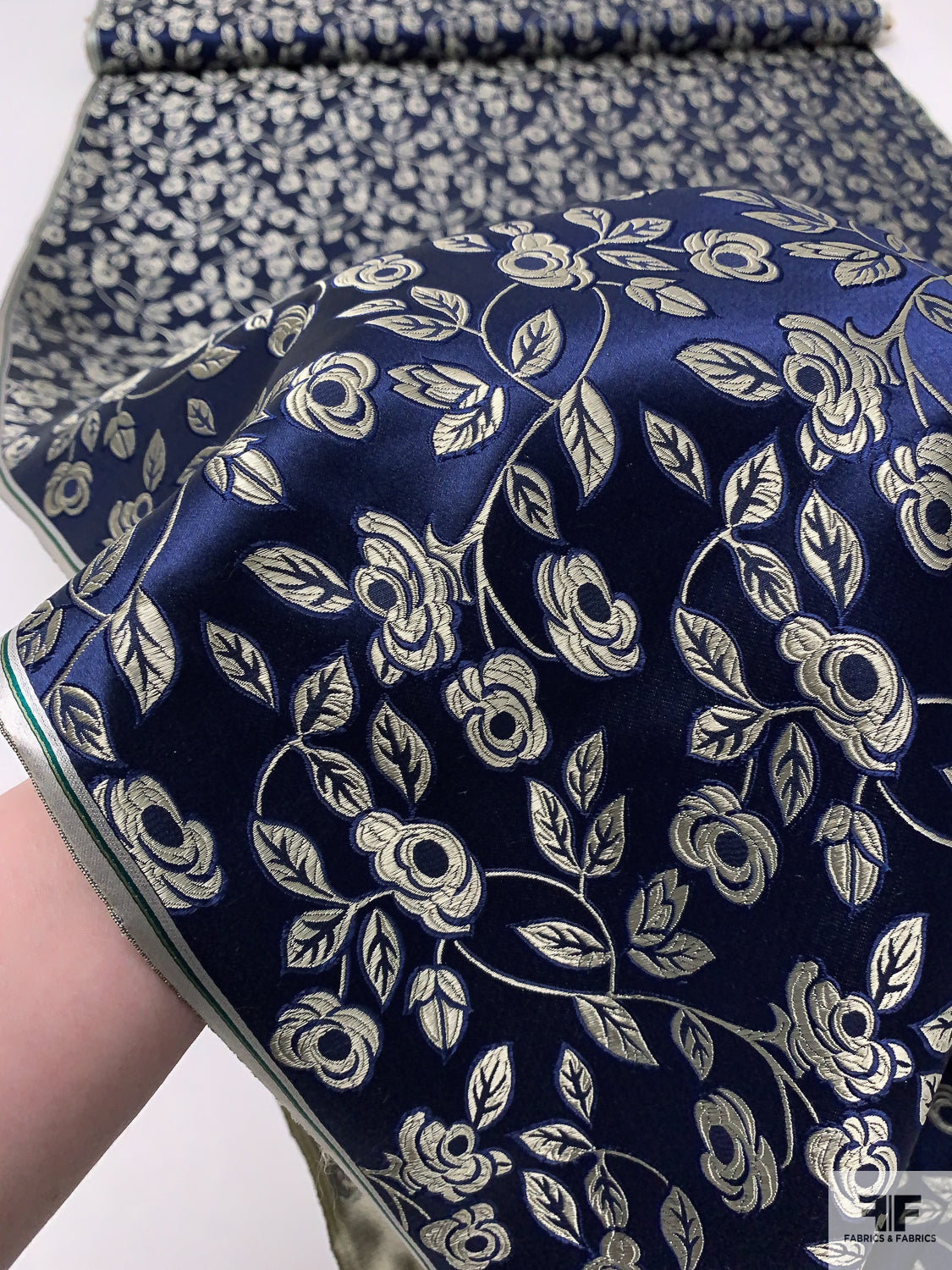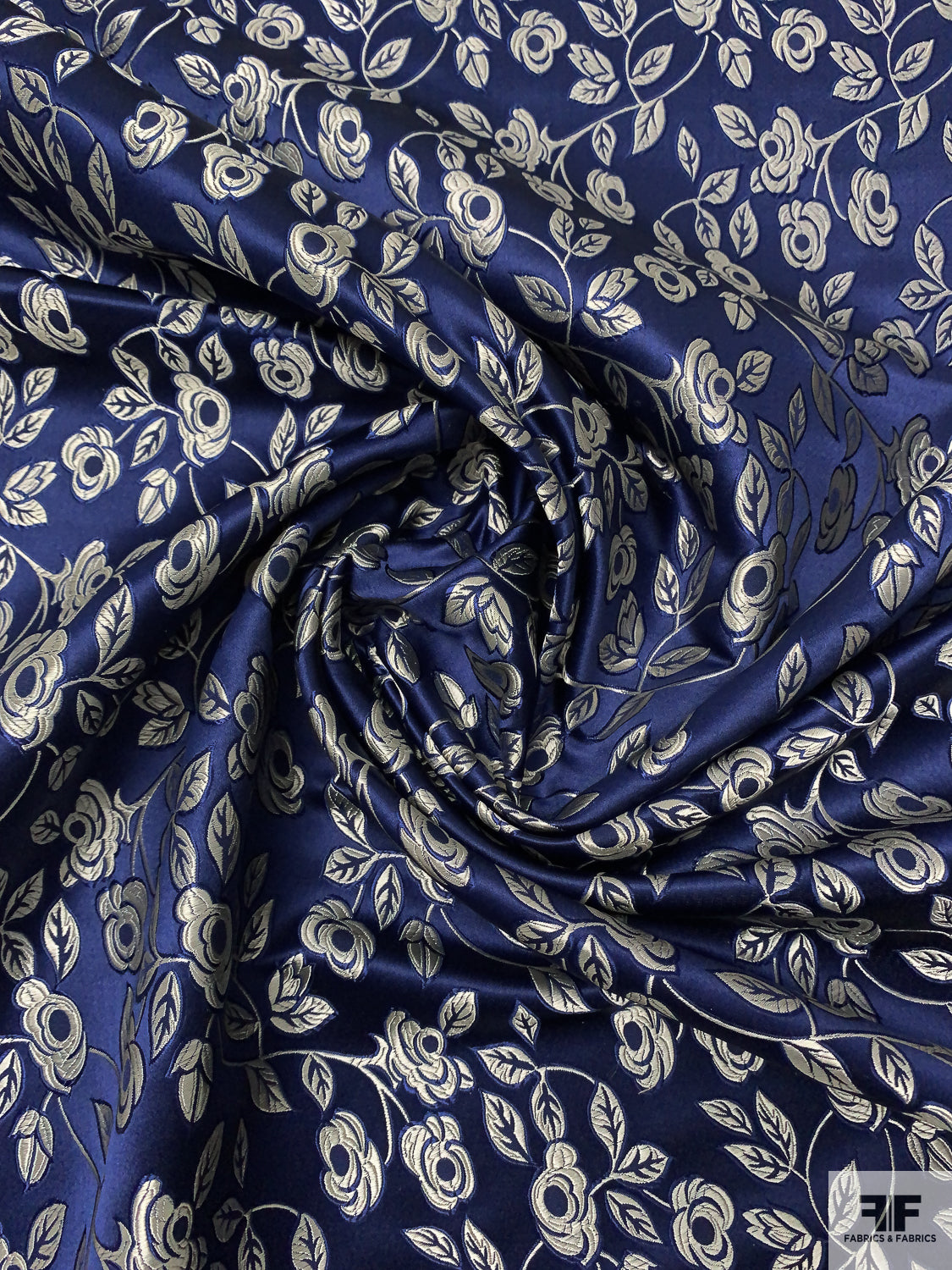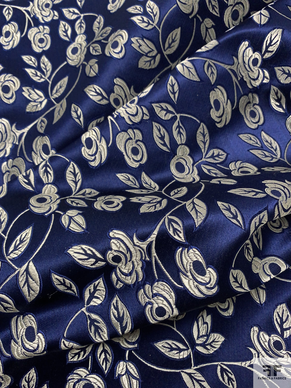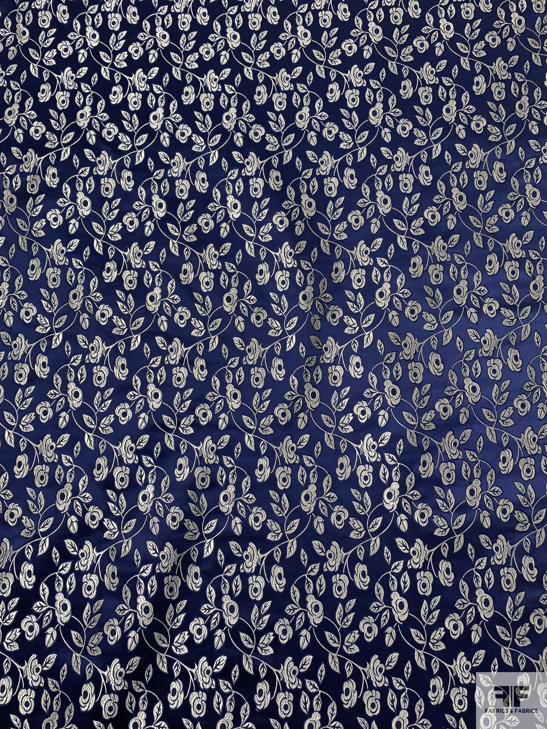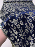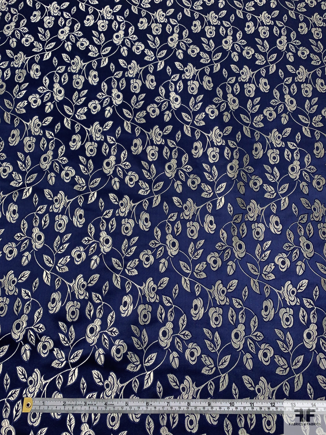 Vine Floral Chinese Brocade - Navy Blue / White-Gold