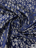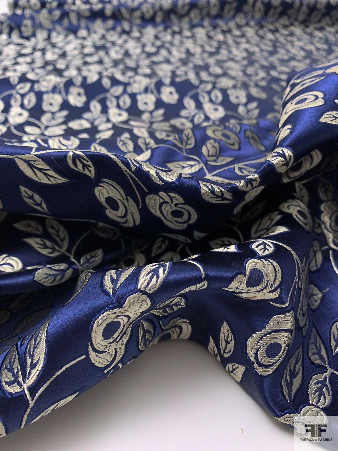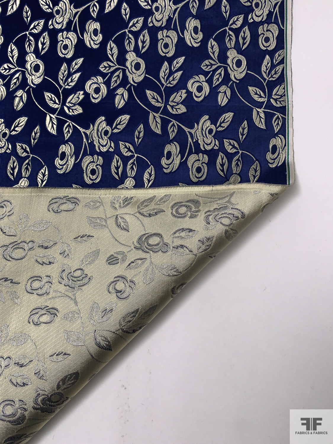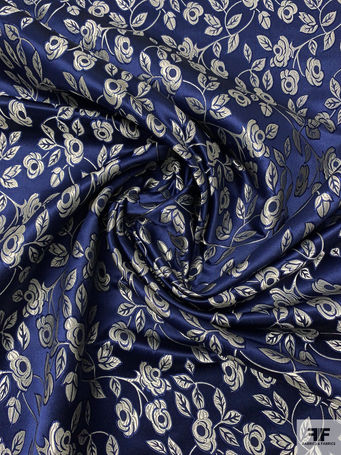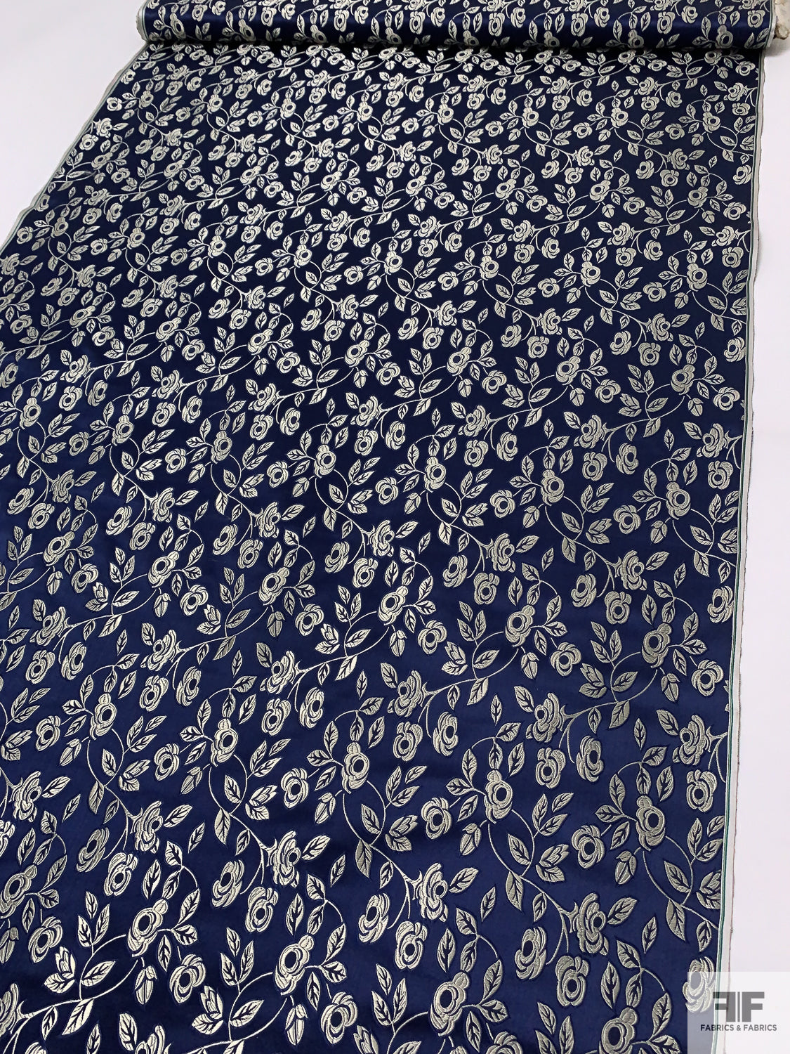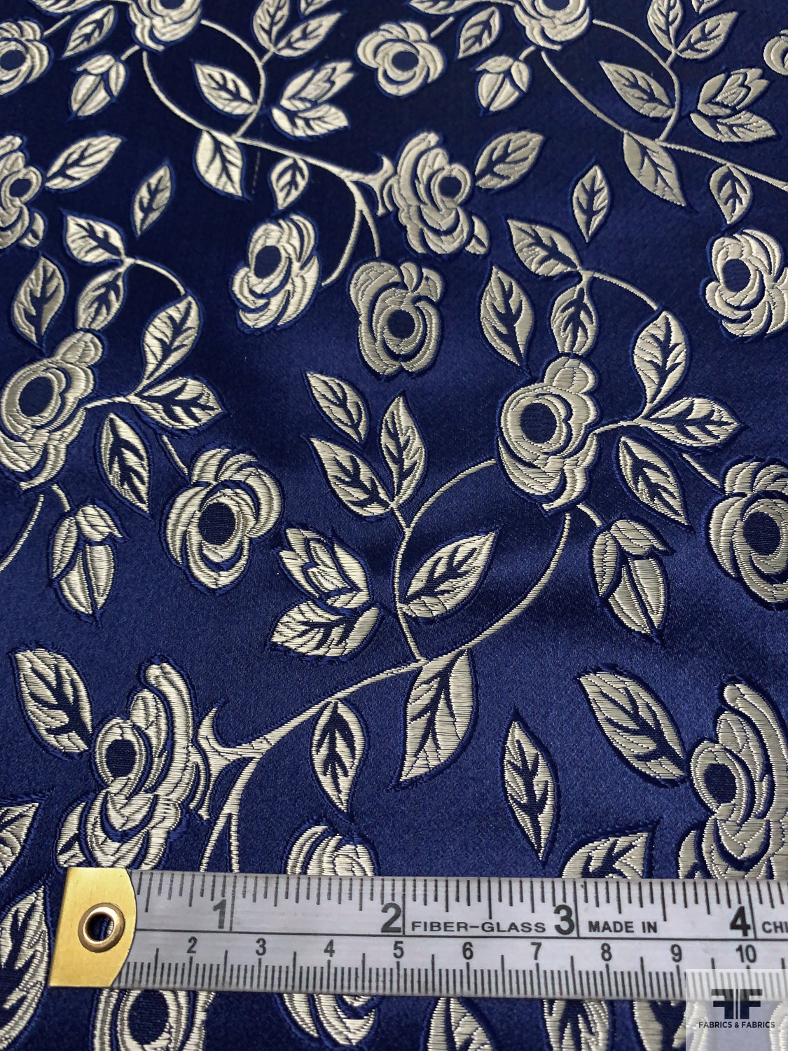 Vine Floral Chinese Brocade - Navy Blue / White-Gold