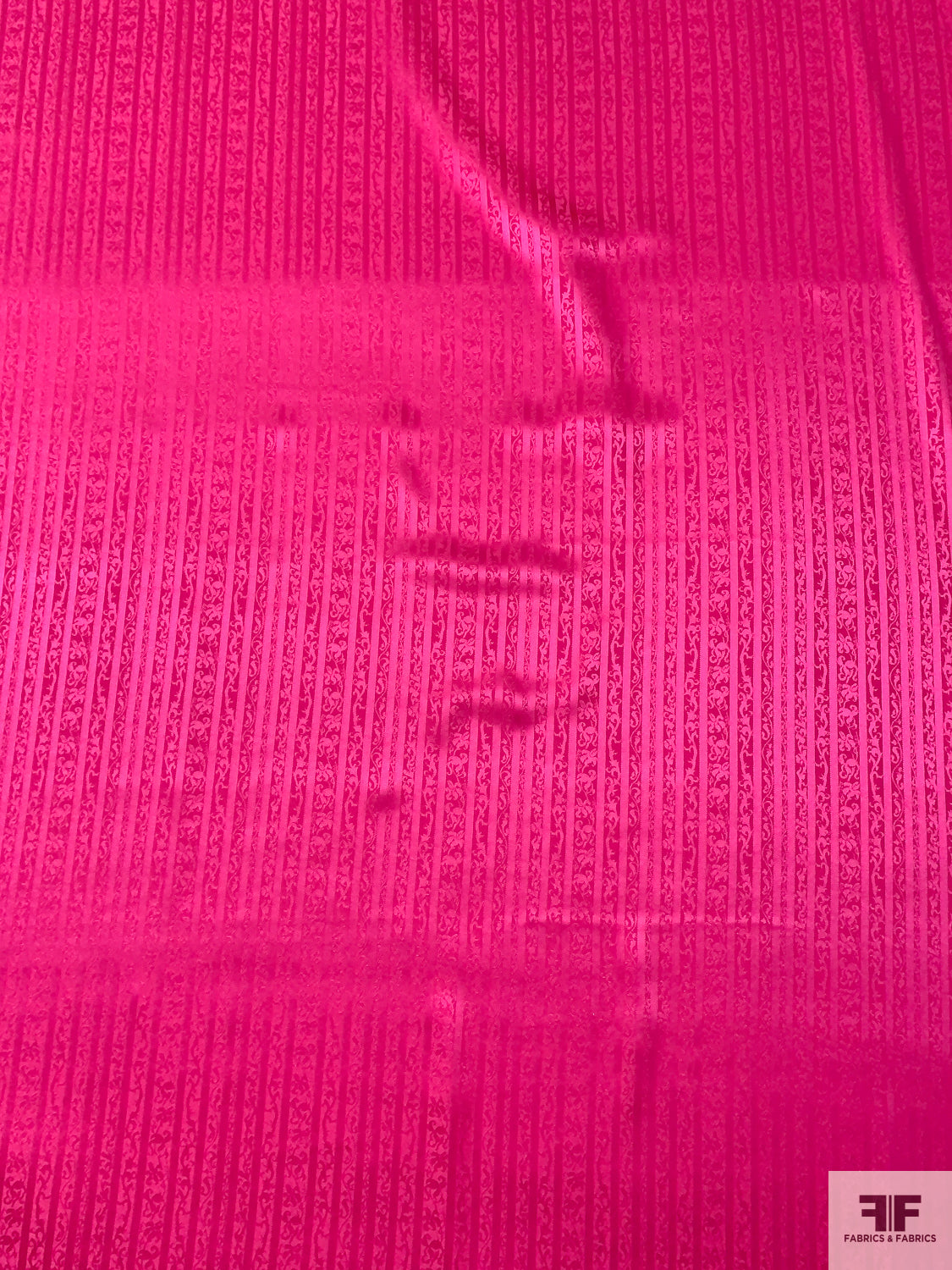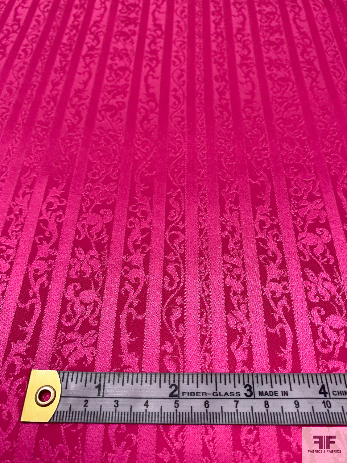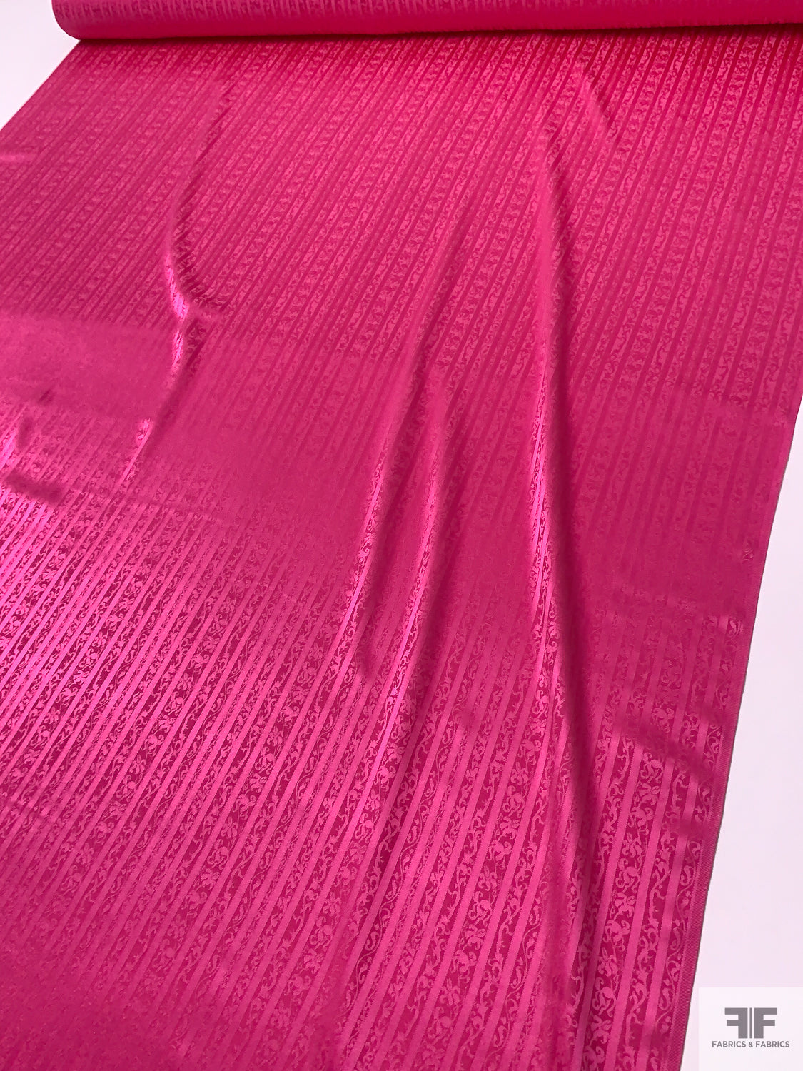 Vines and Striped Jacquard Silk Charmeuse - Magenta