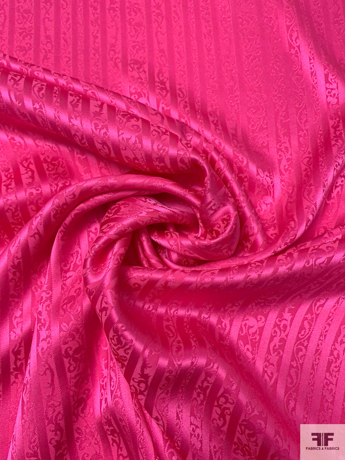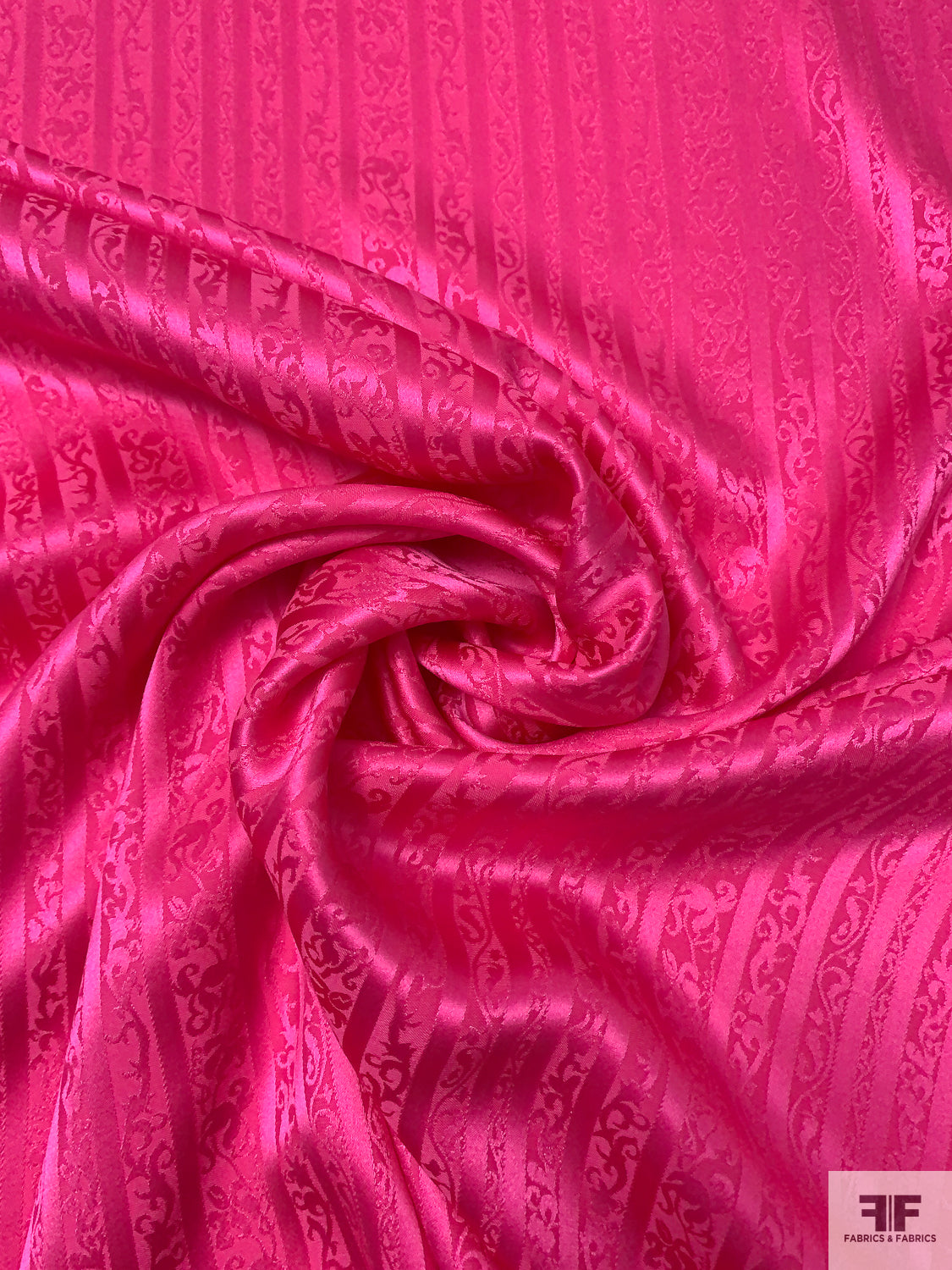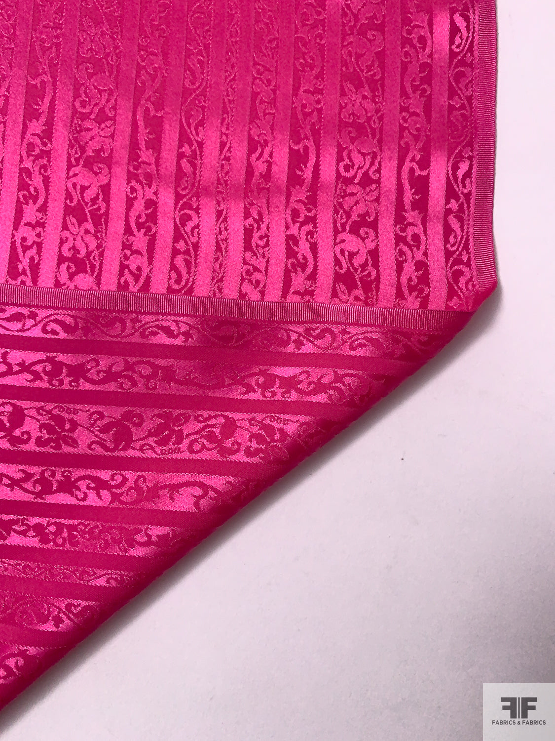 Vines and Striped Jacquard Silk Charmeuse - Magenta
