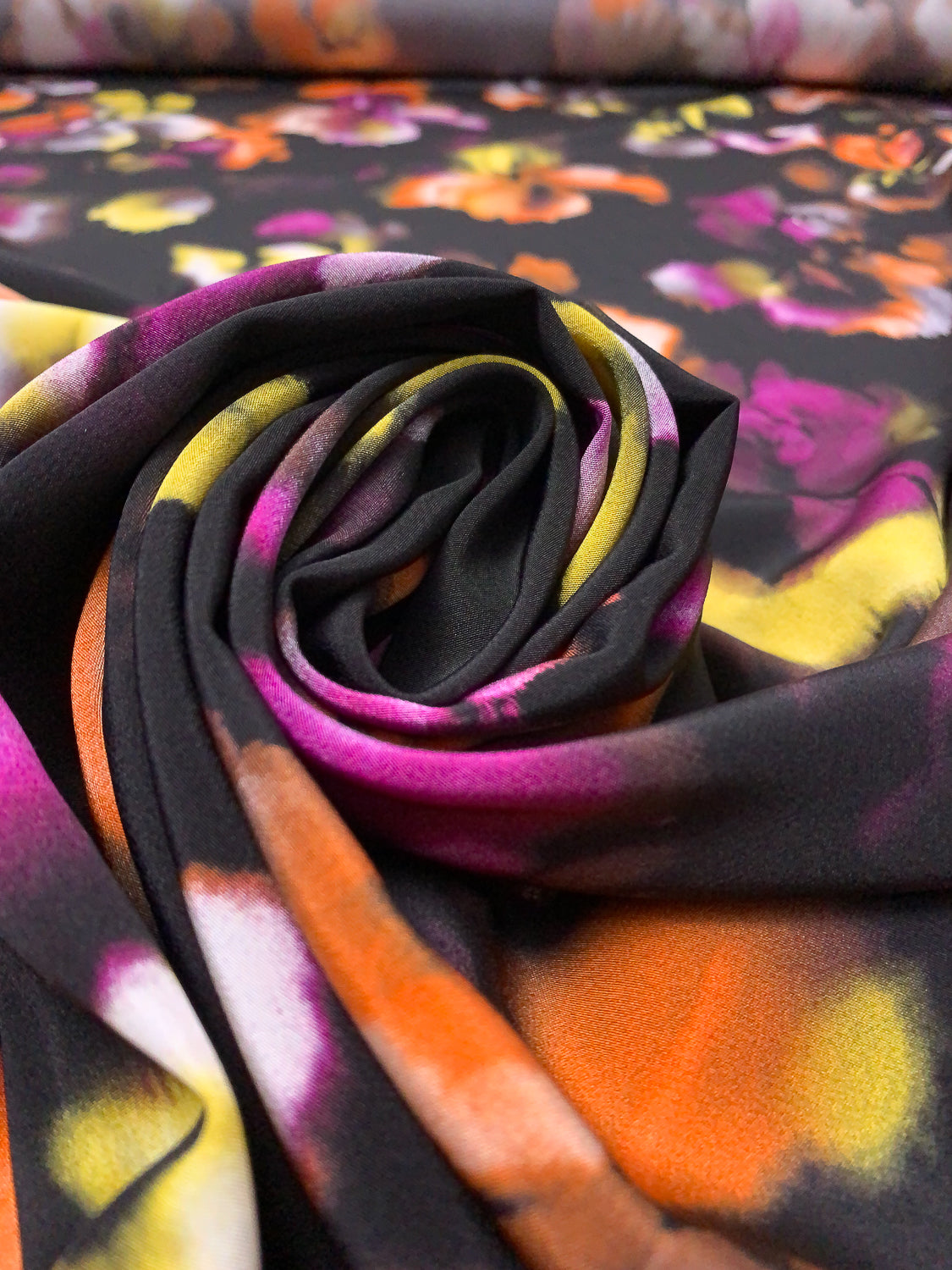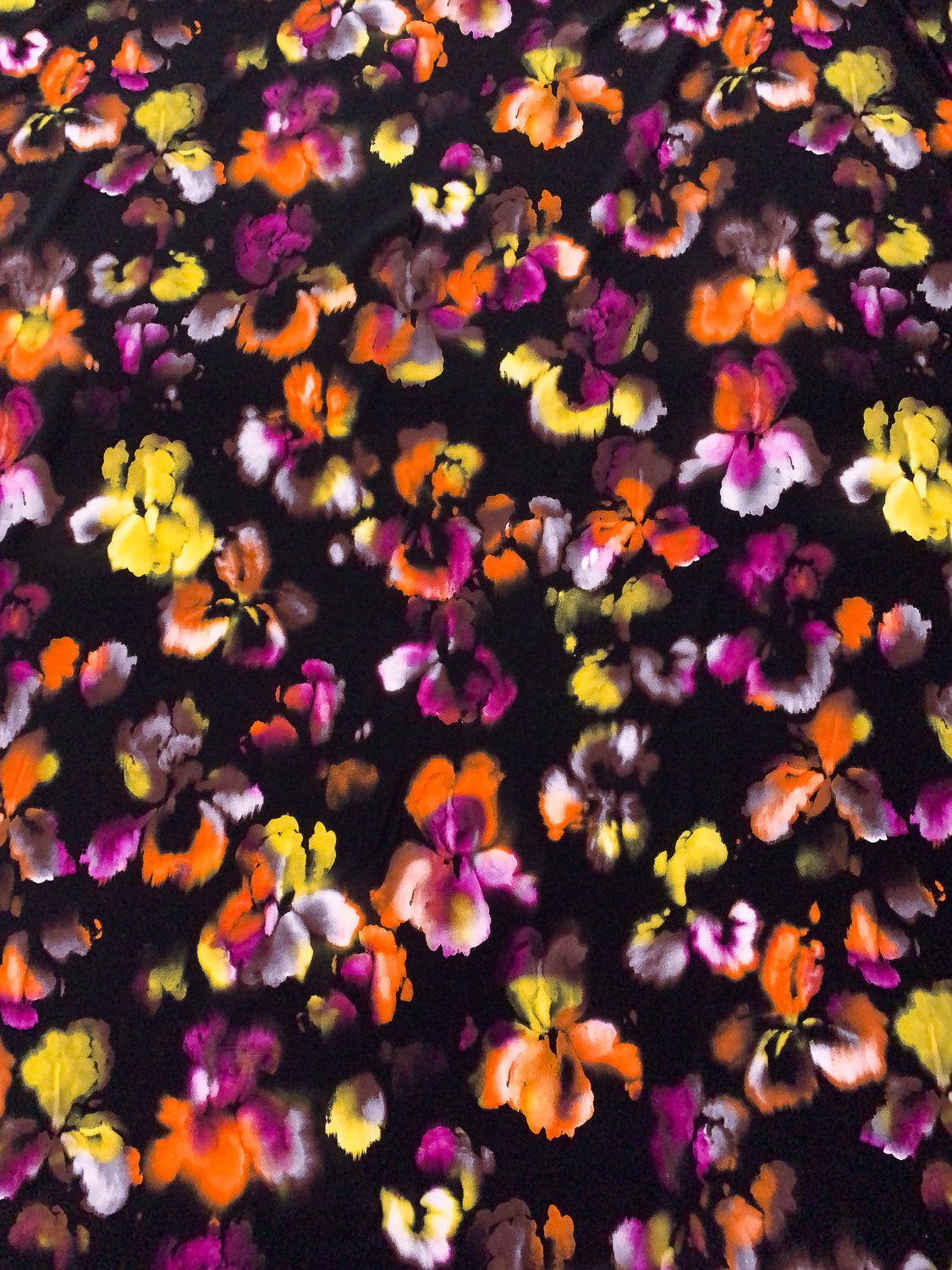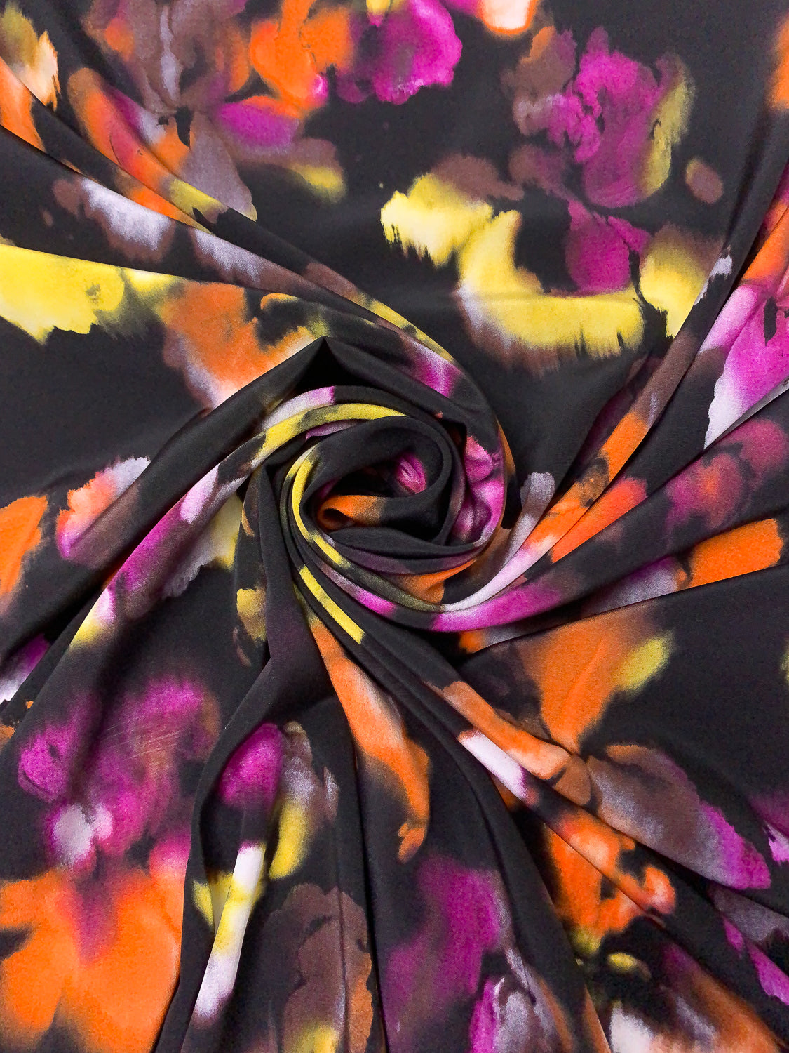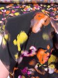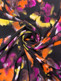 Watercolor Floral Printed Silk Crepe de Chine - Orange / Magenta / Yellow / Purplish Brown / Black