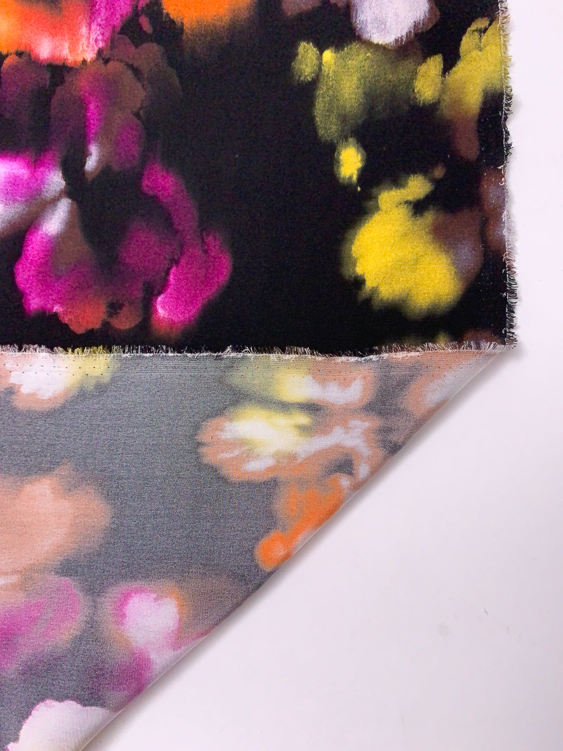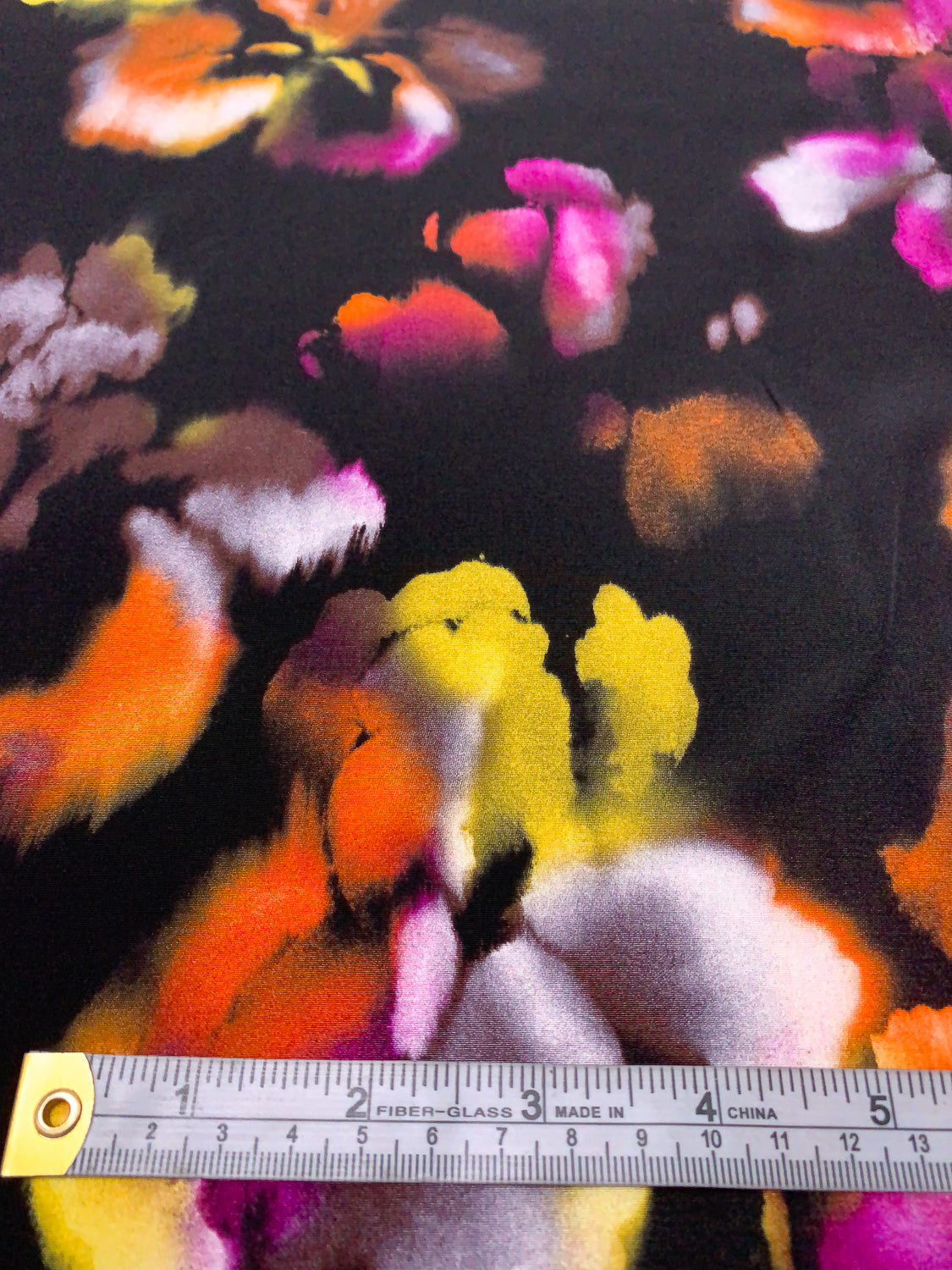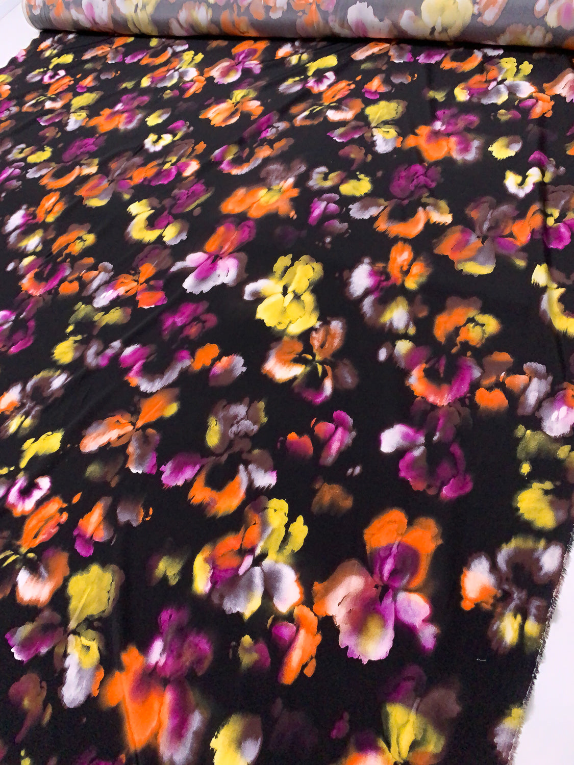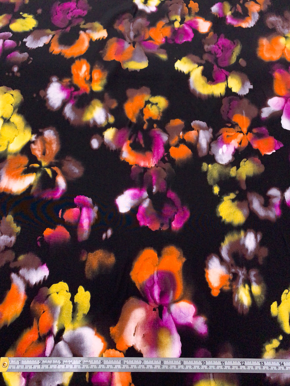Watercolor Floral Printed Silk Crepe de Chine - Orange / Magenta / Yellow / Purplish Brown / Black